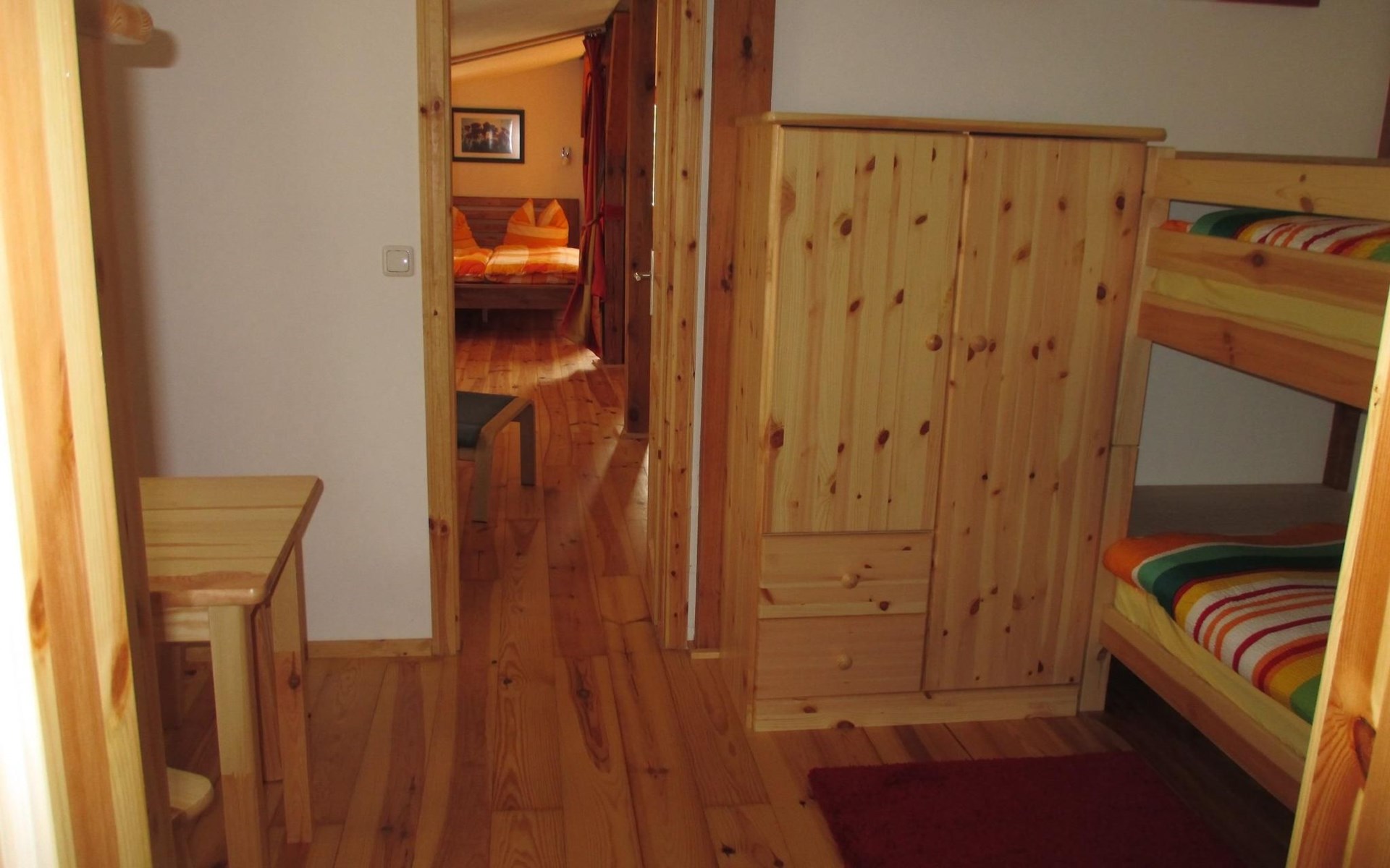 Im separaten kleinen Schlafzimmer wartet ein Etagenbett auf unsere jungen Gäste – kuschelig und praktisch zugleich.