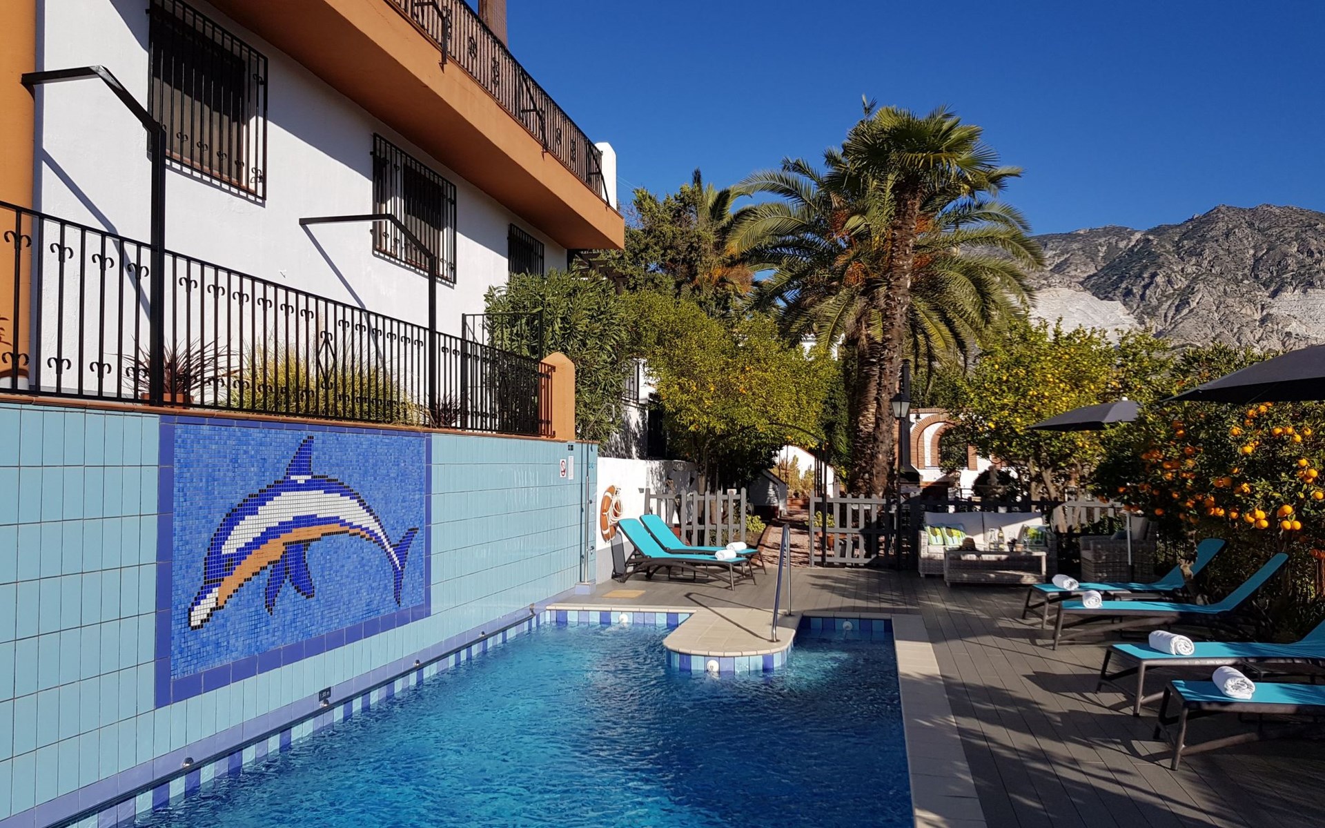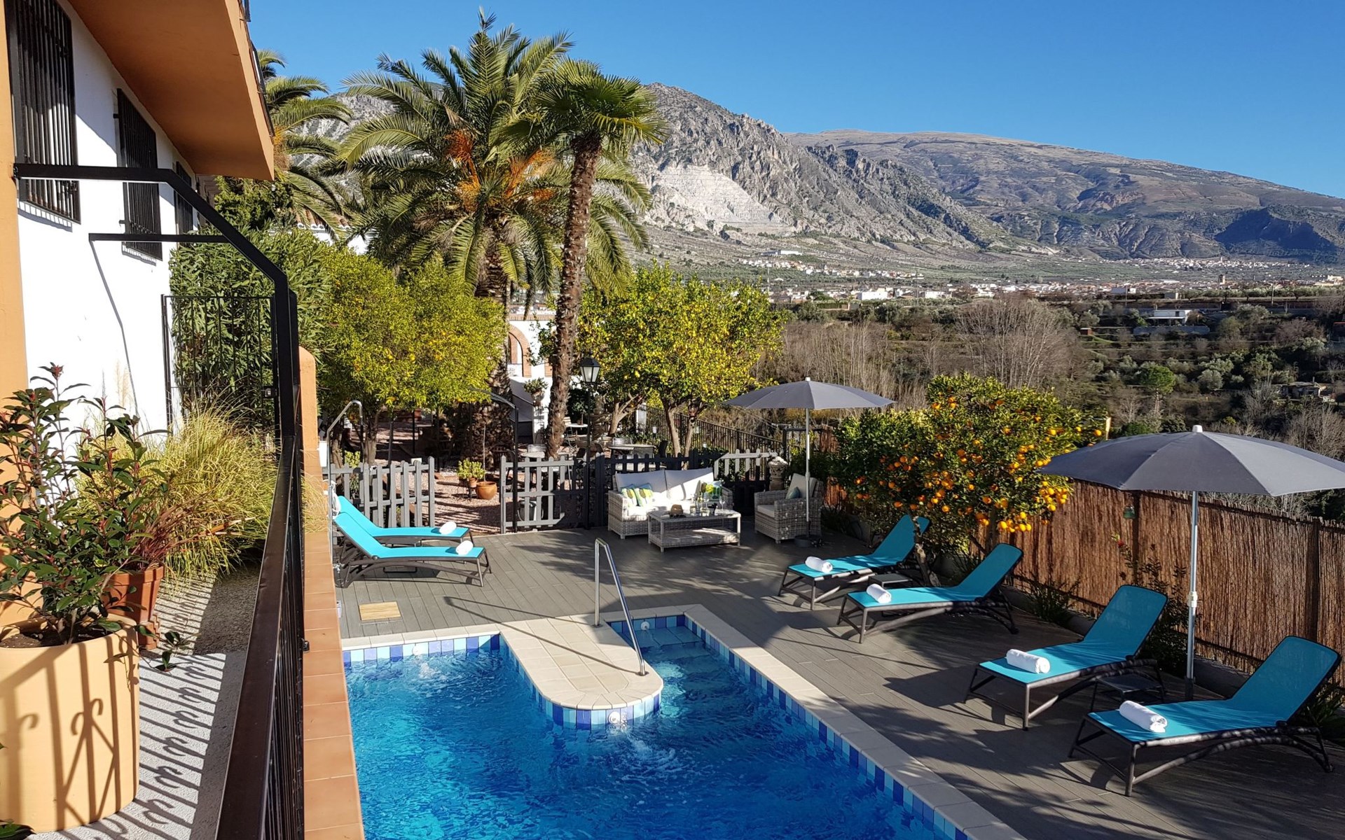 Unsere Casa Rural ist wie ein kleines Dorf. Alle Häuser sind unabhängig und haben ihren eigenen Charakter und ihre eigene Atmosphäre und ihre eigene Terrasse. Darüber hinaus stehen folgende Bereiche zur gemeinsamen Nutzung zur Verfügung: Parkplatz, Swimmingpool (4×10m) mit Liegestühlen und Sonnenschirmen, Grill, ein Raum mit Waschmaschine und Bügelbrett und weitere Terrassen (Frühstück, Aufenthaltsraum) mit schöner Aussicht. In unserem Garten können Sie entspannen, lesen, sich abkühlen ... kurzum, alles ist vorbereitet, um die Umwelt und die Natur mit allen Sinnen zu genießen: Gerüche, Geräusche, Farben, Geschmäcker und Empfindungen.