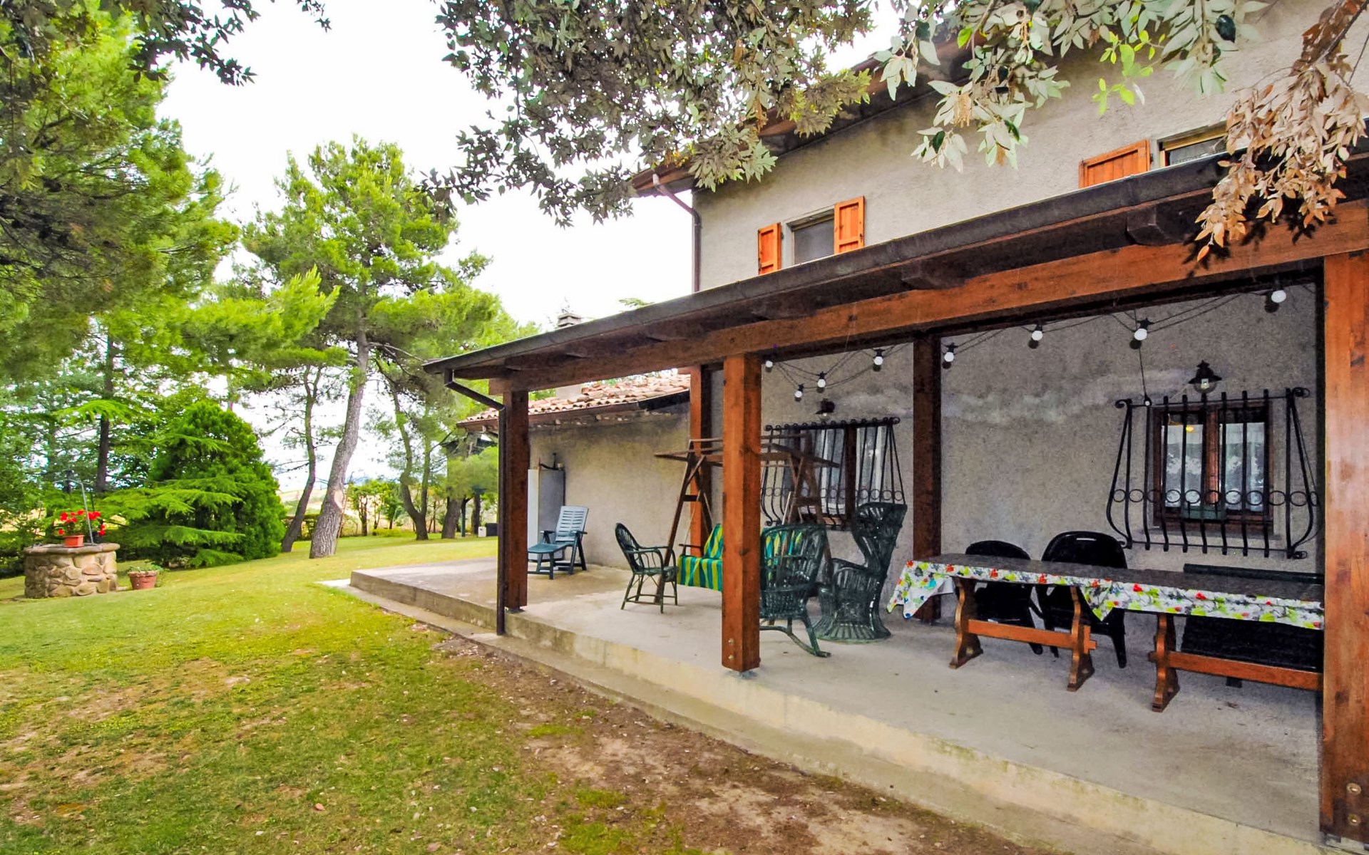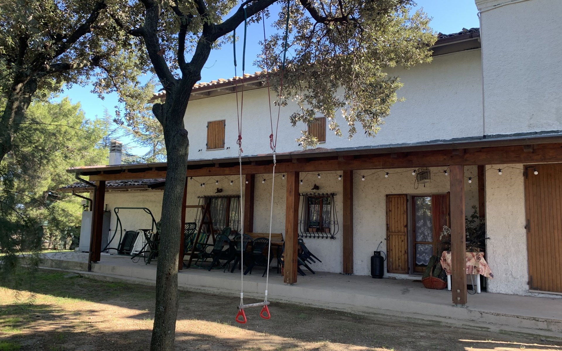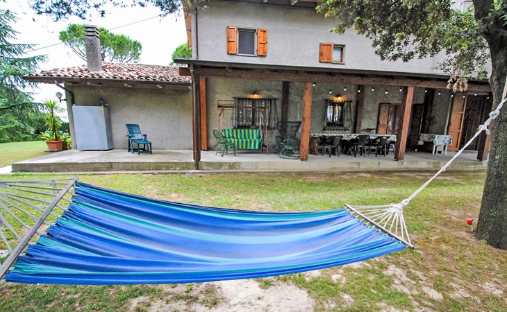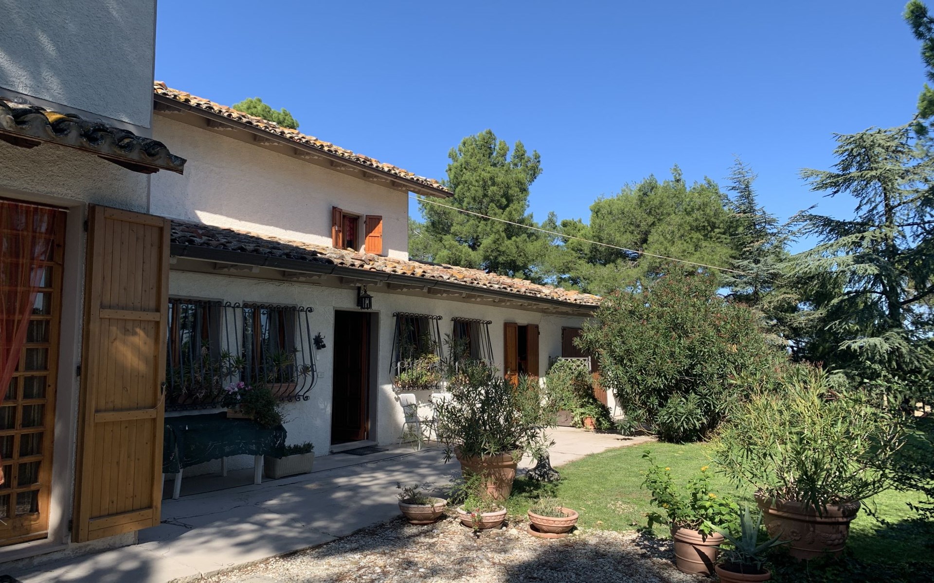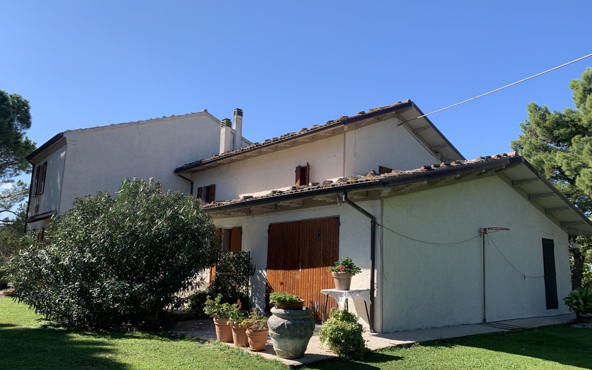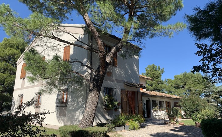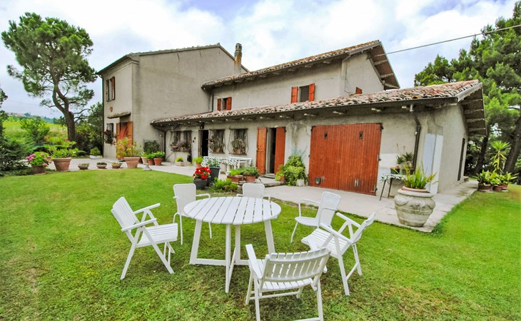 Rustikales, freistehendes Landhaus "Maria Rosaria", auf 2 Stockwerken, umgeben von Bäumen. 15 km vom Zentrum von Pesaro, ausserhalb des Ortes, 1.5 km vom Zentrum von Ginestreto, erhöhte Lage auf einem Hügel, 15 km vom Meer, 15 km vom Strand, im Grünen. Zur Alleinbenutzung: Garten 3'800 m2 (eingezäunt) mit Rasen und Bäumen. Gartenmöbel, Grill. Im Hause: Wireless LAN (extra). Parkplatz beim Haus auf dem Grundstück. Supermarkt 12 km, Restaurant 50 m, Bar 1 km, Bushaltestelle 100 m, Bahnstation "Pesaro" 15 km, Sandstrand "Pesaro" 15 km. Nahe gelegene Sehenswürdigkeiten: Gradara 17 km, Fano 20 km, Cattolica 25 km, Urbino 30 km, Misano World Circuit Marco Simoncelli 30 km, San Marino 52 km. Die Residenz wird durch elektrische Tore geschlossen. 50 m vom Haus entfernt steht ein kleines Vogelhaus.