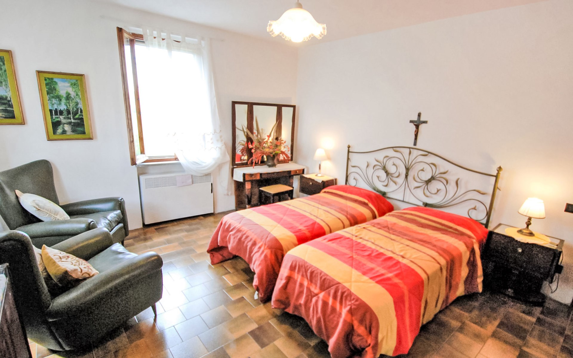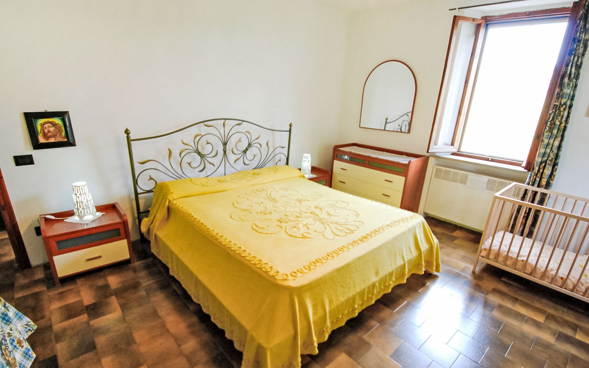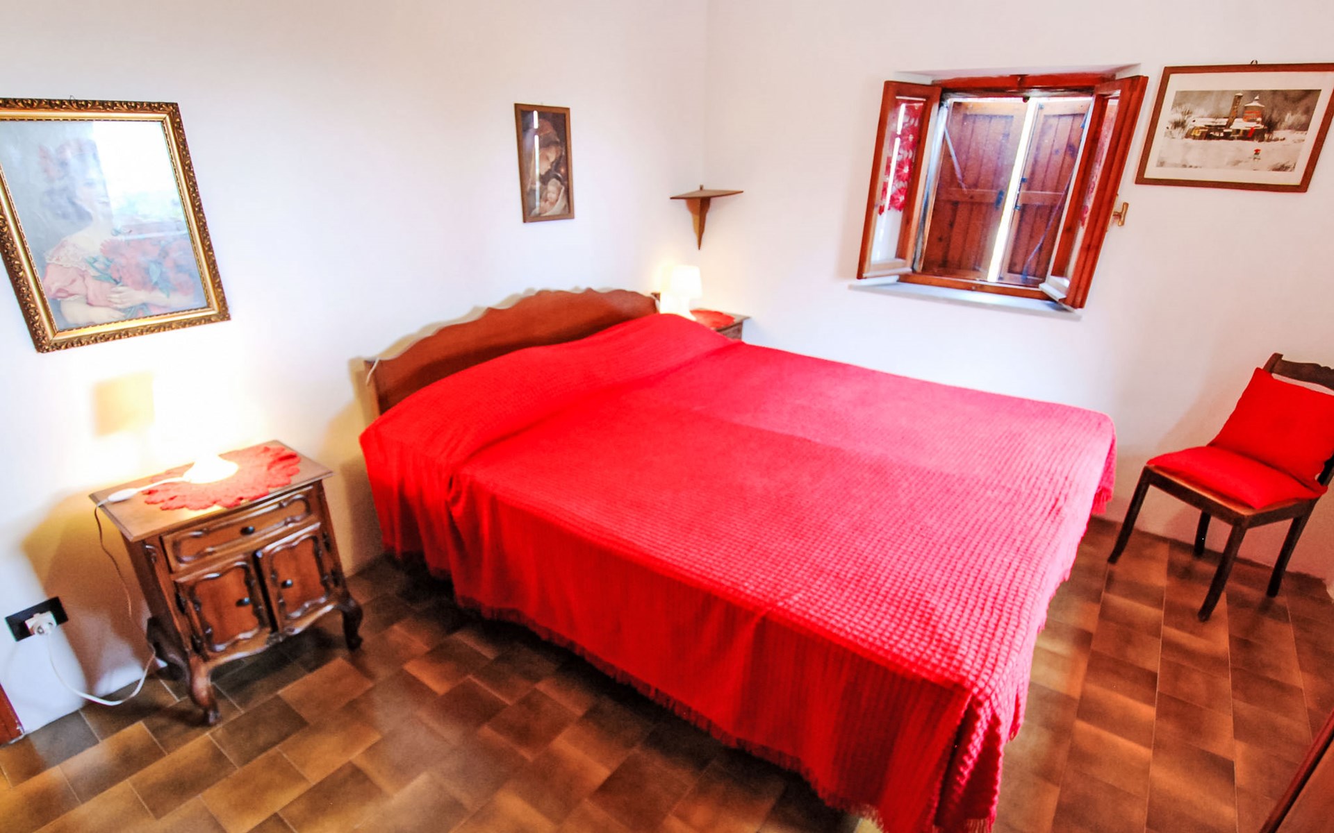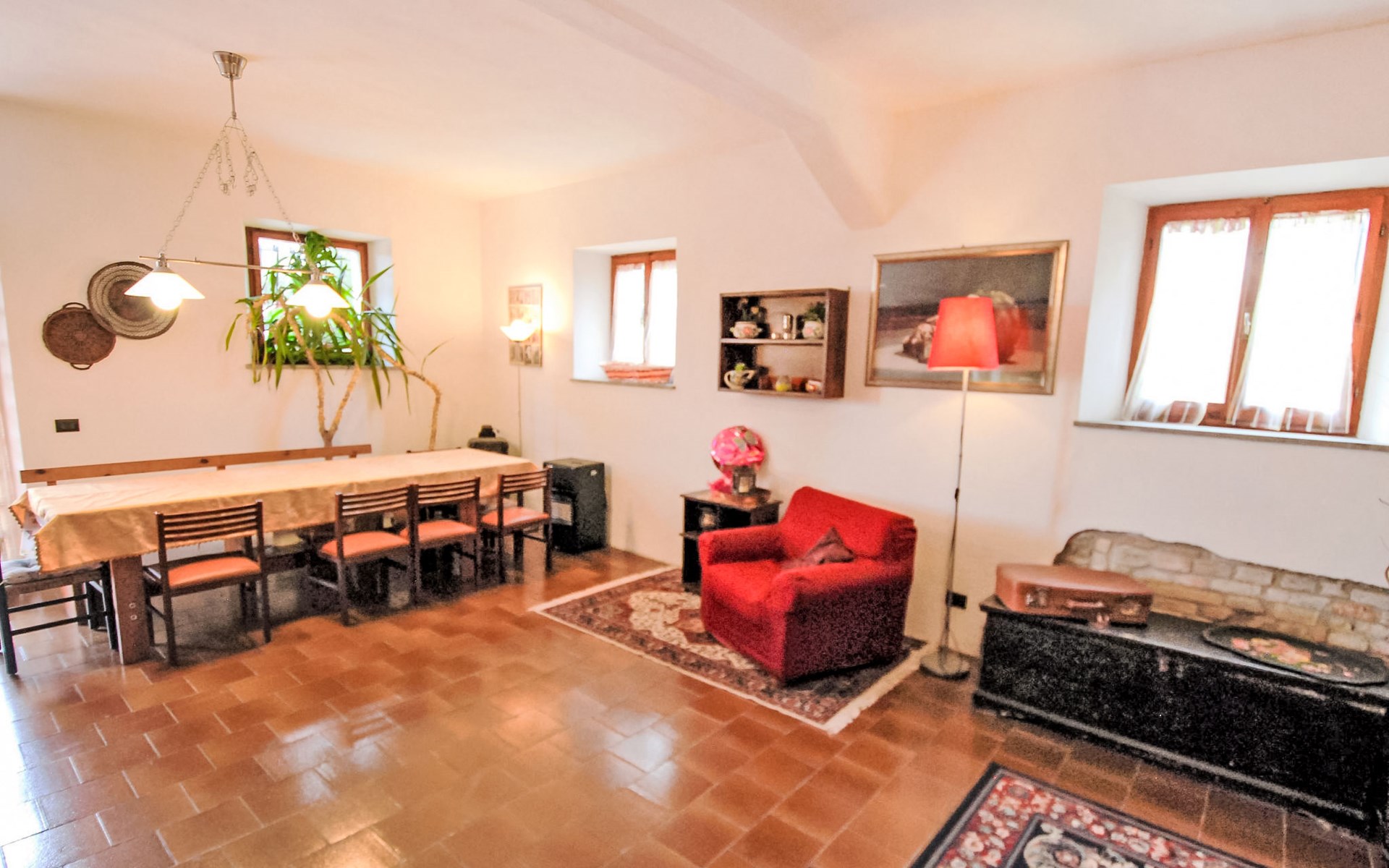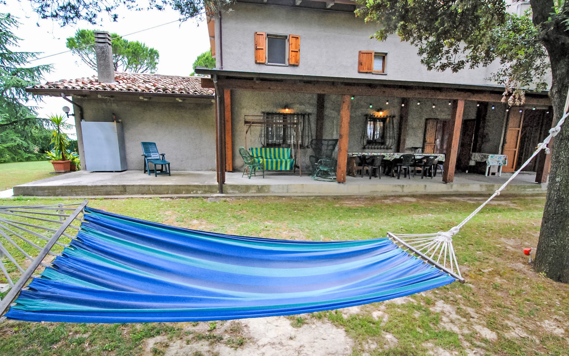 Rustikales, freistehendes Landhaus "Maria Rosaria", auf 2 Stockwerken, umgeben von Bäumen. 15 km vom Zentrum von Pesaro, ausserhalb des Ortes, 1.5 km vom Zentrum von Ginestreto, erhöhte Lage auf einem Hügel, 15 km vom Meer, 15 km vom Strand, im Grünen. Zur Alleinbenutzung: Garten 3'800 m2 (eingezäunt) mit Rasen und Bäumen. Gartenmöbel, Grill. Im Hause: Wireless LAN (extra). Parkplatz beim Haus auf dem Grundstück. Supermarkt 12 km, Restaurant 50 m, Bar 1 km, Bushaltestelle 100 m, Bahnstation "Pesaro" 15 km, Sandstrand "Pesaro" 15 km. Nahe gelegene Sehenswürdigkeiten: Gradara 17 km, Fano 20 km, Cattolica 25 km, Urbino 30 km, Misano World Circuit Marco Simoncelli 30 km, San Marino 52 km. Die Residenz wird durch elektrische Tore geschlossen. 50 m vom Haus entfernt steht ein kleines Vogelhaus.