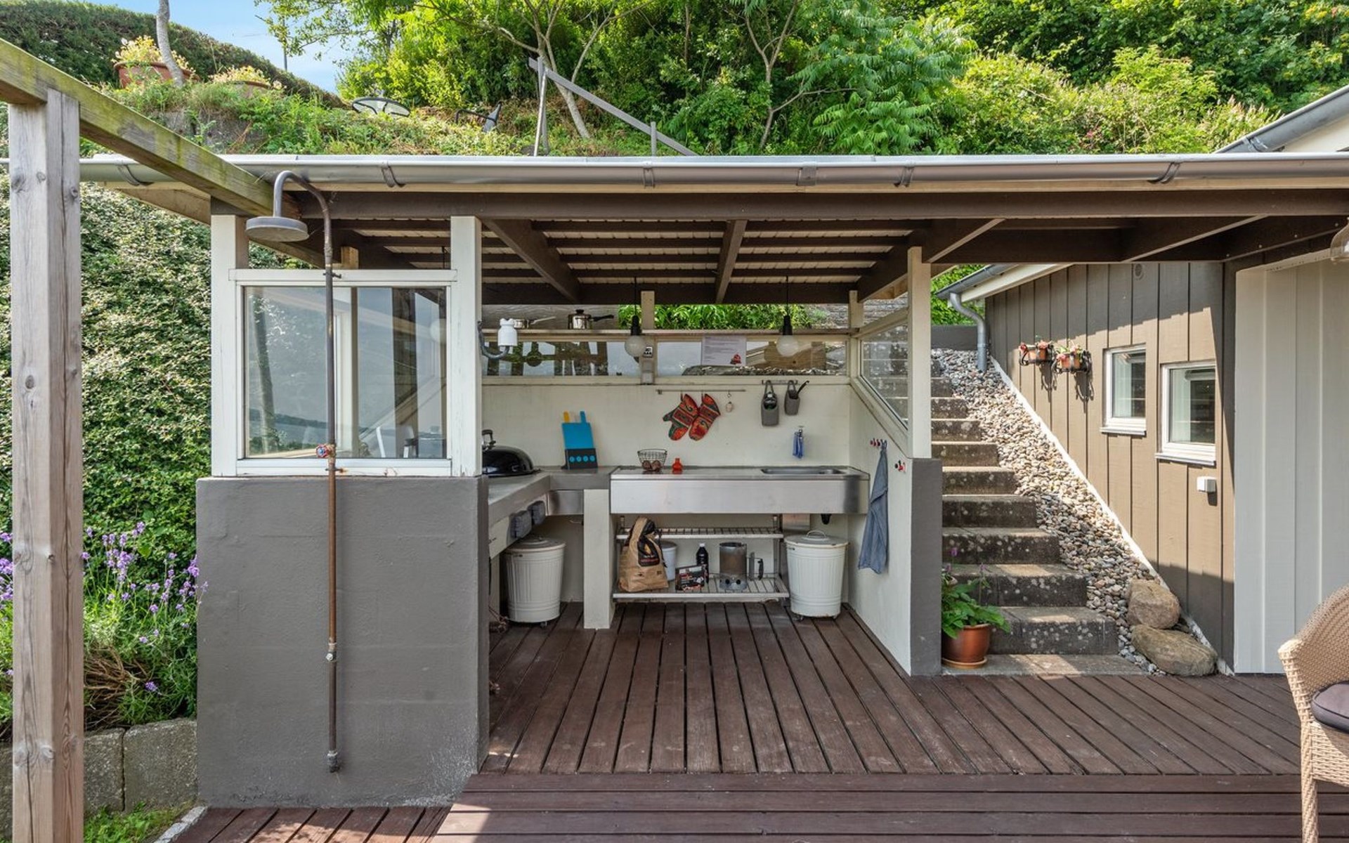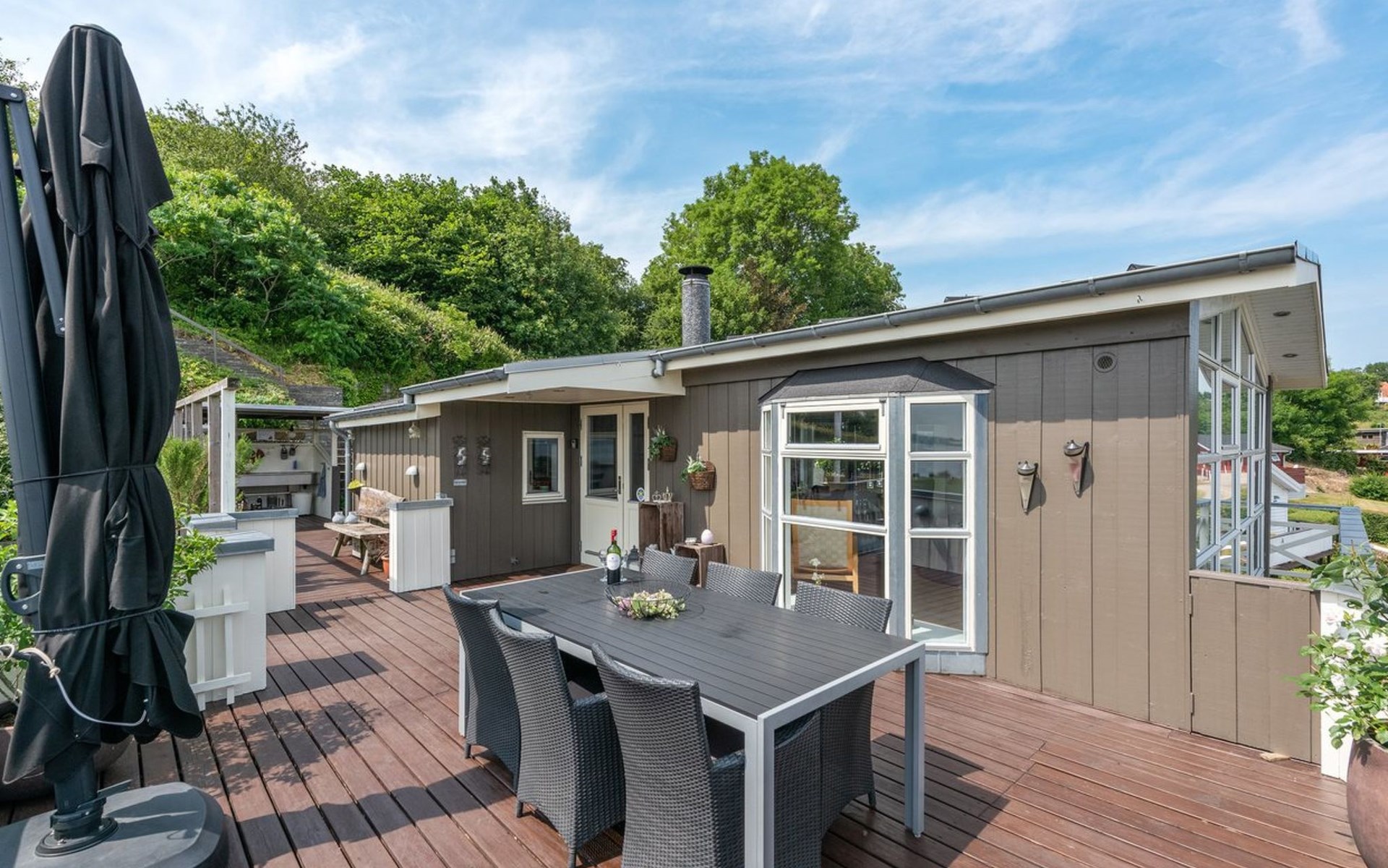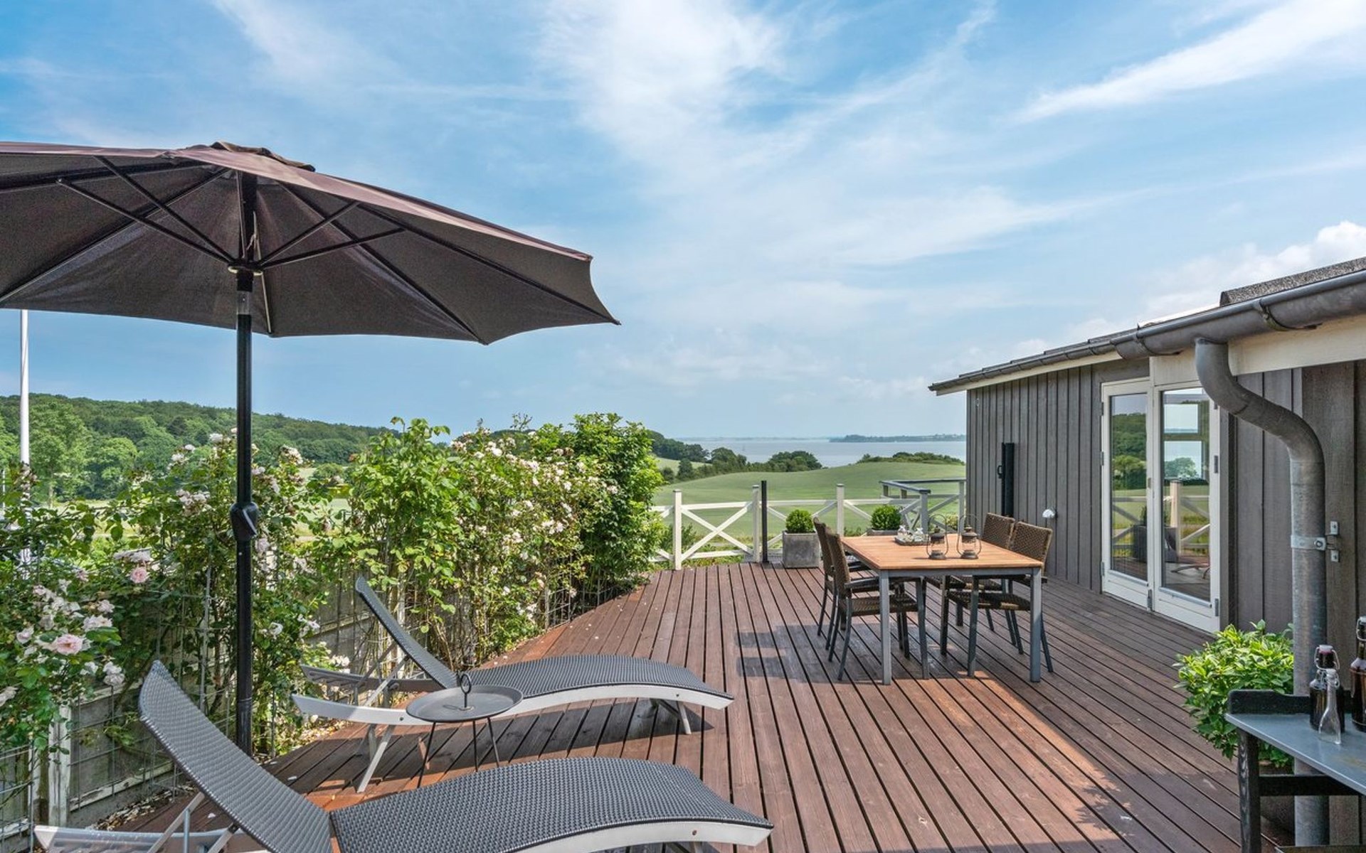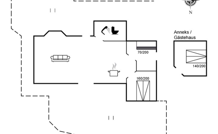 Einfamilienhaus, Baujahr 1961. Zur Alleinbenutzung: naturbelassenes Grundstück 661 m2. Aussendusche, Terrasse (100 m2), Grill, Kinderspielplatz. Im Hause: Waschmaschine. Parkplatz beim Haus. Lebensmittelgeschäft 5 km. Golfplatz 6 km. Der Besitzer akzeptiert keine Jugendgruppen.