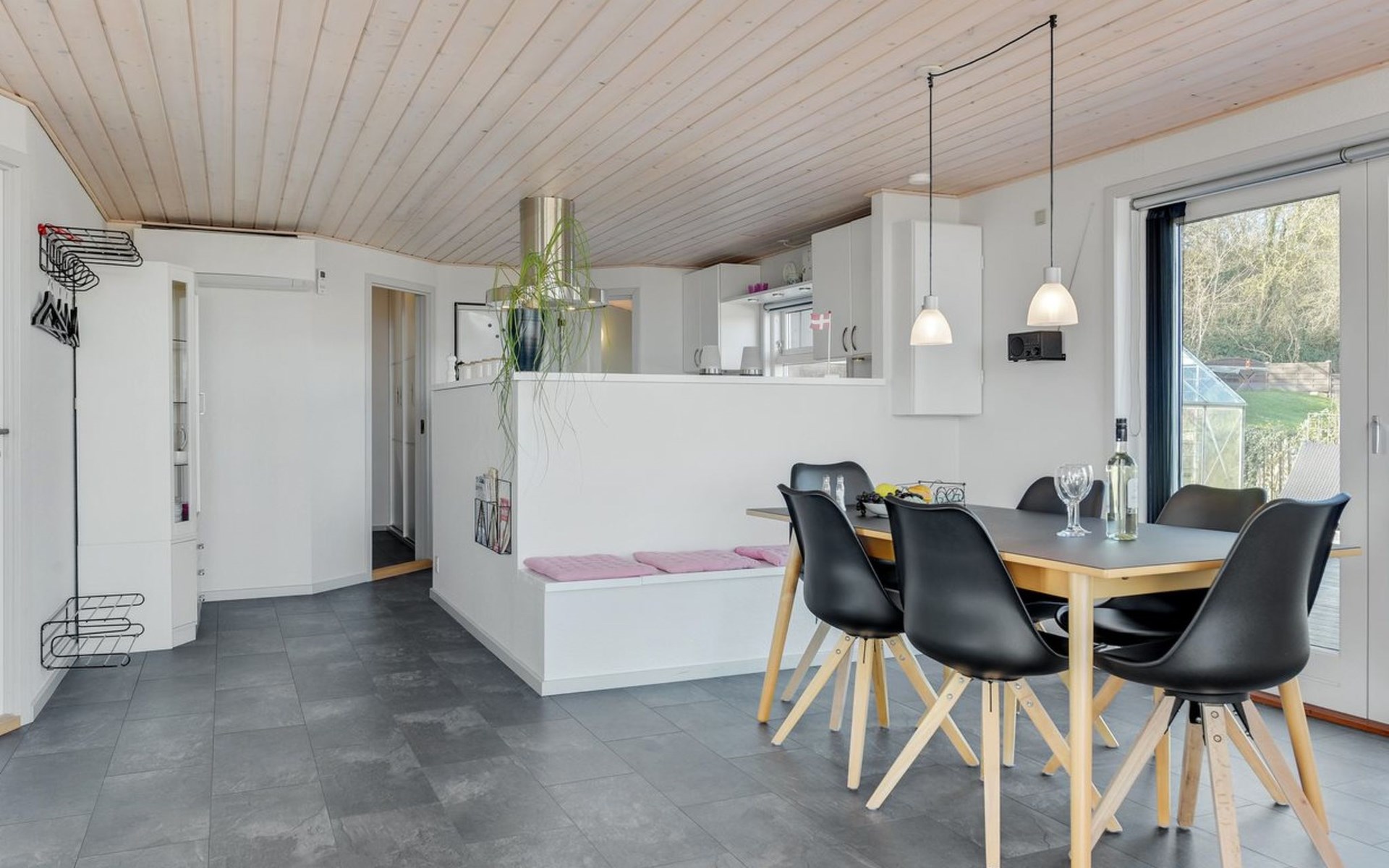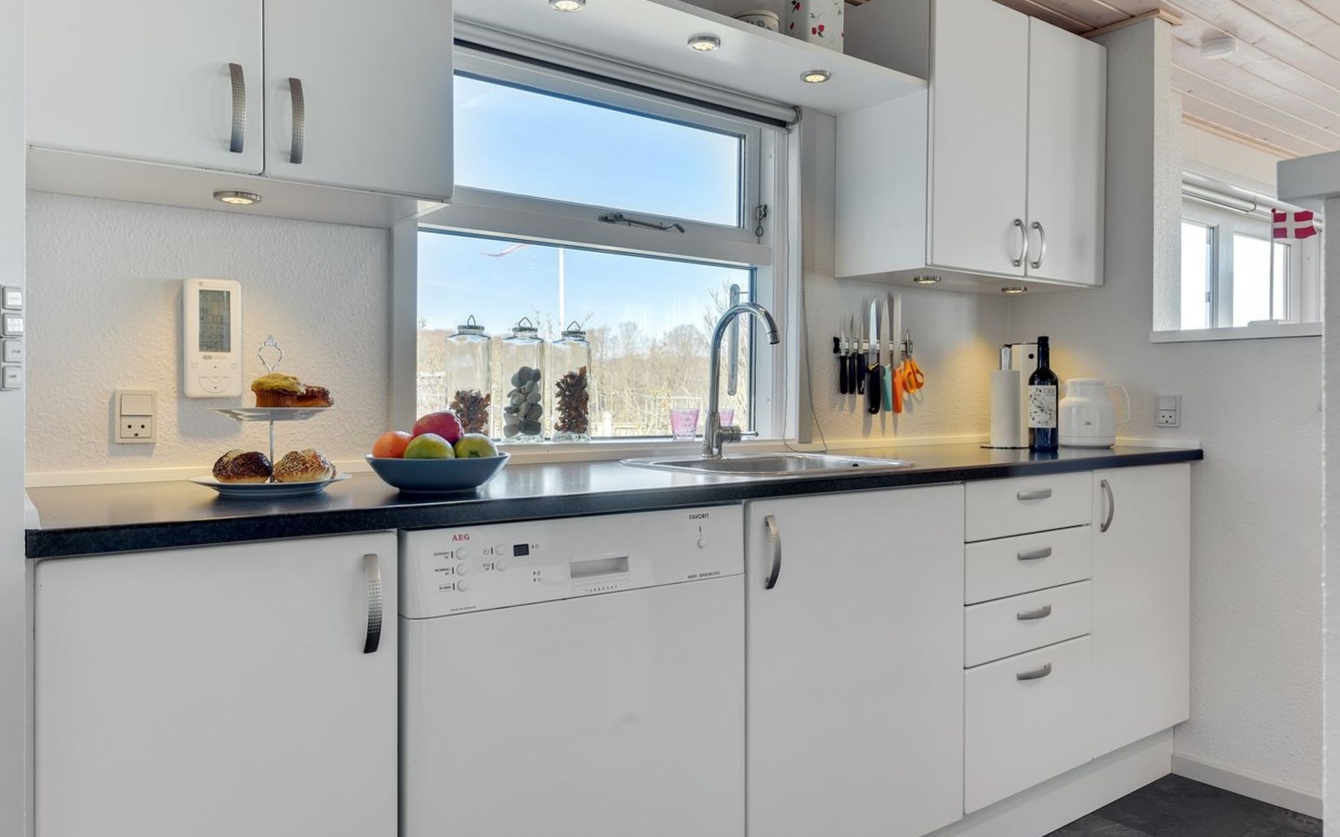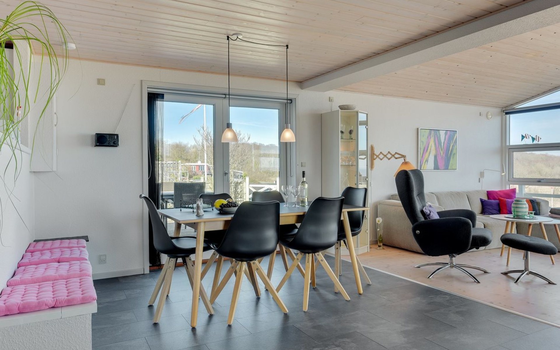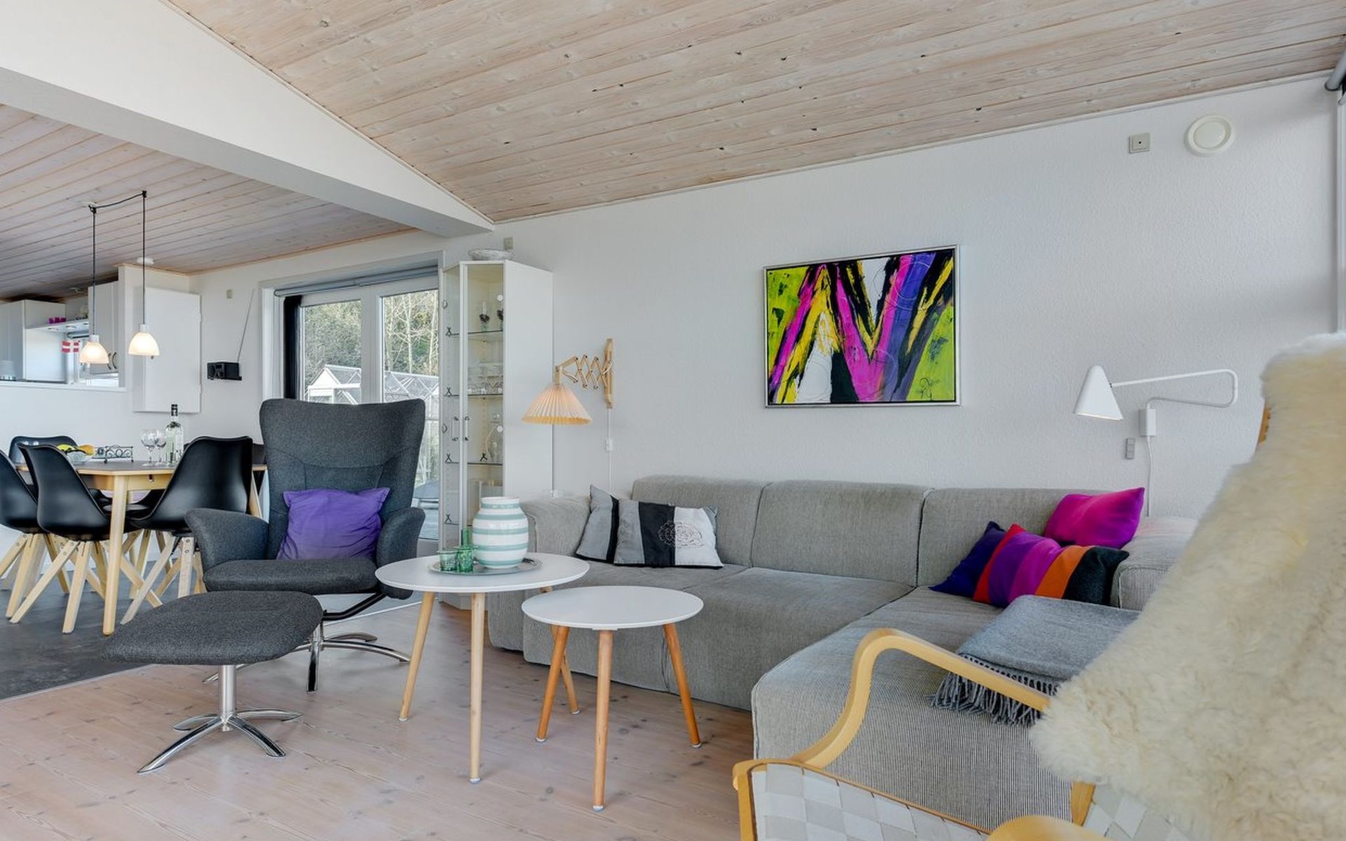 Einfamilienhaus, Baujahr 1961. Zur Alleinbenutzung: naturbelassenes Grundstück 661 m2. Aussendusche, Terrasse (100 m2), Grill, Kinderspielplatz. Im Hause: Waschmaschine. Parkplatz beim Haus. Lebensmittelgeschäft 5 km. Golfplatz 6 km. Der Besitzer akzeptiert keine Jugendgruppen.