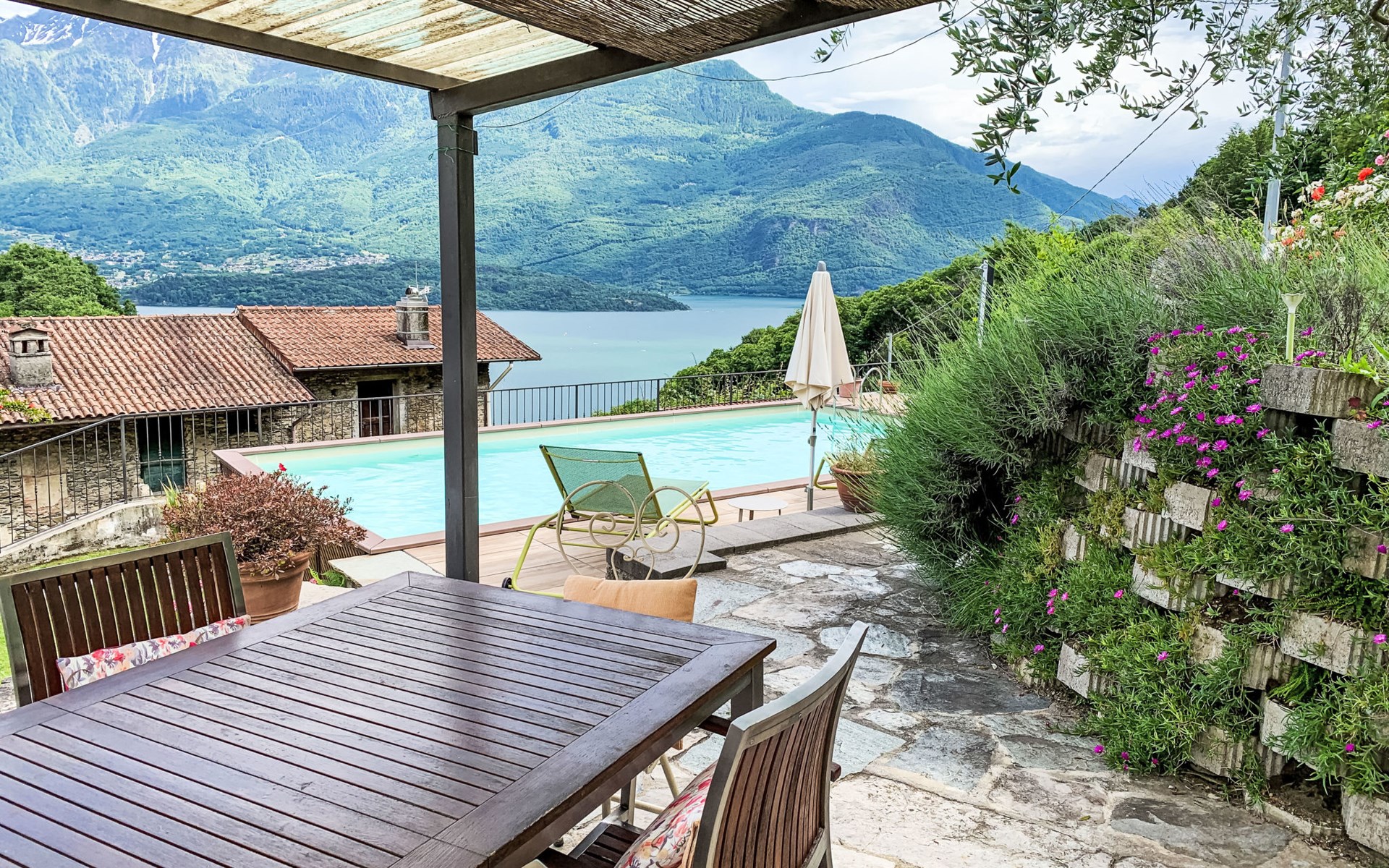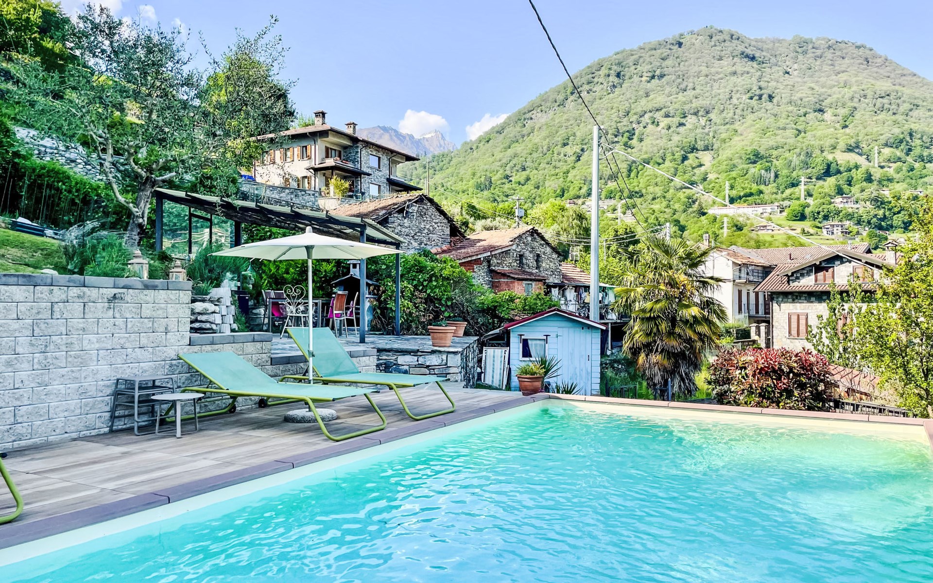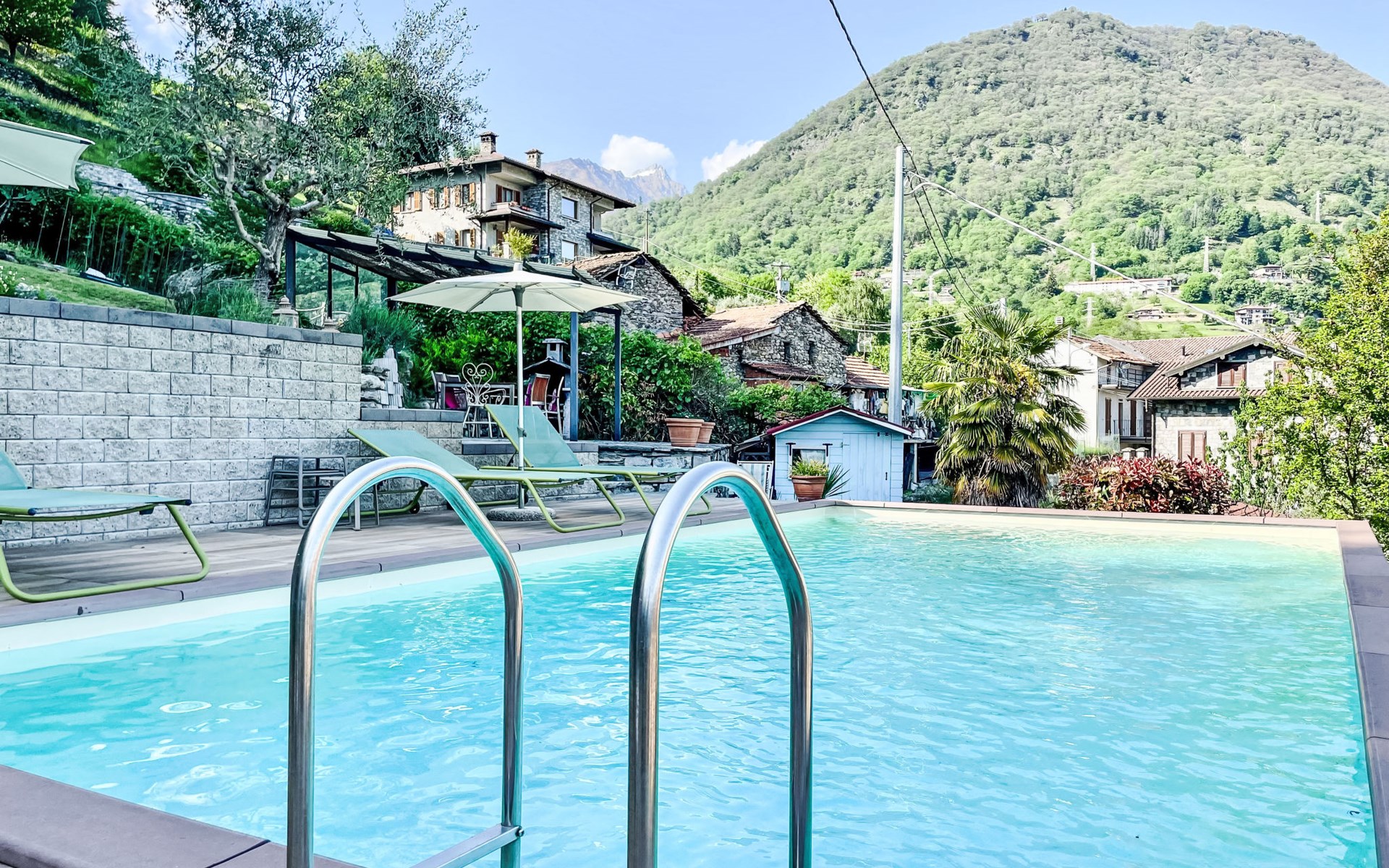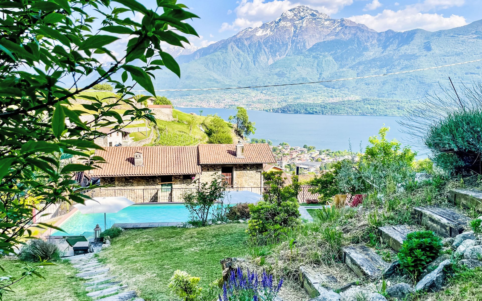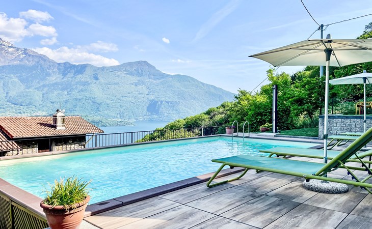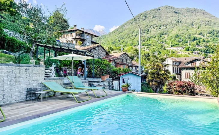 Gemütliches Rustico "Tuschaus", auf 3 Stockwerken. Im Weiler Gaggio, 2 km vom Zentrum von Domaso, 52 km vom Zentrum von Como, 52 km vom Zentrum von Lecco, am Hang, 1 km vom See. Zur Mitbenutzung: Grundstück 1'000 m2 (eingezäunt), gepflegter terrassierter Garten (eingezäunt) mit Rasen und Pflanzen, Obstgarten, Schwimmbad eckig (8 x 4 m, saisonale Verfügbarkeit: 15.Apr. - 15.Okt.). WC im Poolbereich, Aussendusche, Gartenmöbel, Grill, Poolpflege durch den Besitzer/Gärtner. Brötchenservice. 1.4 km lange schmale Zufahrt bis zum Haus. 200 m Fussweg bis zum Haus. Öffentliche Parkplätze 100 m. Einkaufsgeschäft 2 km, Supermarkt 2 km, Bushaltestelle 400 m, Bahnstation "Como" 52 km, Kieselstrand "Spiaggia 'Madonnina'" 2 km. Jacht-Hafen 2 km, Golfplatz (18 Loch) 27 km, Surfschule 2 km, Segelschule 2 km. Nahe gelegene Sehenswürdigkeiten: Tempieto di San Fedelino, Forte di Fuentes, Chiesa di San Bartolomeo. Bekannte Skigebiete sind gut erreichbar: Madesimo. Bekannte Seen in der Umgebung sind gut erreichbar: Lago di Mezzola. Wandergebiete: Monte Berlinghera, Alpe Dosso del Liro, Madonna di Gorghiglio. Bitte beachten: Fahrzeug empfohlen. Objekt geeignet für 4 Erwachsene + 2 Kinder. Der Besitzer akzeptiert keine Jugendgruppen. Be- und Entladen am Ferienhaus möglich. Weitere Unterkünfte sind buchbar. Ferienwohnung Ref. IT2427.666.1 befindet sich auf dem gleichen Grundstück.