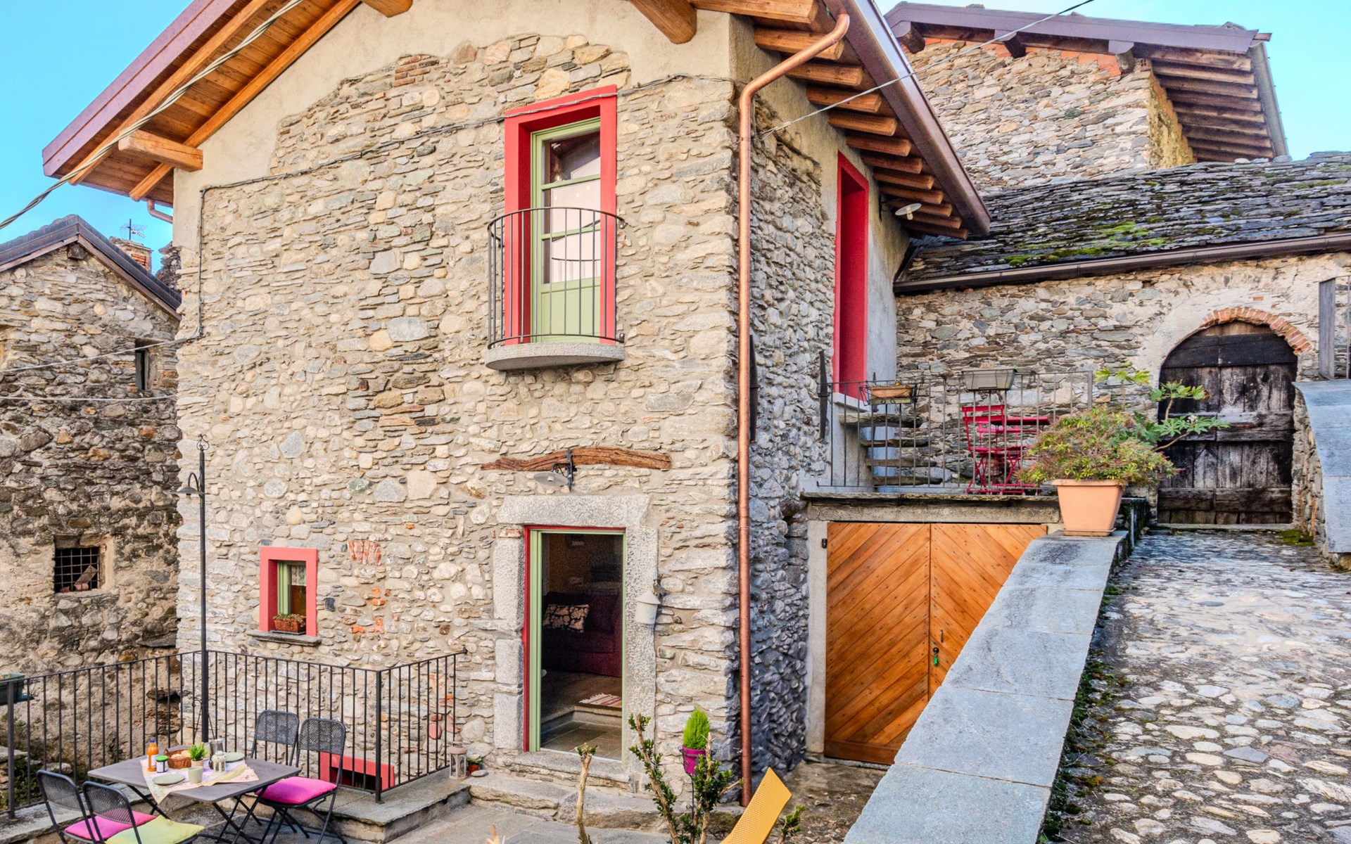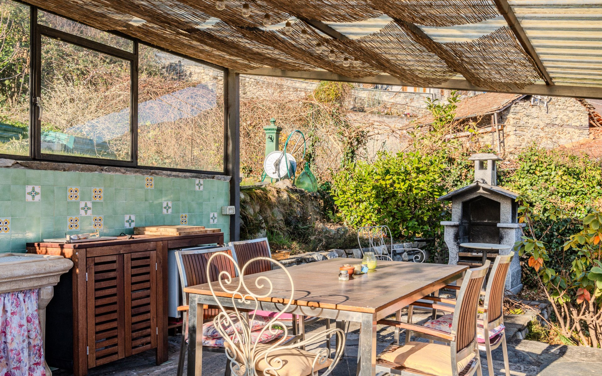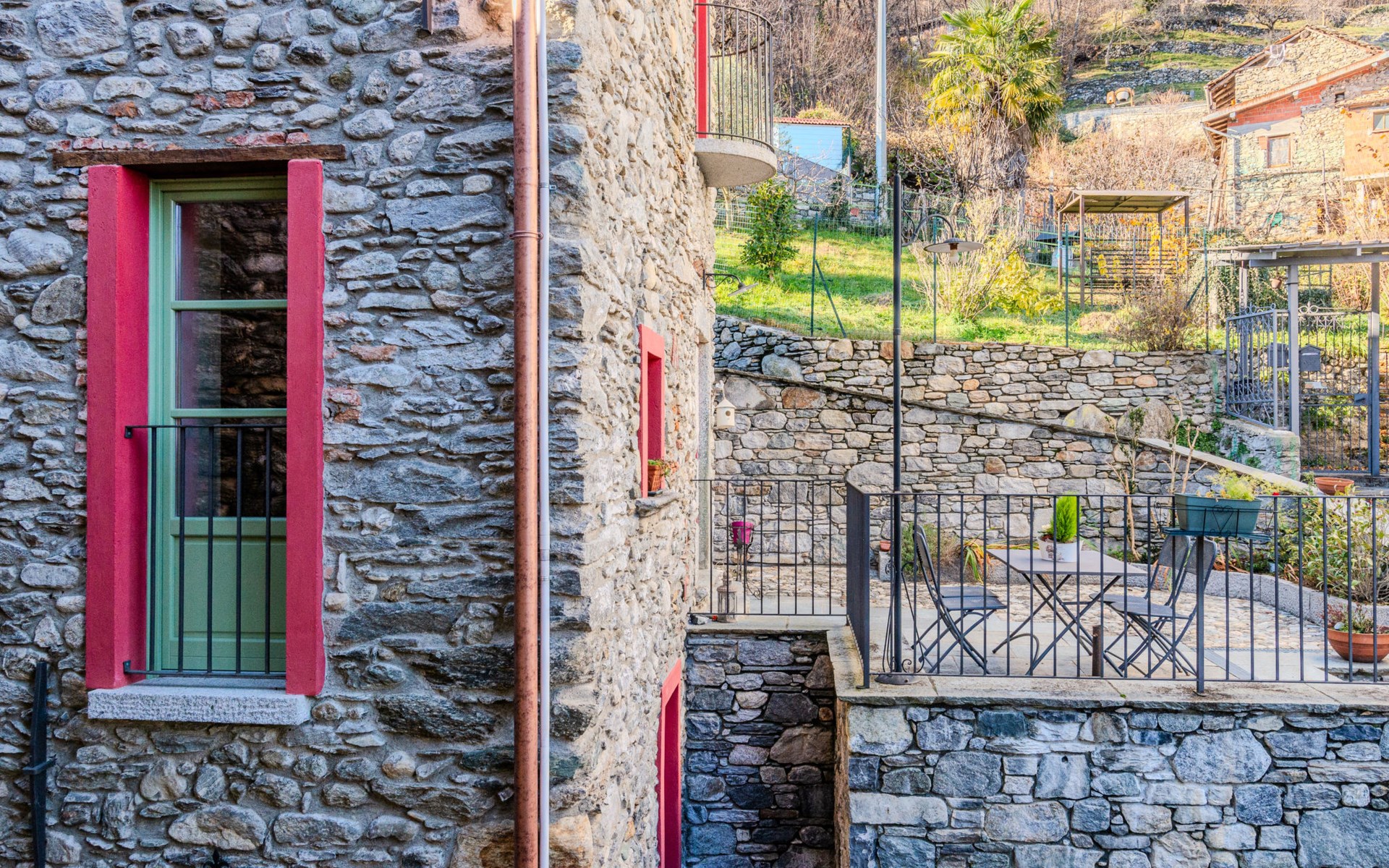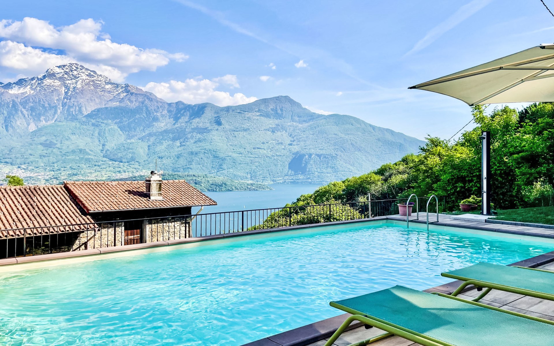 Gemütliches Rustico "Tuschaus", auf 3 Stockwerken. Im Weiler Gaggio, 2 km vom Zentrum von Domaso, 52 km vom Zentrum von Como, 52 km vom Zentrum von Lecco, am Hang, 1 km vom See. Zur Mitbenutzung: Grundstück 1'000 m2 (eingezäunt), gepflegter terrassierter Garten (eingezäunt) mit Rasen und Pflanzen, Obstgarten, Schwimmbad eckig (8 x 4 m, saisonale Verfügbarkeit: 15.Apr. - 15.Okt.). WC im Poolbereich, Aussendusche, Gartenmöbel, Grill, Poolpflege durch den Besitzer/Gärtner. Brötchenservice. 1.4 km lange schmale Zufahrt bis zum Haus. 200 m Fussweg bis zum Haus. Öffentliche Parkplätze 100 m. Einkaufsgeschäft 2 km, Supermarkt 2 km, Bushaltestelle 400 m, Bahnstation "Como" 52 km, Kieselstrand "Spiaggia 'Madonnina'" 2 km. Jacht-Hafen 2 km, Golfplatz (18 Loch) 27 km, Surfschule 2 km, Segelschule 2 km. Nahe gelegene Sehenswürdigkeiten: Tempieto di San Fedelino, Forte di Fuentes, Chiesa di San Bartolomeo. Bekannte Skigebiete sind gut erreichbar: Madesimo. Bekannte Seen in der Umgebung sind gut erreichbar: Lago di Mezzola. Wandergebiete: Monte Berlinghera, Alpe Dosso del Liro, Madonna di Gorghiglio. Bitte beachten: Fahrzeug empfohlen. Objekt geeignet für 4 Erwachsene + 2 Kinder. Der Besitzer akzeptiert keine Jugendgruppen. Be- und Entladen am Ferienhaus möglich. Weitere Unterkünfte sind buchbar. Ferienwohnung Ref. IT2427.666.1 befindet sich auf dem gleichen Grundstück.