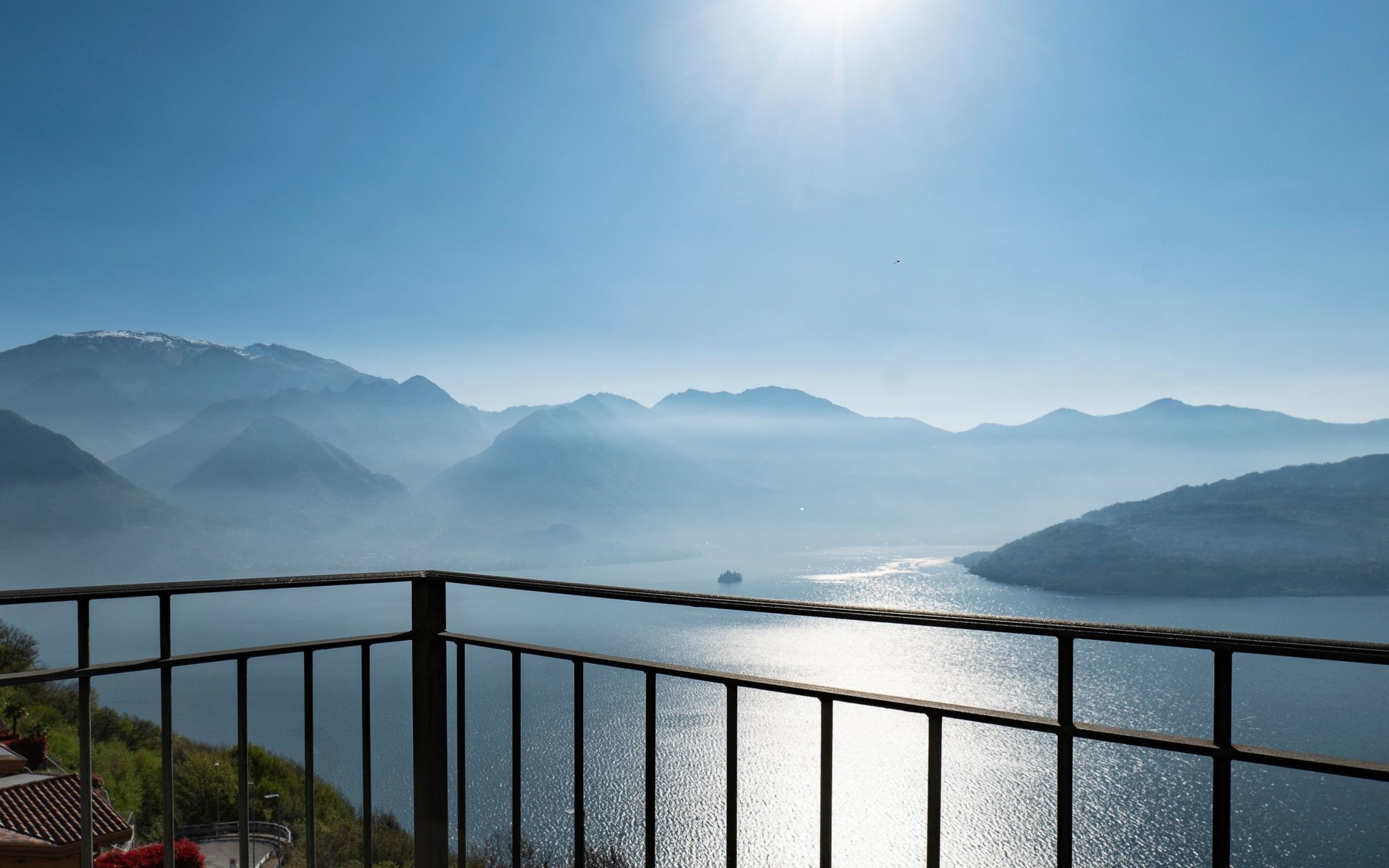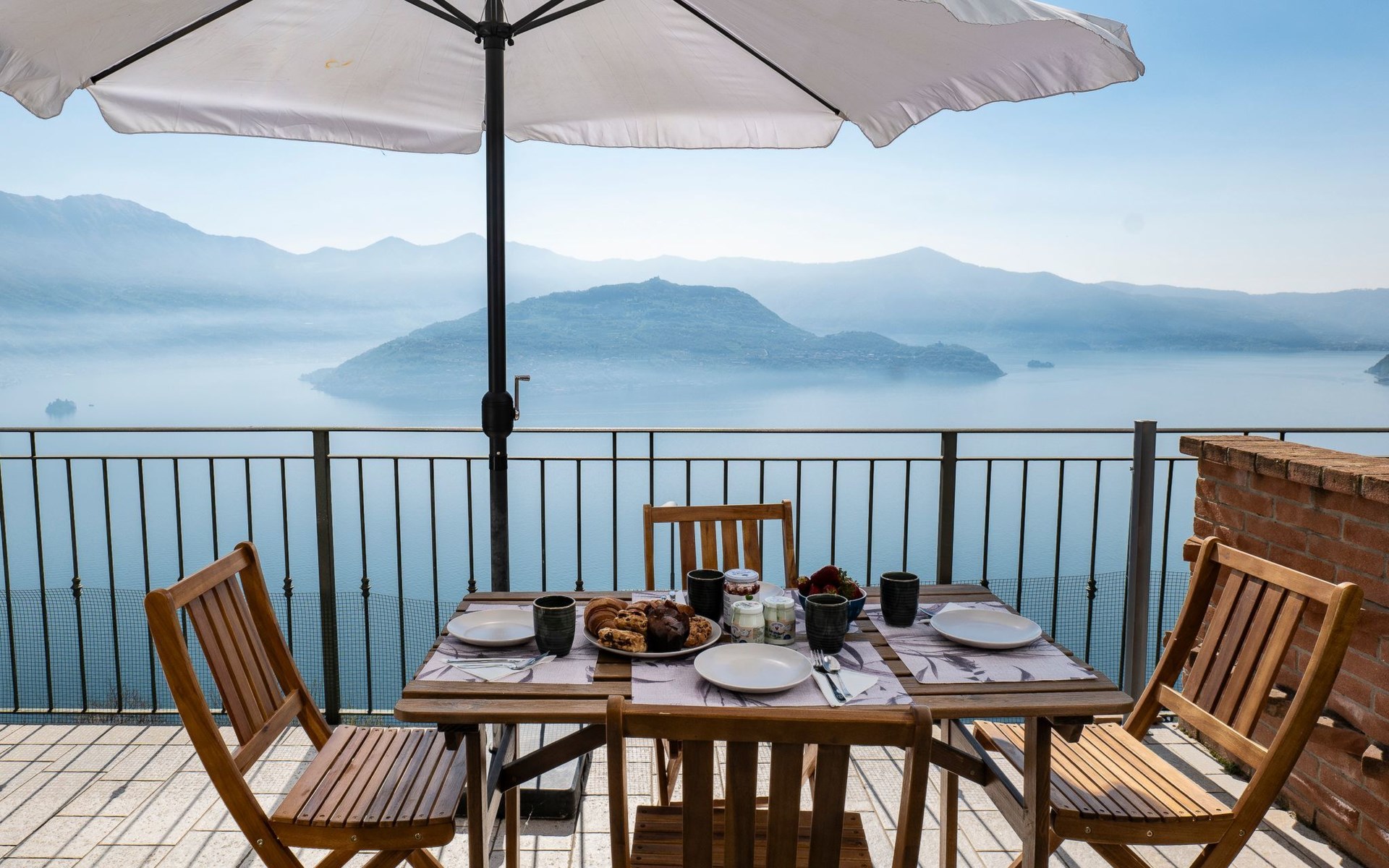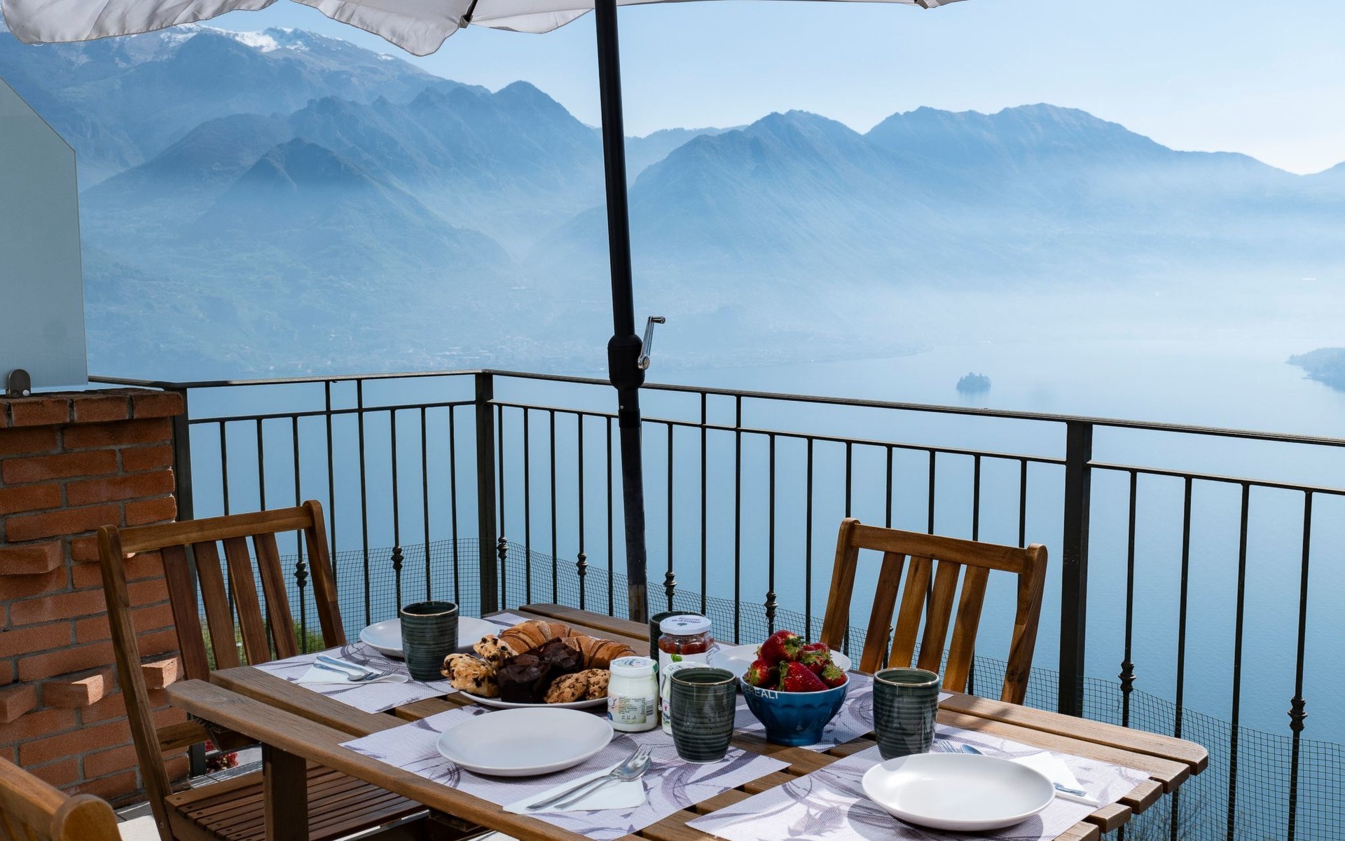 Das Vorhandensein von natürlichem Licht ist ein weiteres wichtiges Element. Die Wohnung ist nach Südosten ausgerichtet und erhält von morgens an Licht durch die großen Glasfenster: die Fenster in den Schlafzimmern, die große Fenstertür im Wohnzimmer, die auf die Terrasse führt. Diese ist, wie Sie auf den Bildern sehen können, ein Sprungbrett ins Blaue: ein echter zusätzlicher Raum bei schönem Wetter, der es Ihnen ermöglicht, im Freien zu speisen - dank der vorhandenen Möbel - oder sich zu entspannen, während Sie die unglaubliche Aussicht auf den See und die umliegenden Berge genießen.