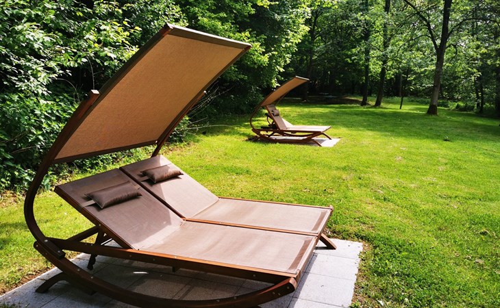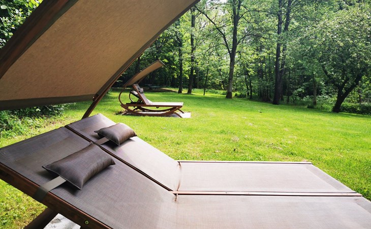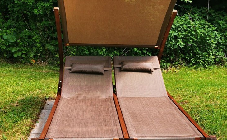 Private Terrasse mit Relaxliegen und Grill