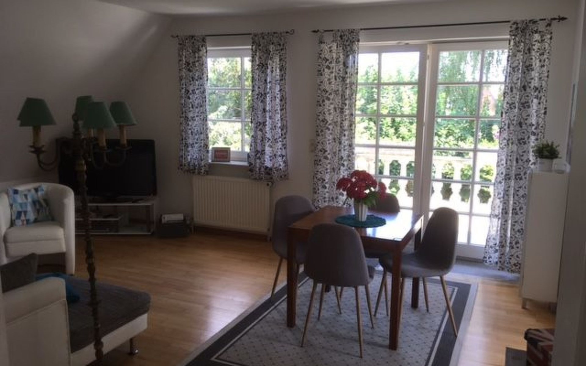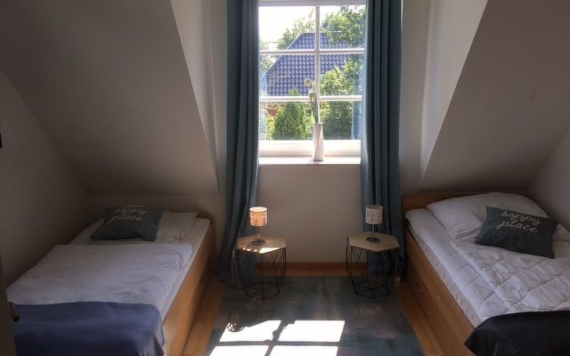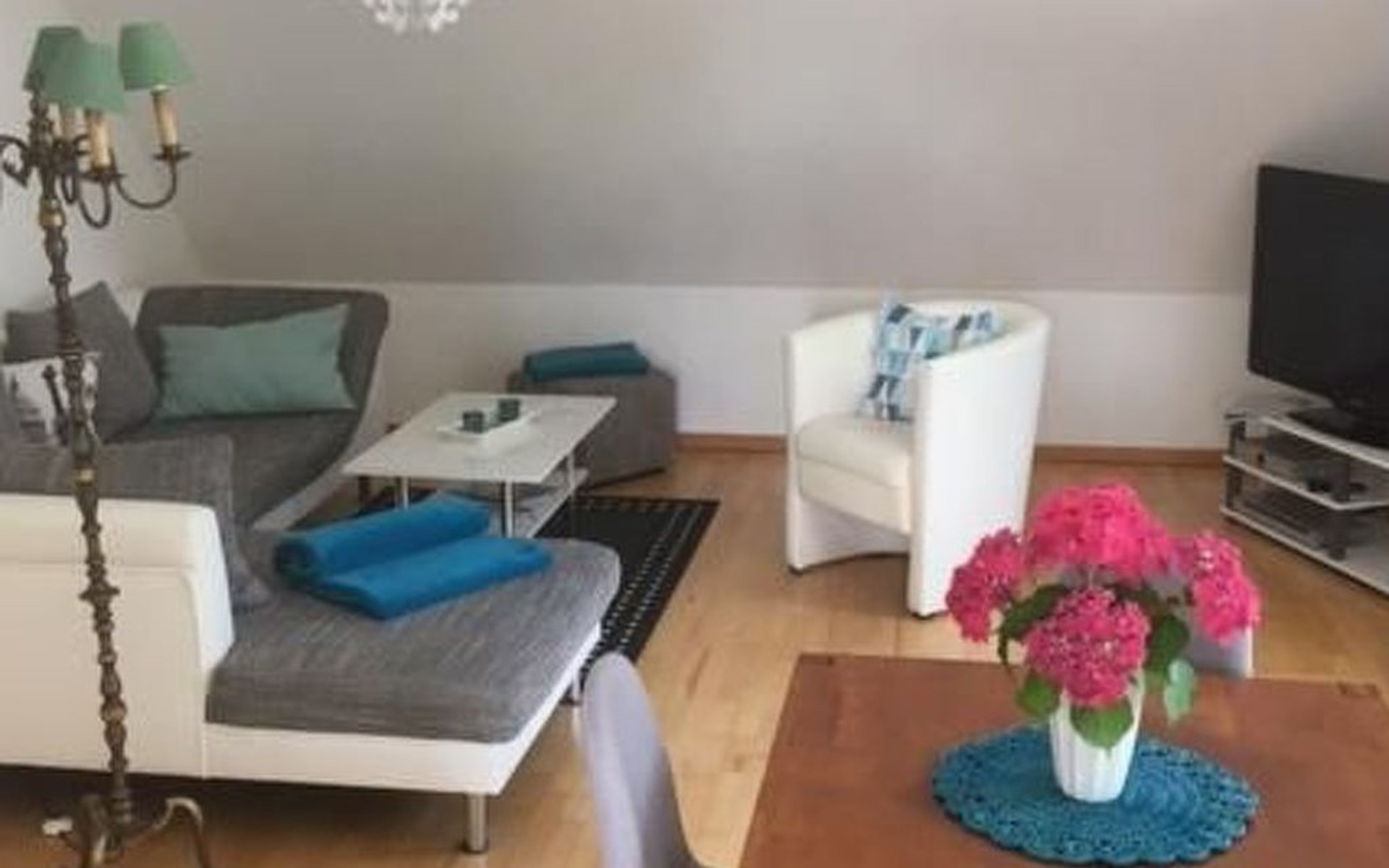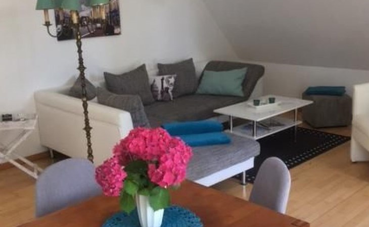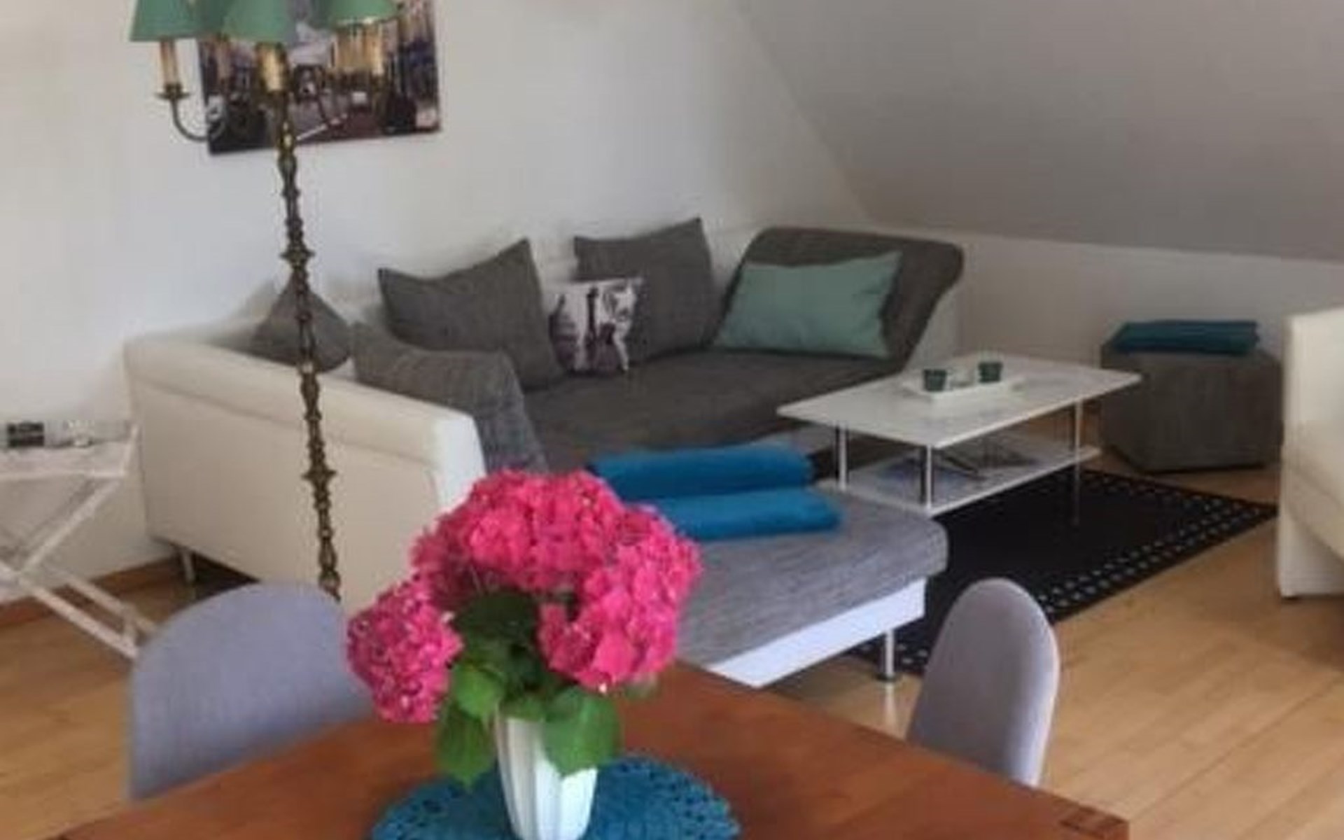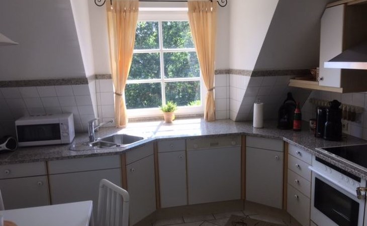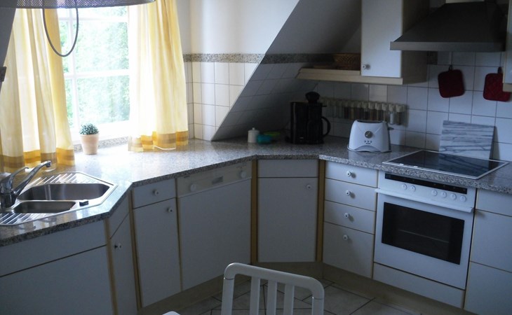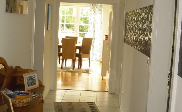 Über einen hell gefliesten Flur gelangen Sie in die einzelnen Räume der Wohnung. Ihnen stehen zwei Schlafzimmer zur Verfügung, von denen eines mit einem Doppelbett (1,80 m x 2,00 m) und das andere mit zwei Einzelbetten (je 0,90 m x 2,00 m) eingerichtet ist. Außerdem gibt es ein Tageslichtbad mit Eckbadewanne, Dusche, Föhn, Waschbecken und WC. Im hellen und modern eingerichteten Wohnzimmer steht Ihnen eine Eckcouch sowie ein Flachbildfernseher mit Sat.-TV und DVD-Player zur Verfügung. Außerdem können Sie an dem Esstisch gemeinsame Mahlzeit zu sich nehmen. Die helle Küche bietet einen Herd mit Cerankochfeld und Dunstabzugshaube, einen Backofen, Kühlschrank mit Gefrierfach, eine Spülmaschine, Mikrowelle sowie eine Kaffeemaschine.