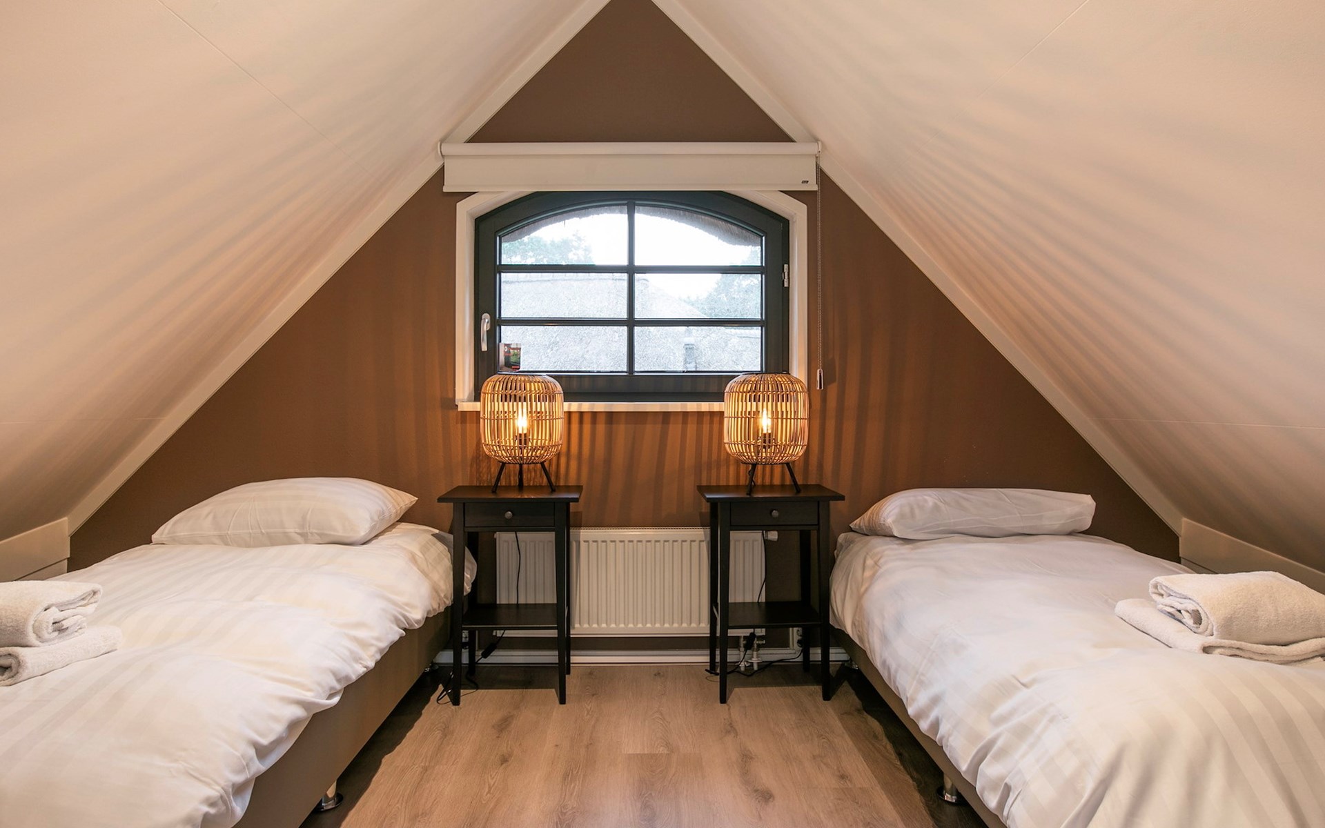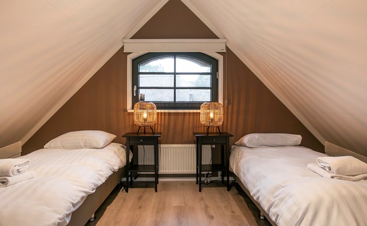 In der ersten Etage gibt es eine Galerie und 1 Schlafzimmer mit 2 Einzelbetten.