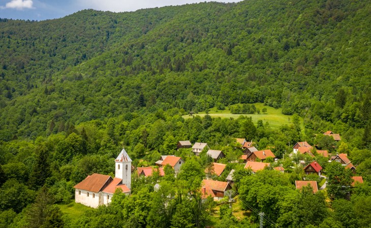 Velika Lešnica 3 km von Brod na Kupi: Einfamilienhaus "Gorski Raj". Ruhige Lage, 50 km vom Meer, 50 km vom Strand. Zur Alleinbenutzung: Grundstück 400 m2 (eingezäunt), Garten 50 m2. Grill. Im Hause: Internetzugang, Waschmaschine. Parkplatz beim Haus auf dem Grundstück. Einkaufsgeschäft 3.5 km, Restaurant 3.5 km, Bushaltestelle 3.7 km. Nahe gelegene Sehenswürdigkeiten: Rafting Croatia 2 km.