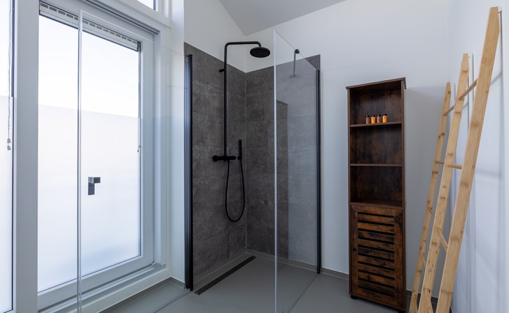 Im Haus am See finden Sie zwei komplette Badezimmer, beide mit einer geräumigen Dusche und einem Waschbecken mit Spiegel ausgestattet. Es gibt zwei separate Toiletten in der Wohnung, für zusätzlichen Komfort, eine beim Wohnzimmer und der Küche und eine im Obergeschoss. Und vergessen Sie nicht den praktischen Abstellraum mit Waschmaschine und Trockner.