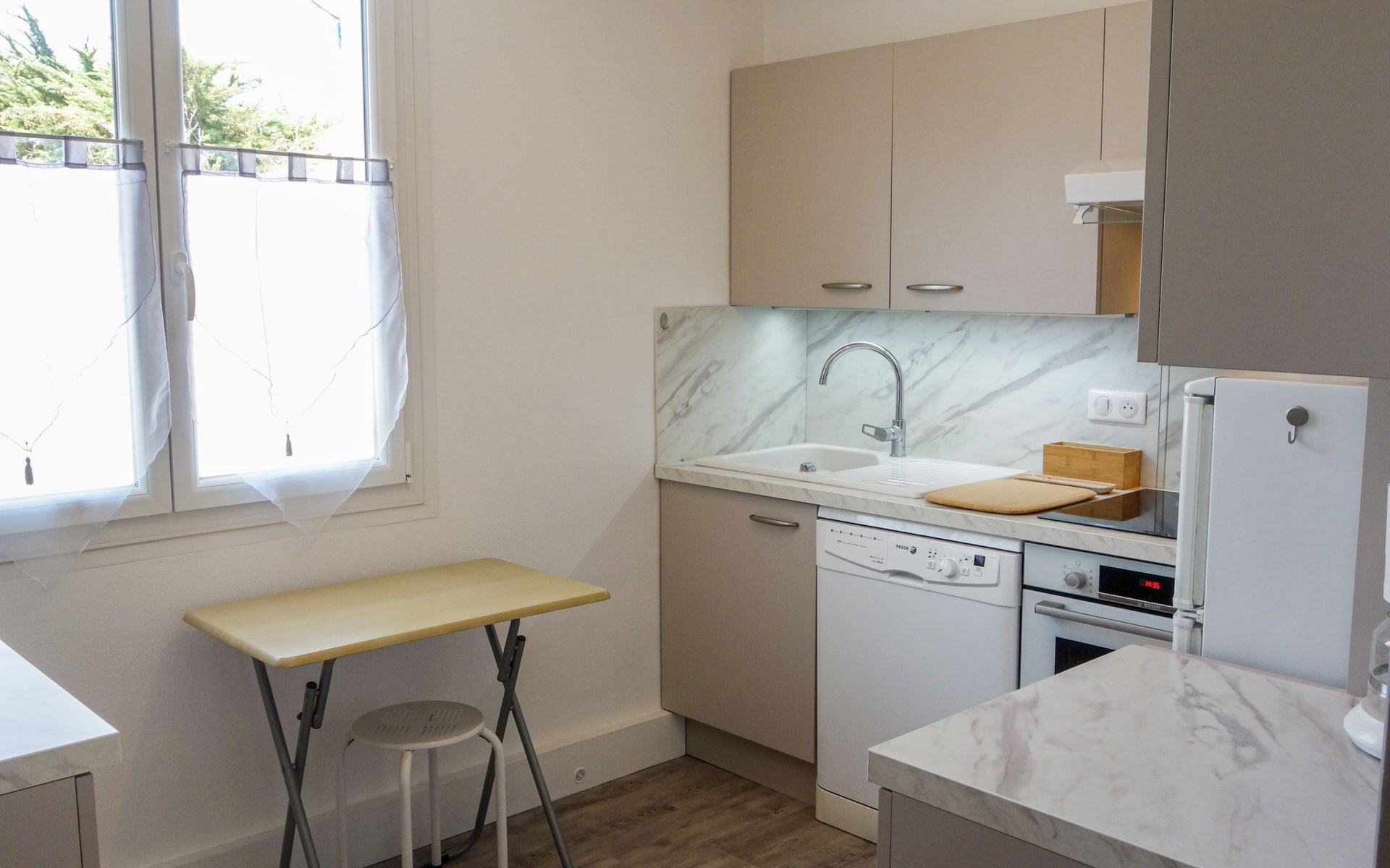 Vaux sur Mer 3 km von Royan: Zweifamilienhaus "L'Océan". 2 Wohnungen im Ferienhaus. 950 m vom Zentrum von Vaux sur Mer, 1 km vom Meer, 1 km vom Strand. Supermarkt 400 m, Bar 1 km, Bäckerei 1 km, Bushaltestelle "Stade" 500 m, Bahnstation "Royan" 5 km, Sandstrand "Saint Sordelin" 1 km (klein), Park "Luna Park (Juillet-Août)" 18 km, Hallenbad 5 km, Thermalbad "Thalassothérapie Thalazur Royan" 3 km. Sporthafen 4 km, Golfplatz (18 Loch) 5 km, Surfschule 1.5 km, Segelschule 1.8 km, Tennis 1.3 km, Tennishalle 1.3 km, Minigolf 1.9 km, Reitstall 6 km, Radweg 300 m. Nahe gelegene Sehenswürdigkeiten: Zoo de La Palmyre 12 km, Hippodrome - La Palmyre 13 km, Centre aquatique Iléo - Ile d'Oléron 46 km, Fort Boyard - Fouras 58 km, Aéroport La Rochelle - Ile de Ré 80 km, Aéroport Bordeaux - Merignac 133 km.