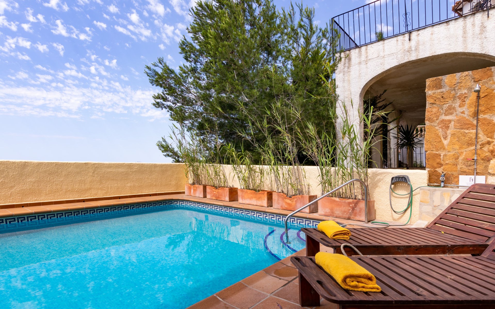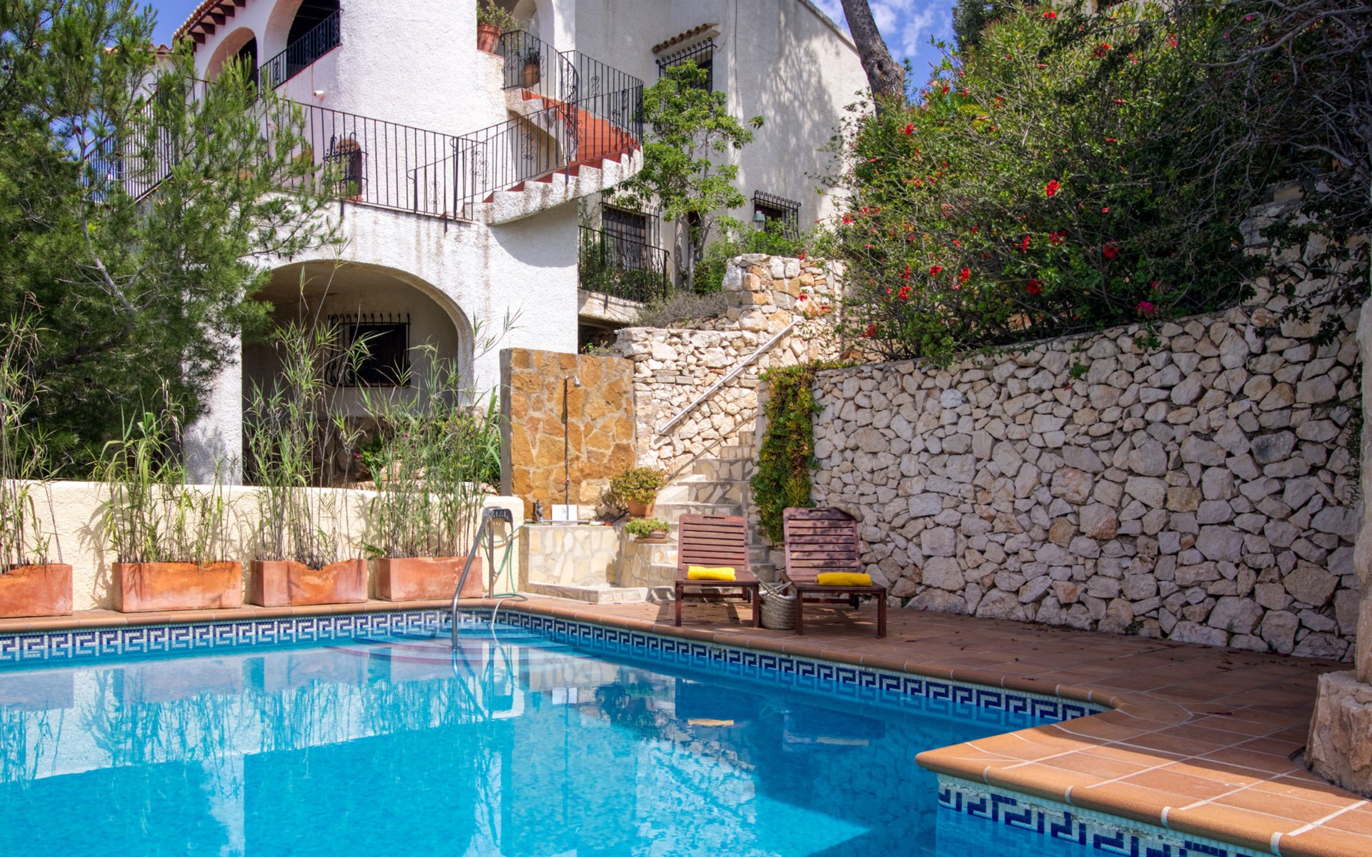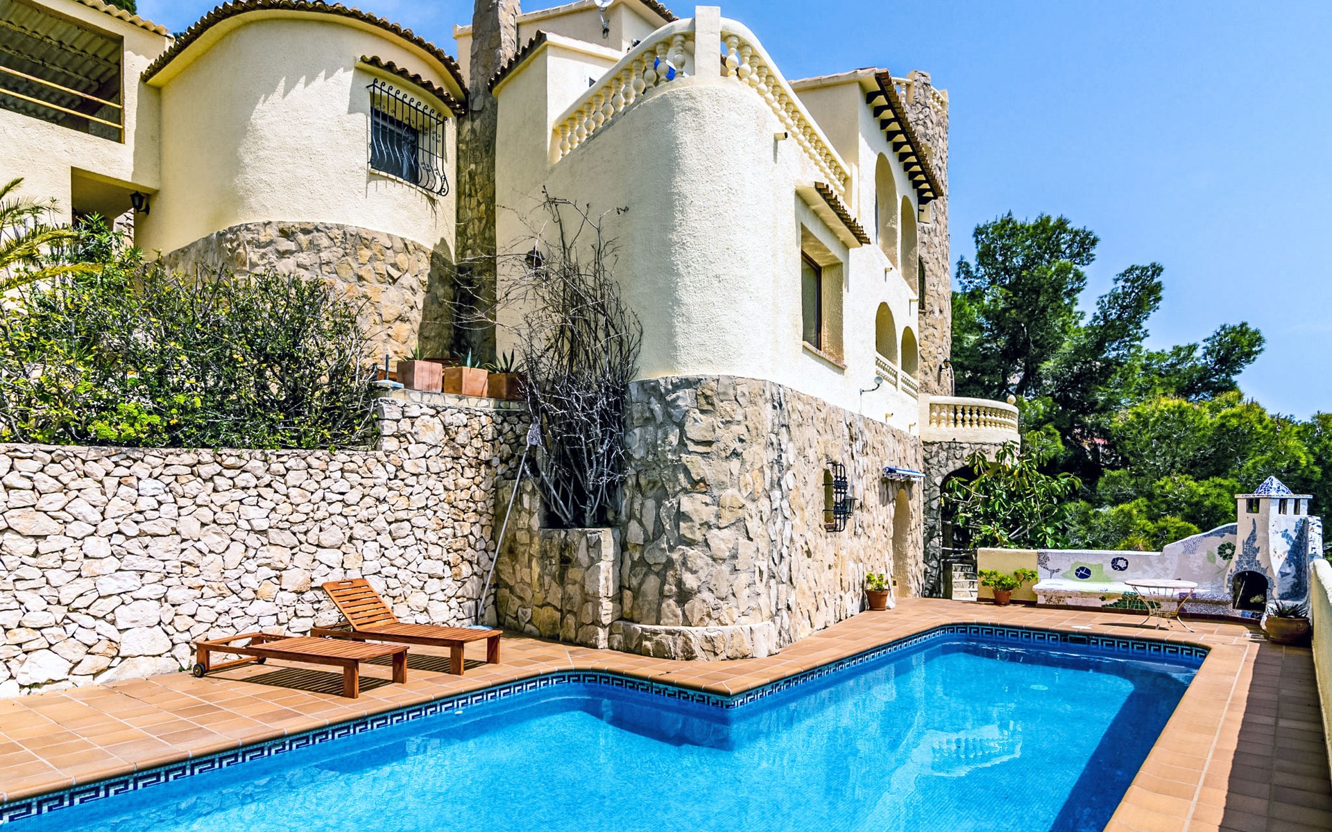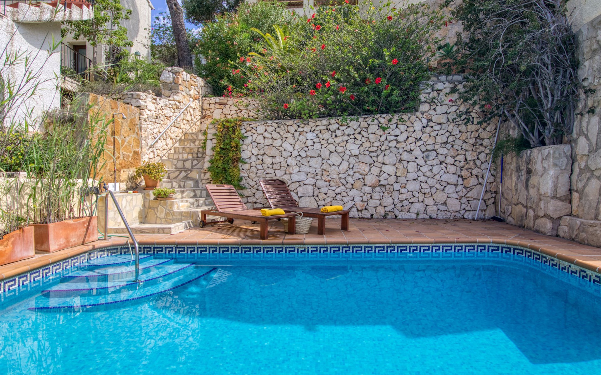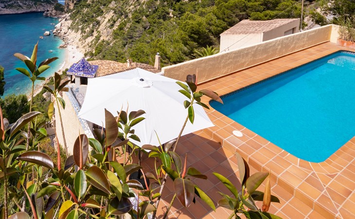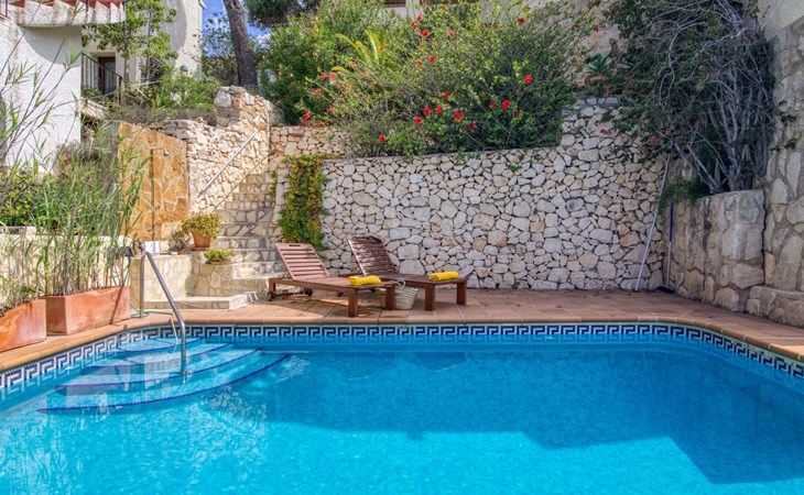 Haus "Igor", auf 2 Stockwerken. Im Ortsteil Balcón al Mar, sonnige Lage am Hang, im Villenviertel, 500 m vom Meer, Richtung Süden. Zur Alleinbenutzung: terrassierter Garten (eingezäunt) mit Pflanzen und Bäumen, Schwimmbad (5 x 12 m, 110 - 180 cm tief, saisonale Verfügbarkeit: 01.Jan. - 31.Dez.) mit Innentreppe. Aussendusche. Treppenweg (17 Stufen) bis zum Haus. Öffentliche Parkplätze auf der Strasse. Supermarkt 1 km, Restaurant 600 m, Bushaltestelle "Toscamar" 4.6 km, Sandstrand "Arenal" 8 km, Kieselstrand "La Barraca" 5 km, Steinstrand "Granadella" 5 km. Bitte beachten: Für Kleinkinder nicht geeignet. Besitzer wohnt in separatem Hausteil. Der Besitzer bewohnt die obere Etage nur selten.