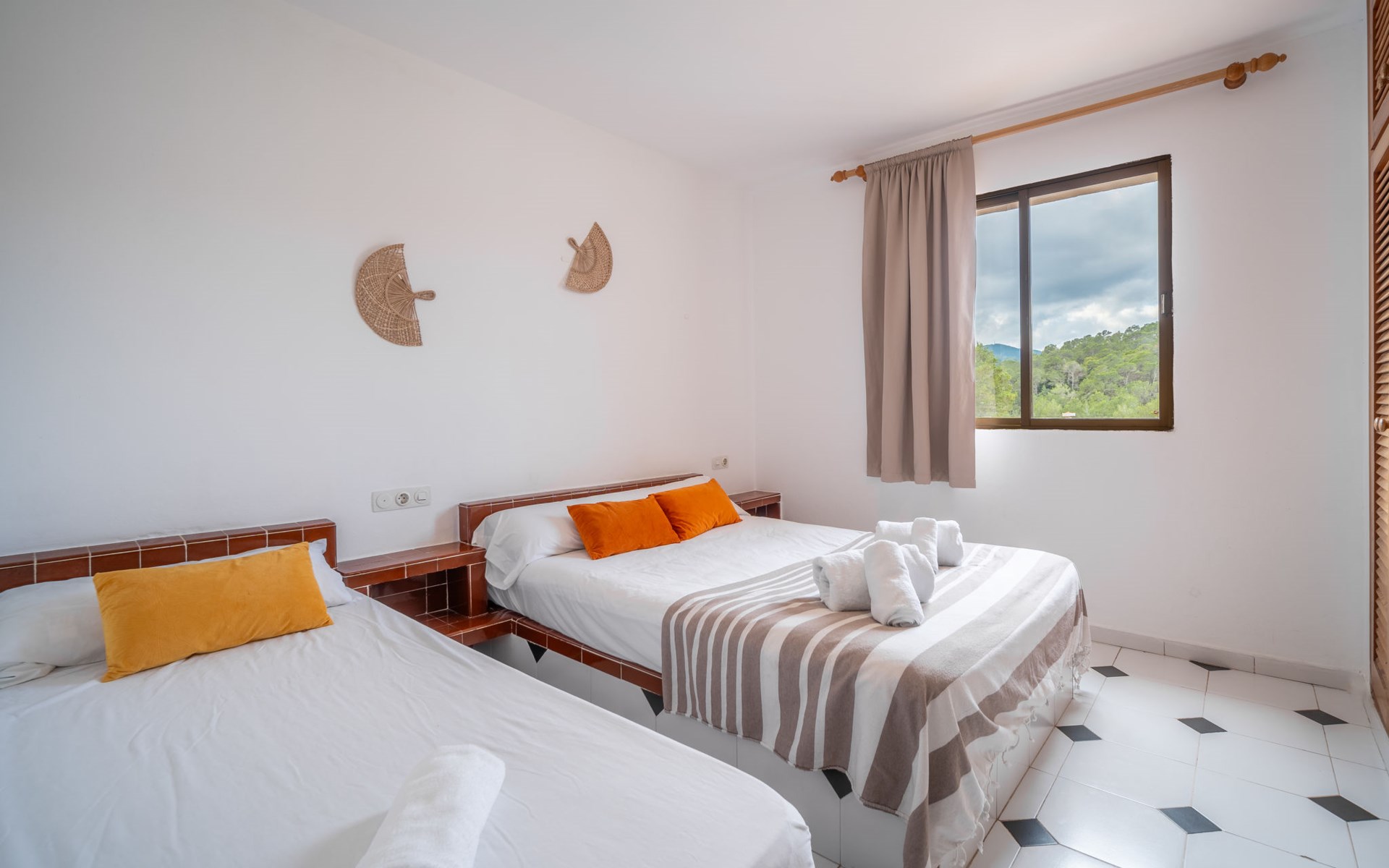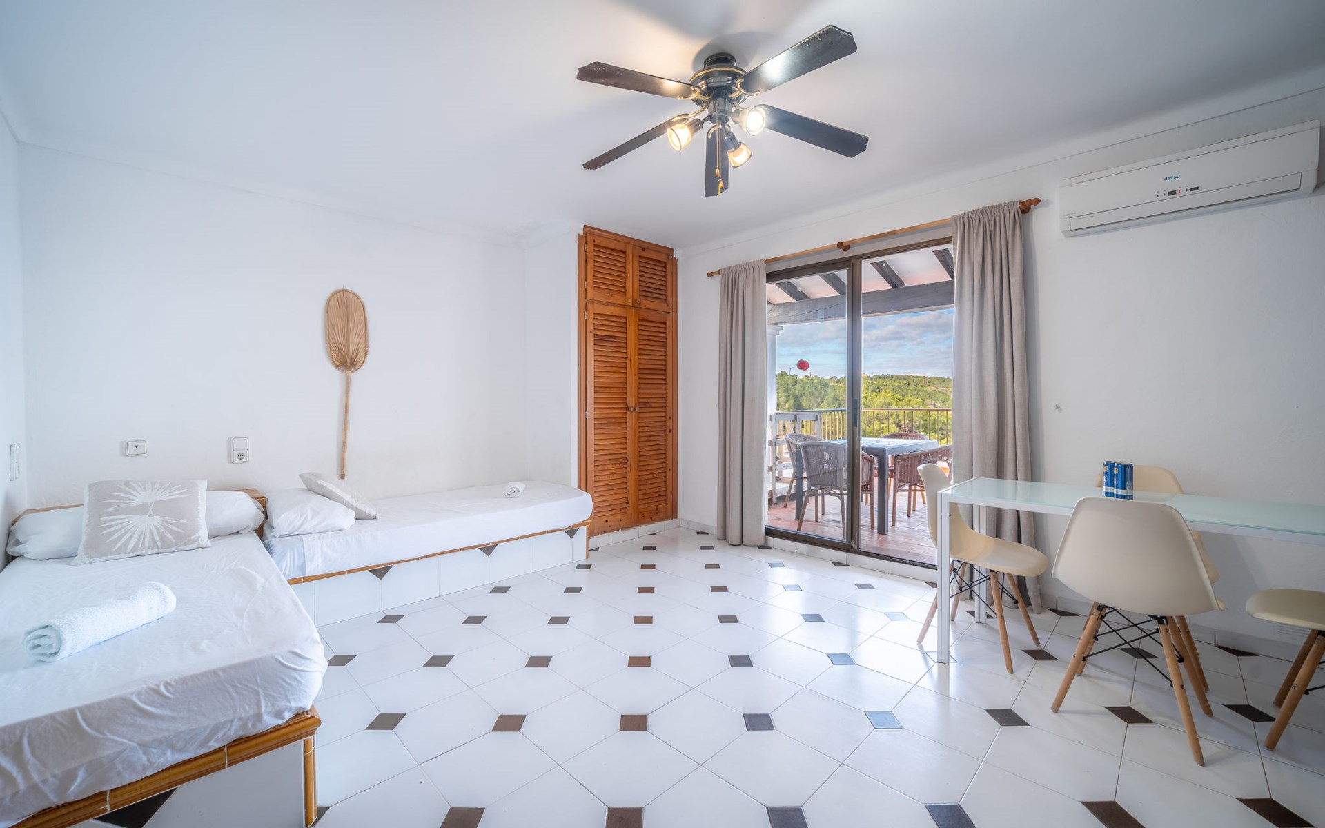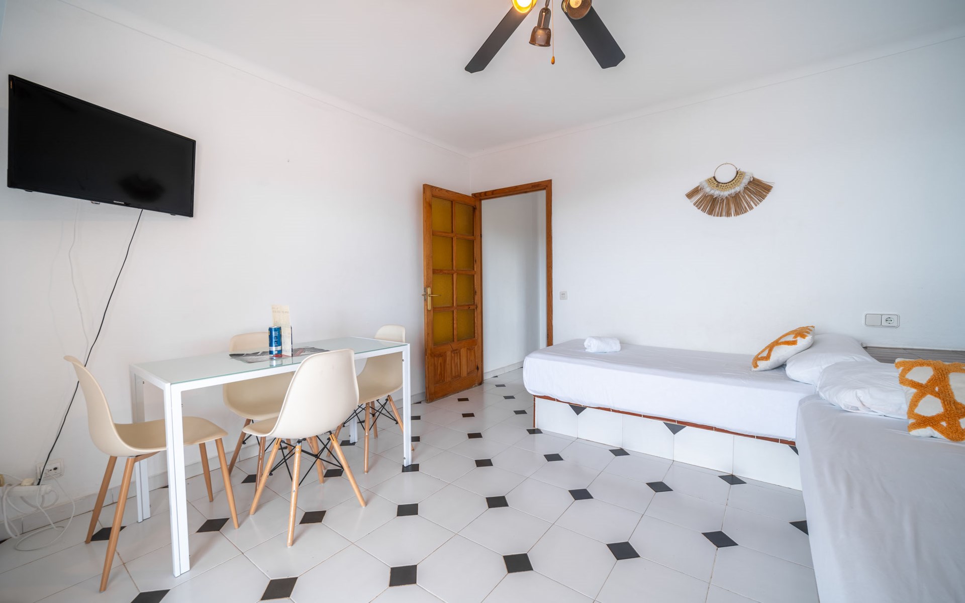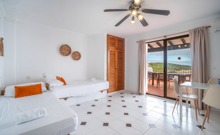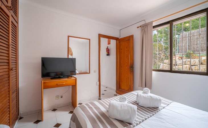 Portinatx 9 km von Sant Joan de Labritja: Gemütliches, einfaches Appartementhaus "Apartamentos Es Grop Portinatx". 17 Wohnungen im Ferienhaus. Zentrale, ruhige Lage, 1 km vom Waldrand, 30 m vom Meer, 30 m vom Strand, direkter Zugang zum Strand. Zur Mitbenutzung: Garten, Schwimmbad eckig (6 x 3 m, saisonale Verfügbarkeit: 01.Mar. - 31.Okt.). WC im Poolbereich, Aussendusche, Terrasse. Im Hause: Empfang, Restaurant, Bistro, Wireless LAN, Fahrstuhl, Klimaanlage. Parkplatz (für 10 Autos). Einkaufsgeschäft, Lebensmittelgeschäft 150 m, Supermarkt 200 m, Restaurant, Bar 10 m, Bäckerei 150 m, Café 100 m, Fußgängerzone 10 m, Bushaltestelle "Cala Portinatx" 350 m, Sandstrand "Platja Portinatx" 15 m, Tauchzentrum 2 km, Freibad 10 m. Nahe gelegene Sehenswürdigkeiten: Cala Xarraca 2 km, Cala de Xuclar 850 m, Cala d'en Serra 1.9 km, Faro de Portinatx 1.5 km, Faro de la punta de Moscater 2.5 km. Wandergebiete: Sendero del Far des Moscater 1.5 km. Bitte beachten: Be- und Entladen am Ferienhaus möglich. Bewachte Residenz. Hauptstrasse 60 m vom Haus. Flugplatz 36 km vom Haus. Das Foto ist nur ein Hausbeispiel. Das Leitungswasser hat keine Trinkwasserqualität. Die Mietobjekte können sich in Wohnfläche, Raumaufteilung, Ausstattung und Einrichtung unterscheiden.