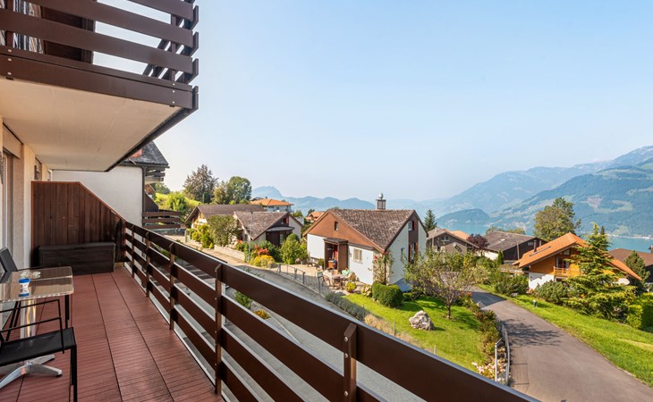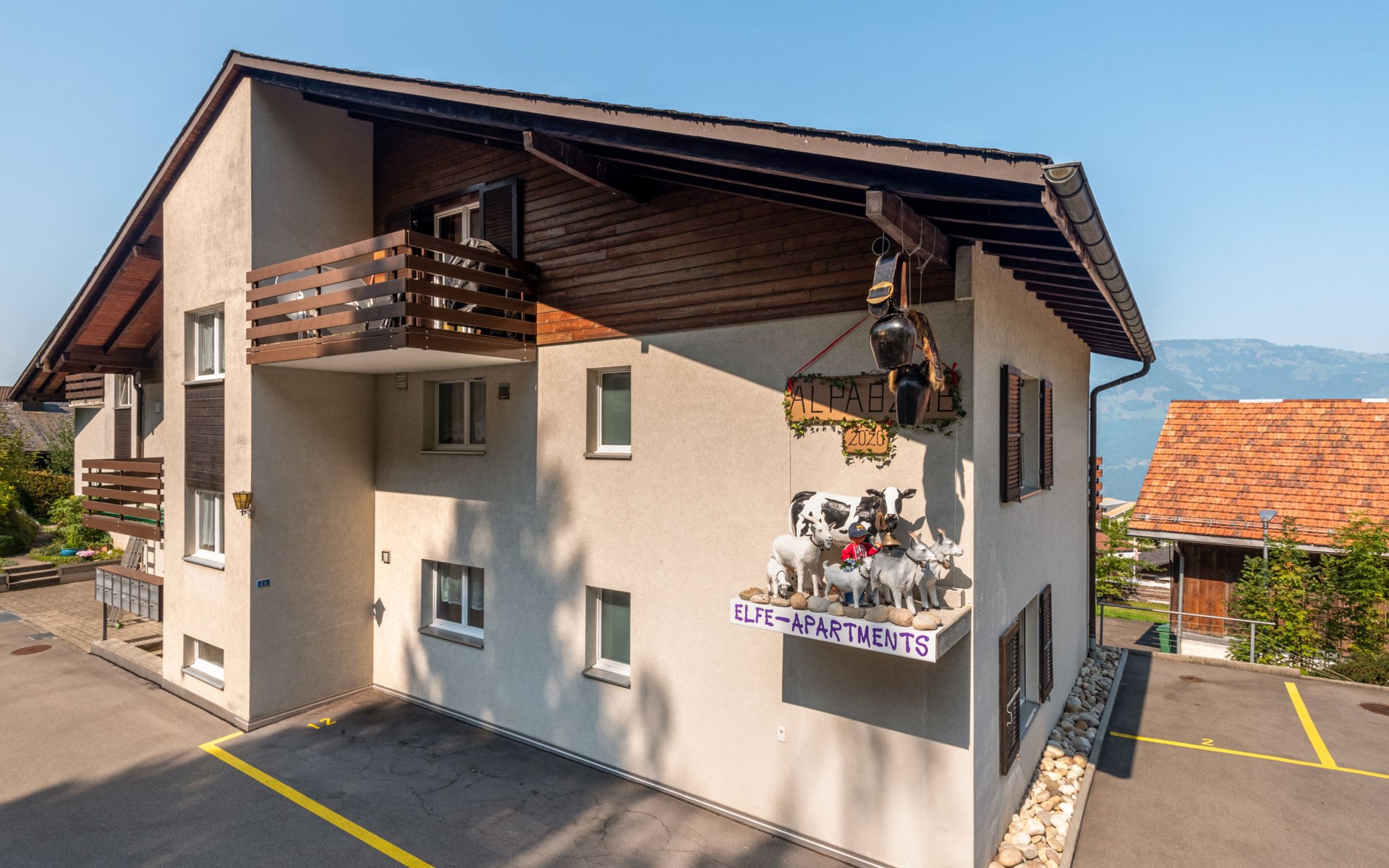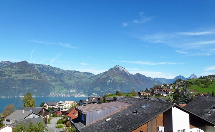 Emmetten 28 km von Luzern: Modernes, schönes, komfortables Mehrfamilienhaus "ELFE Apartments", 780 m.ü.M., auf 3 Stockwerken, umgeben von Bäumen. 3 Häuser in der Residenz. Oberhalb von Beckenried, am Ortsrand, 400 m vom Zentrum von Emmetten, im Bezirk Vierwaldstättersee, ruhige, erhöhte Lage, exzellente Lage: Absolut zentral und dennoch ruhig, 6 km vom See, 300 m vom Skigebiet, im Grünen. Zur Mitbenutzung: Grundstück. Im Hause: Einstellraum für Fahrräder, Skiraum, Zentralheizung, Waschmaschine (zur Mitbenutzung, extra), Trockenraum. Zufahrt bis zum Haus. Im Winter 4x4 empfohlen. Parkplatz (beschränkte Anzahl) beim Haus, im Winter 30 m Gemeinschaftsgarage (extra) beim Haus. Einkaufsgeschäft 500 m, Lebensmittelgeschäft, Restaurant 300 m, Bäckerei 500 m, Bushaltestelle 500 m, Bahnstation "Stans SBB" 12 km, Freibad 6 km, See Vierwaldstätersee 6 km. Minigolf 6 km, Wanderwege ab Haus 1 m, Bergeisenbahn 300 m. Nahe gelegene Sehenswürdigkeiten: Rigi, Pilatus, Stanserhorn (Cabriobahn), Bürgerstock, Niederbauen, Glasi, Hergiswil, Bike-Arena, Emmetten, Tritt - Hütte 1600 m.ü.M. Bekannte Skigebiete sind gut erreichbar: Stockhütte 7 km, Klewenalp 19 km, Seelisberg 8 km. Bekannte Seen in der Umgebung sind gut erreichbar: Vierwaldstättersee 4 km, Urnersee, Seelisbergsee. Wandergebiete: Route 1 Klewenalp-Stockhütte ca. 2h, Route 2 Panoramarundwanderweg ca. 1,5h, Route 6 Klewenalp-Gitschenen ca. 3,5h. Bitte beachten: Fahrzeug empfohlen. Geeignet für Familien, geeignet für Senioren. Bei guter Schneelage Zufahrt mit den Skiern bis zum Haus. Autobahn 5 km vom Haus. Das Foto ist nur ein Hausbeispiel. Weitere Unterkünfte sind buchbar. Ferienwohnung Ref. CH6376.400 befindet sich auf dem gleichen Grundstück.