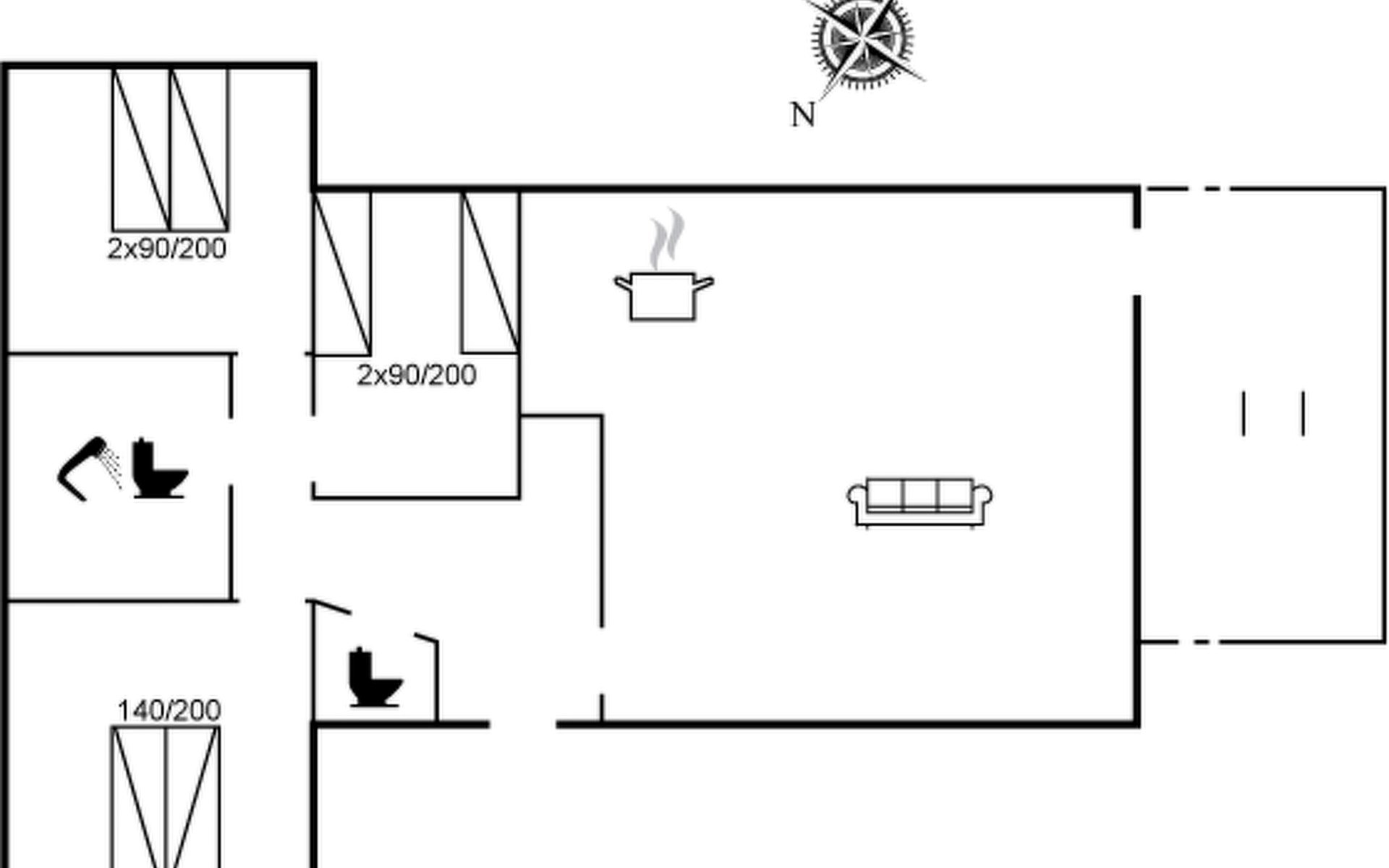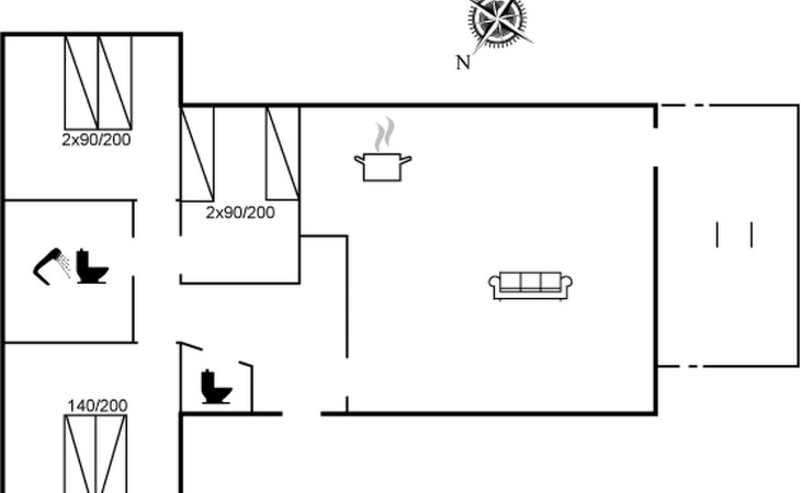 Einfamilienhaus, Baujahr 1960. 250 m vom Meer. Zur Alleinbenutzung: naturbelassenes Grundstück 2'800 m2. Terrasse (40 m2), Grill. Im Hause: Waschmaschine. Parkplatz beim Haus. Carport. Lebensmittelgeschäft 3.5 km. Der Besitzer akzeptiert keine Jugendgruppen.