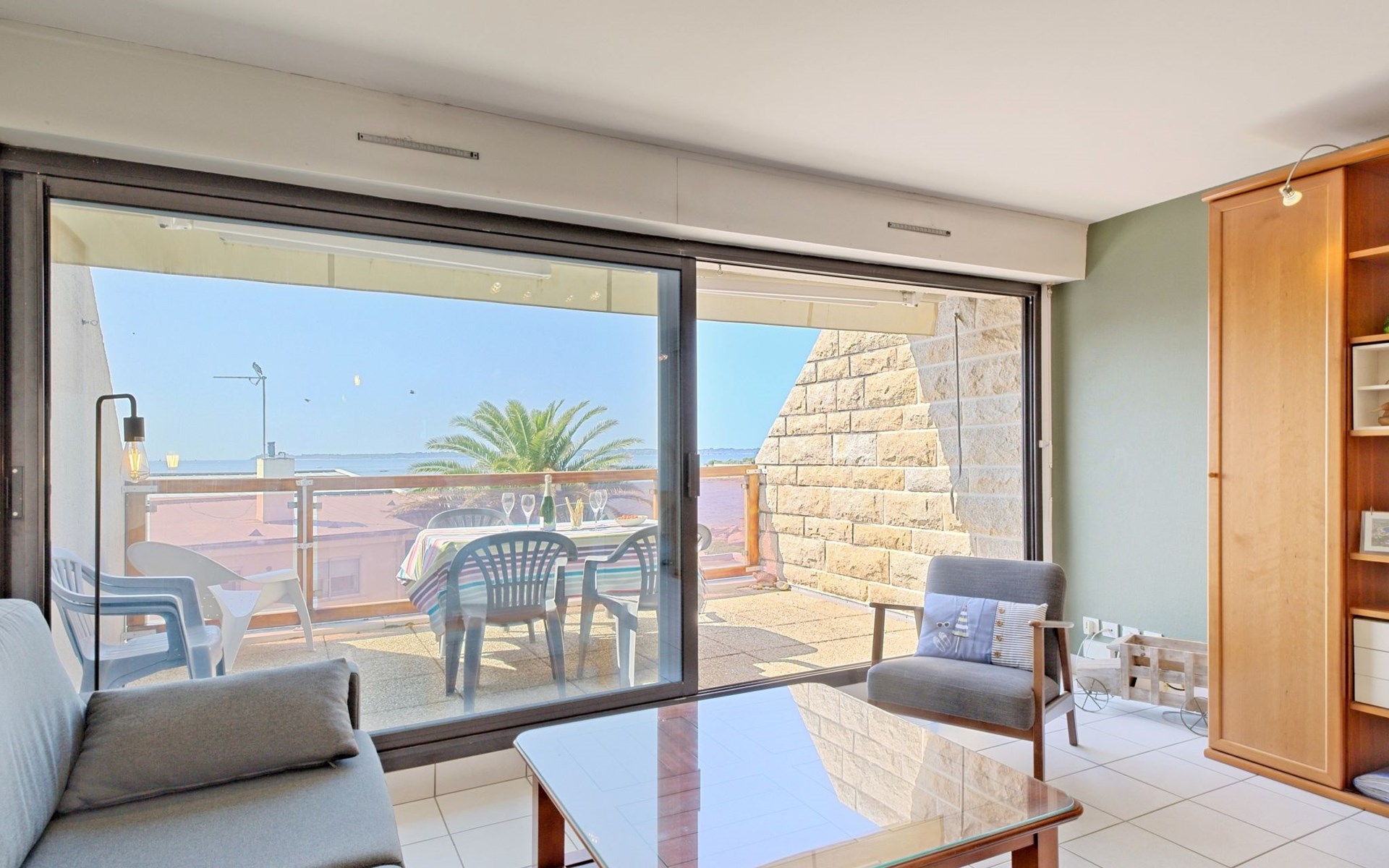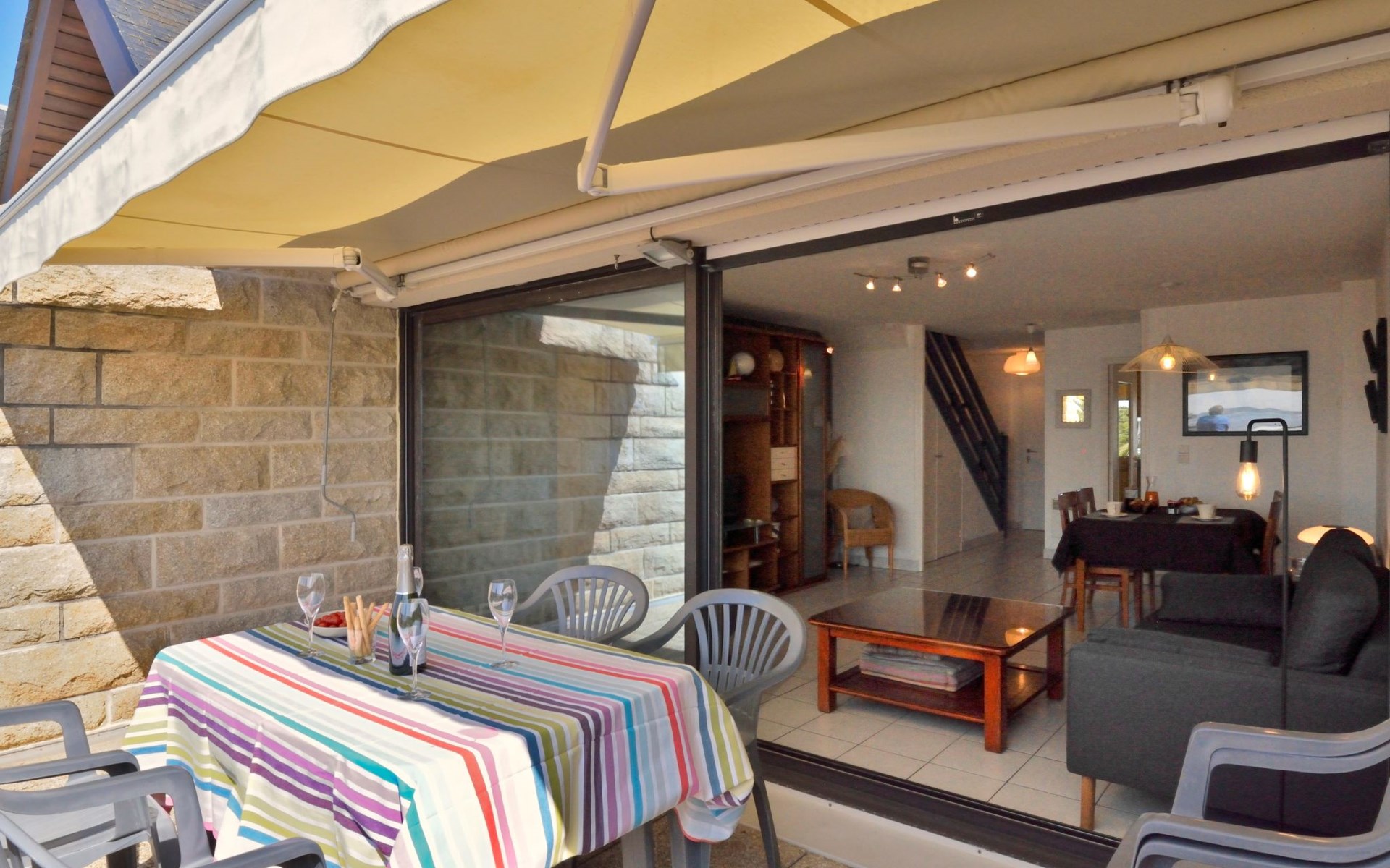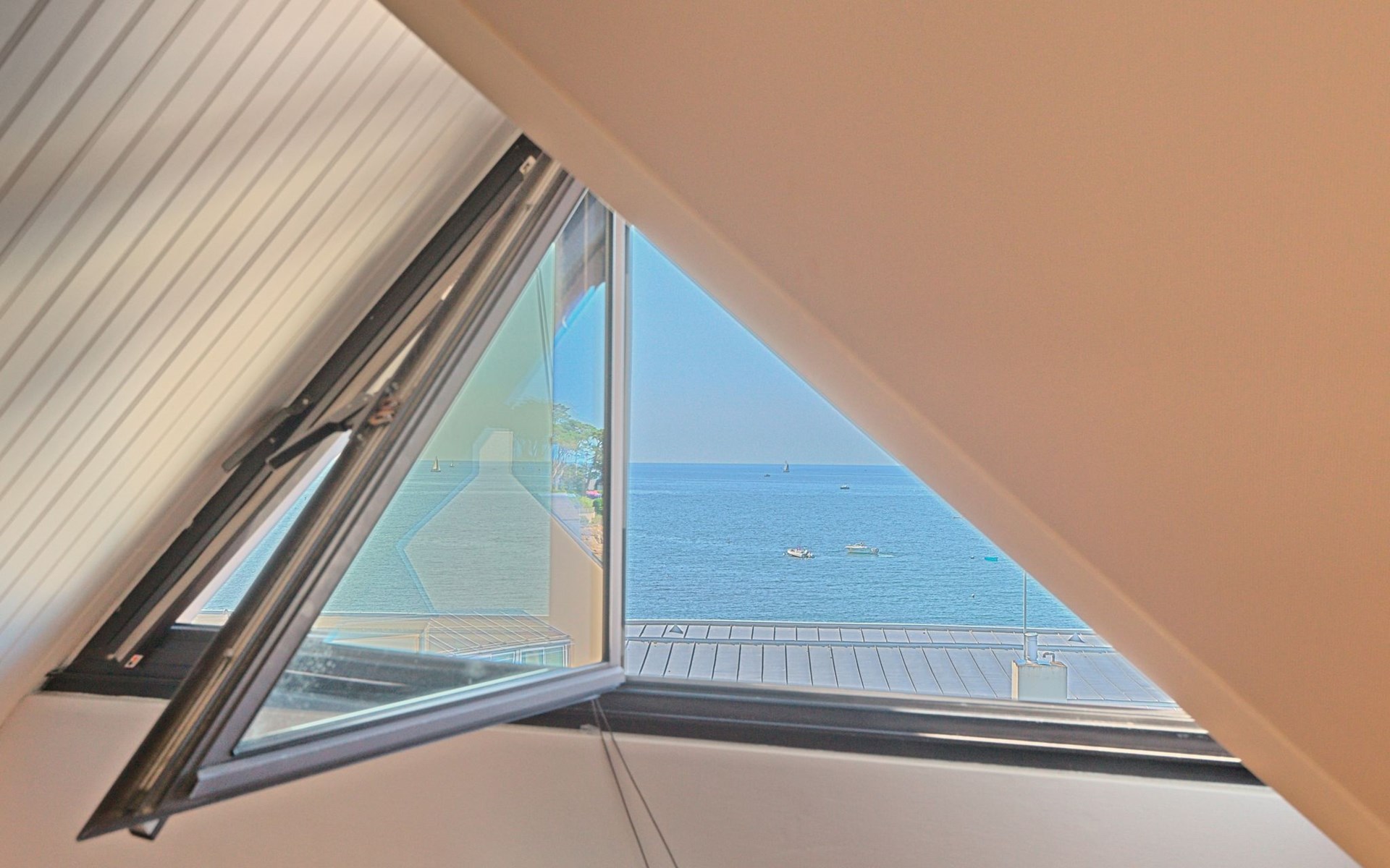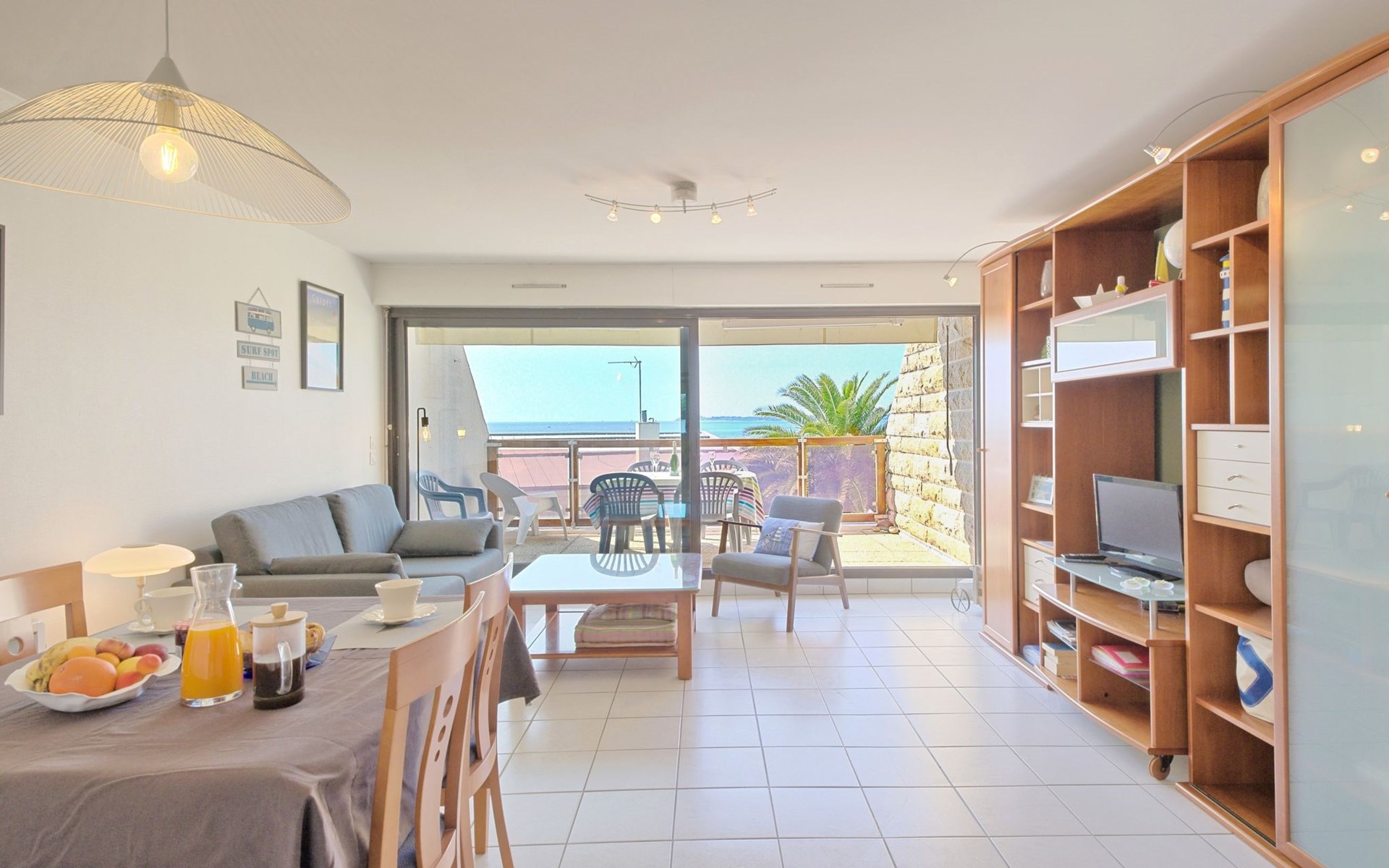 Appartementhaus "Belle Vue Mer et Groix", auf 3 Stockwerken. 8 Wohnungen in der Residenz. Im Ortsteil LOMENER, 5 km vom Zentrum von Ploemeur, 12 km vom Zentrum von Lorient, 30 m vom Meer. Im Hause: Einstellraum für Fahrräder. Parkplatz. Supermarkt, Restaurant 100 m, Bushaltestelle 5 km, Sandstrand 30 m. Jacht-Hafen 100 m, Golfplatz (18 Loch) 5 km.