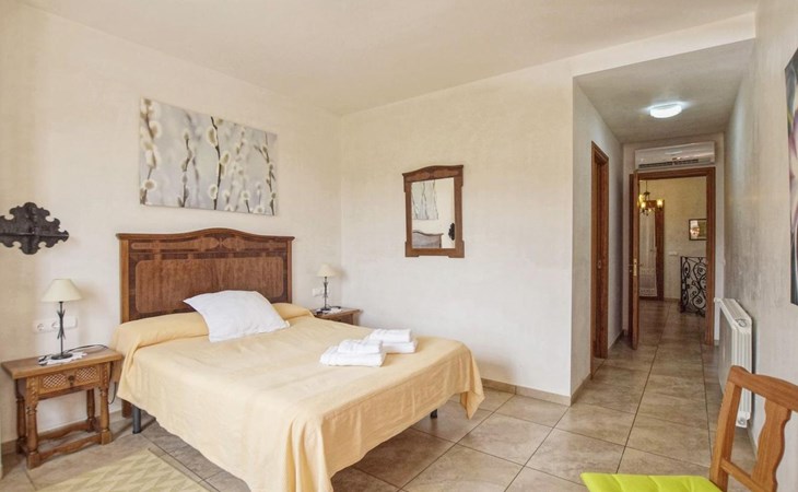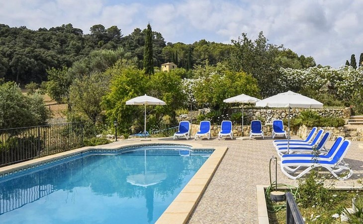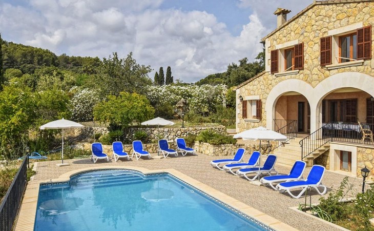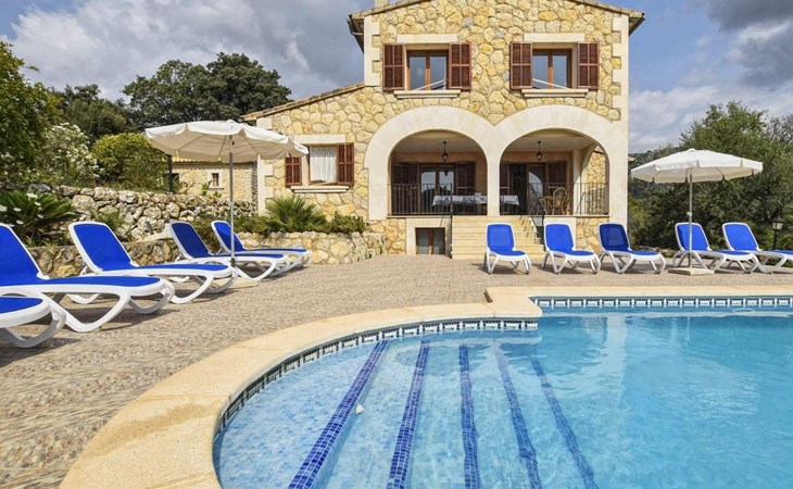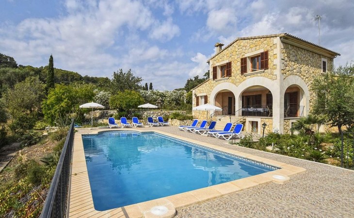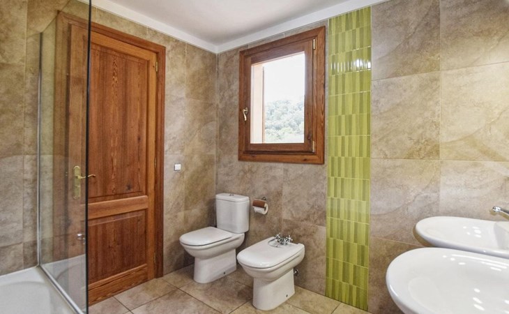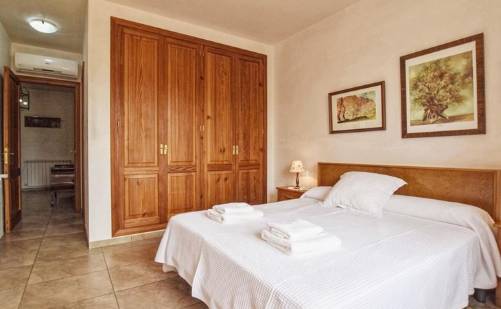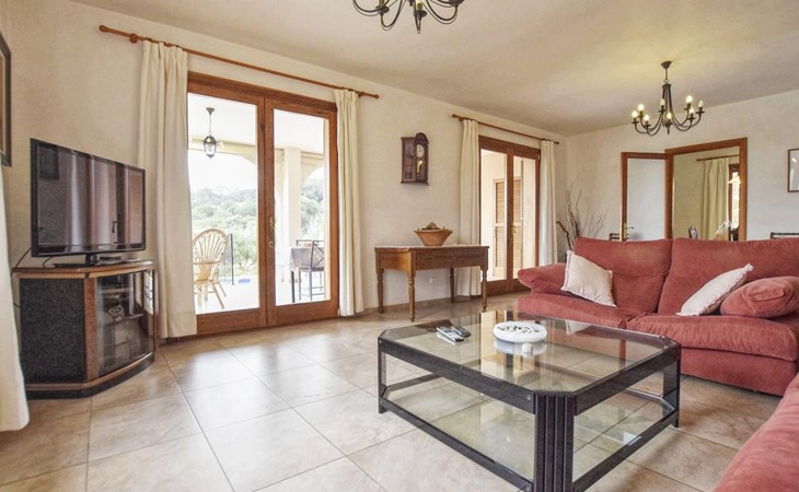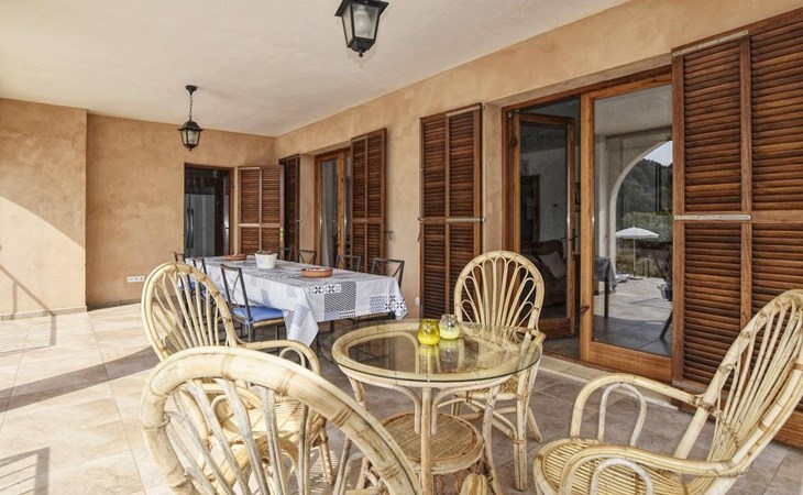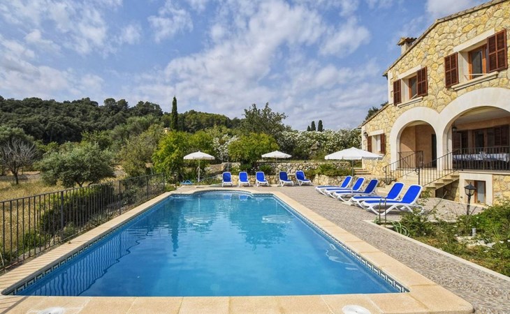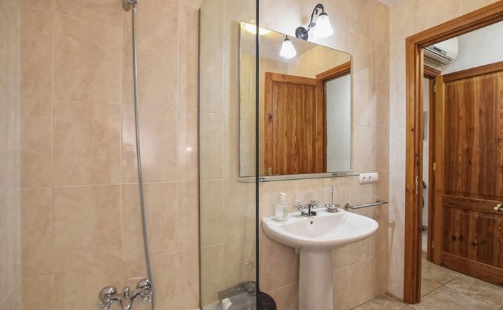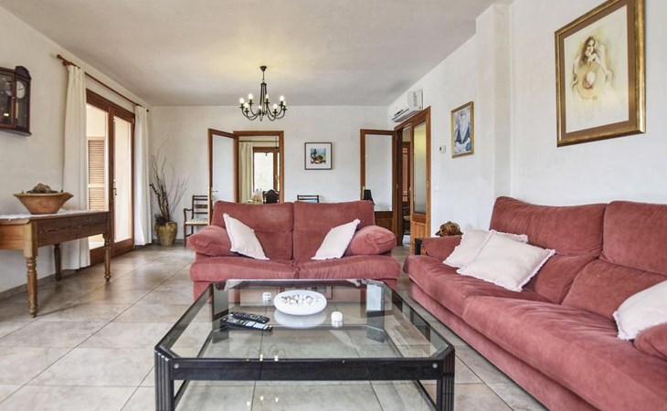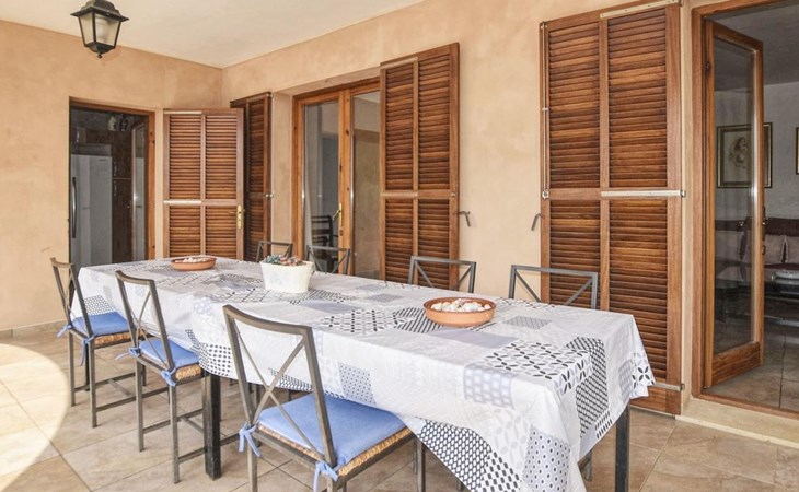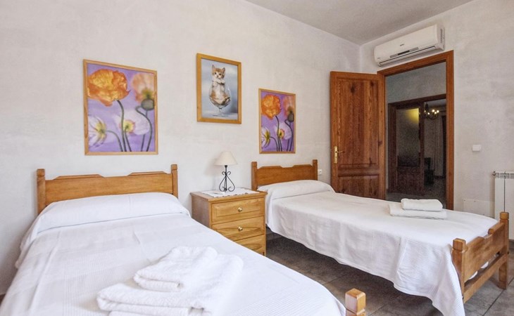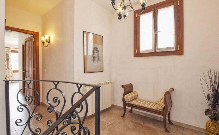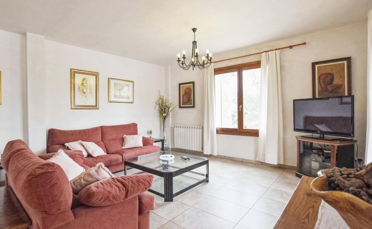Campanet: Grosses, rustikales, komfortables Haus "Pla de Ses Rotes", Baujahr 2008, umgeben von Bäumen und Feldern. Im Ort Campanet, ruhige Lage, 18 km vom Meer, im Grünen. Zur Alleinbenutzung: Liegewiese 2'000 m2, wunderschöner Garten zum Entspannen, Schwimmbad eckig (10 x 5 m, saisonale Verfügbarkeit: 01.Mar. - 30.Okt.). Aussendusche, Sitzplatz, Pergola, Gartenmöbel, Grill. Im Hause: Internetzugang, Wireless LAN, Klimaanlage, Waschmaschine. Parkplatz auf dem Grundstück. Einkaufsgeschäft 1.3 km, Lebensmittelgeschäft 1.3 km, Supermarkt 1.3 km, Restaurant 1.3 km, Bushaltestelle 450 m, Sandstrand 18 km. Bitte beachten: Fahrzeug empfohlen. Geeignet für Familien, geeignet für Senioren Babyausstattung auf Anfrage (inkl.). Objekt geeignet für 11 Erwachsene. Der Besitzer akzeptiert keine Jugendgruppen. Be- und Entladen am Ferienhaus möglich. Flugplatz 45 km vom Haus.