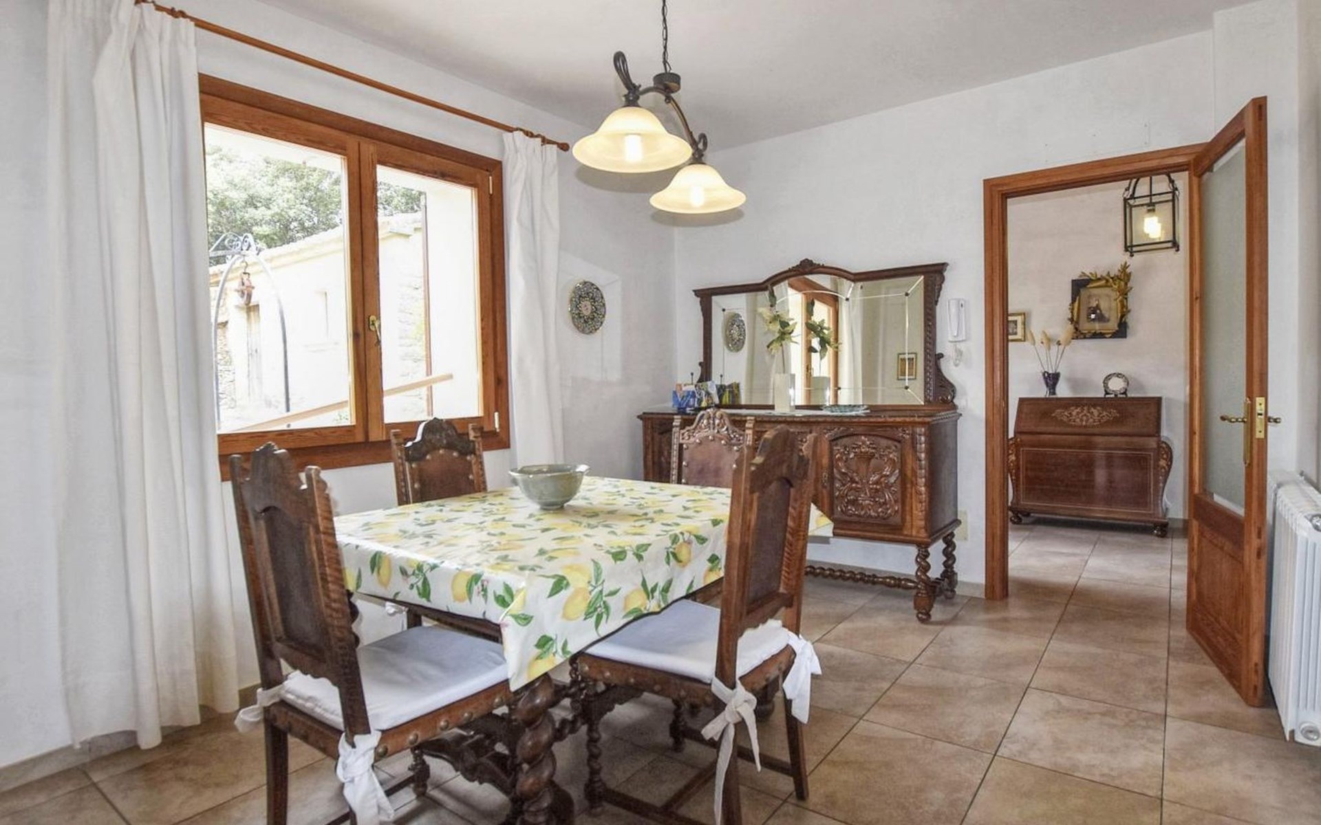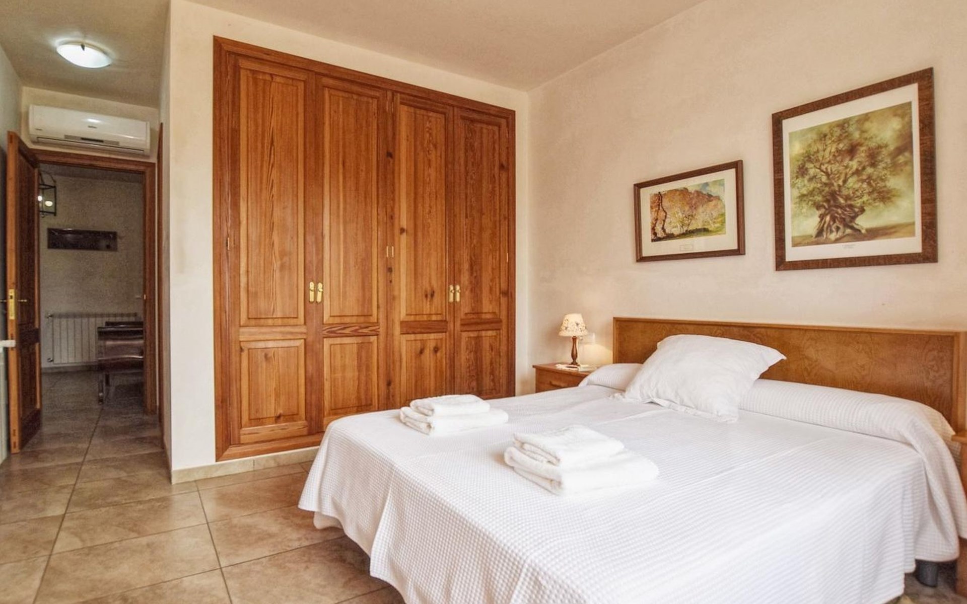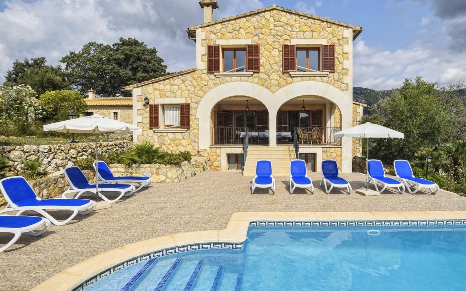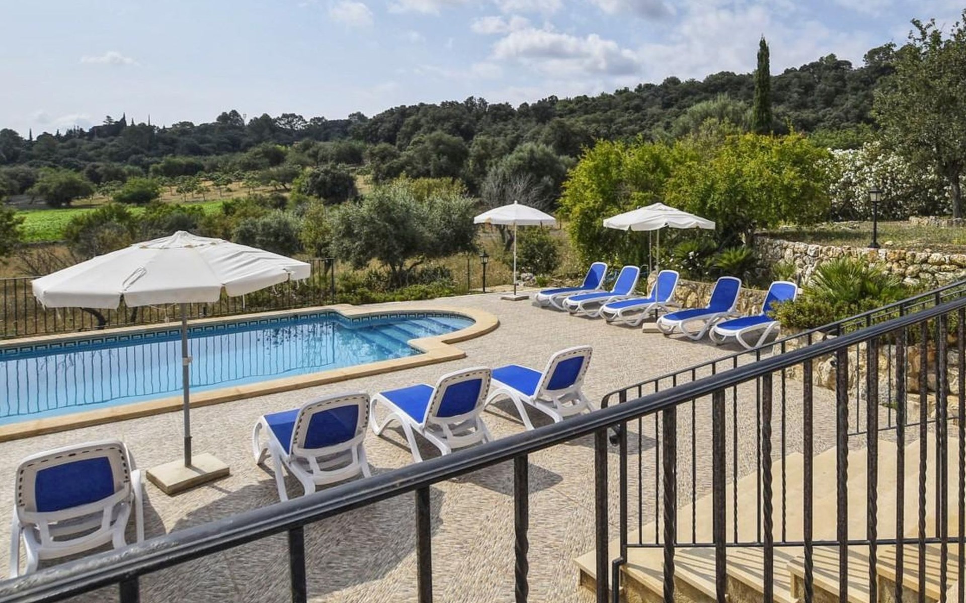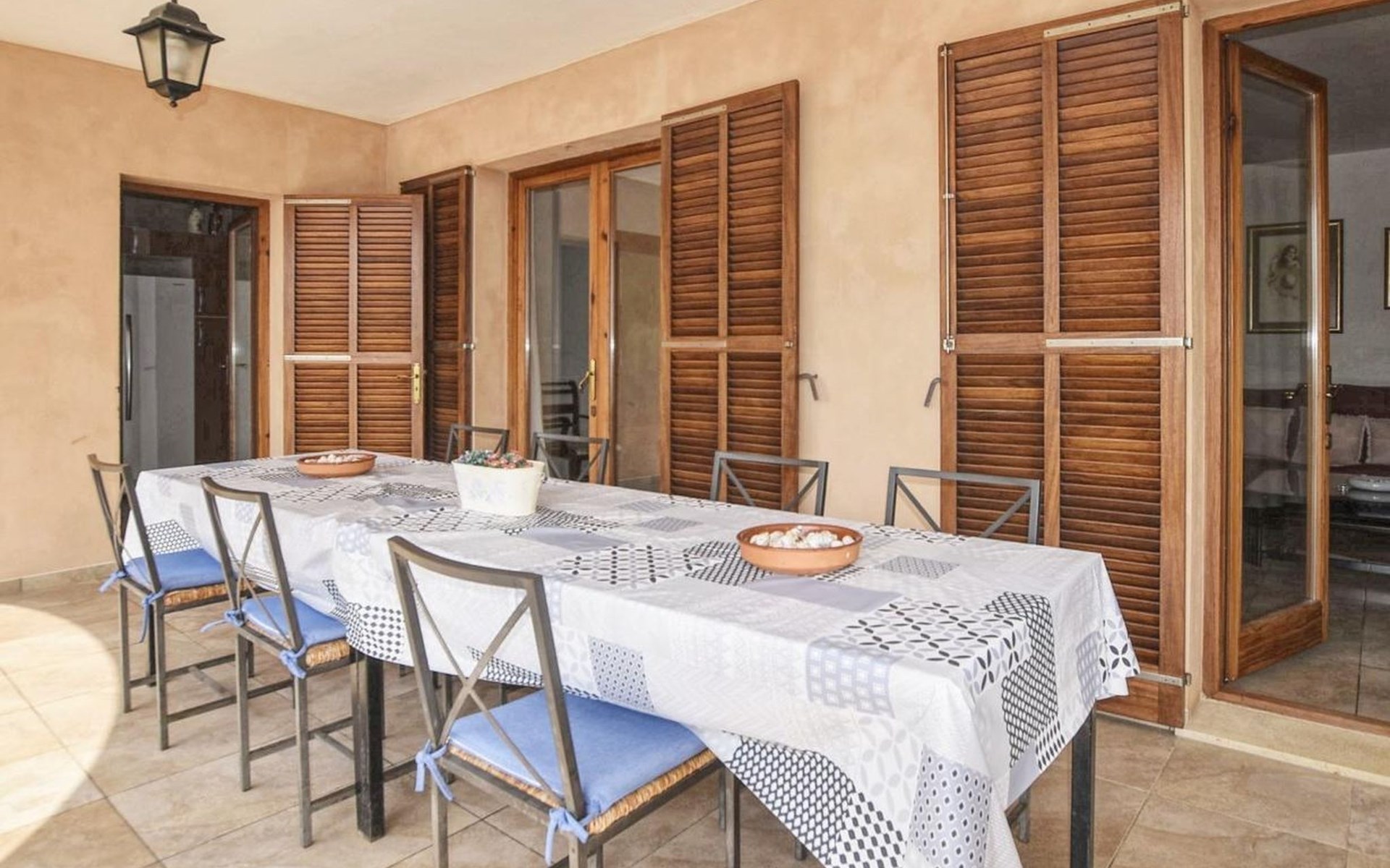 Campanet: Grosses, rustikales, komfortables Haus "Pla de Ses Rotes", Baujahr 2008, umgeben von Bäumen und Feldern. Im Ort Campanet, ruhige Lage, 18 km vom Meer, im Grünen. Zur Alleinbenutzung: Liegewiese 2'000 m2, wunderschöner Garten zum Entspannen, Schwimmbad eckig (10 x 5 m, saisonale Verfügbarkeit: 01.Mar. - 30.Okt.). Aussendusche, Sitzplatz, Pergola, Gartenmöbel, Grill. Im Hause: Internetzugang, Wireless LAN, Klimaanlage, Waschmaschine. Parkplatz auf dem Grundstück. Einkaufsgeschäft 1.3 km, Lebensmittelgeschäft 1.3 km, Supermarkt 1.3 km, Restaurant 1.3 km, Bushaltestelle 450 m, Sandstrand 18 km. Bitte beachten: Fahrzeug empfohlen. Geeignet für Familien, geeignet für Senioren Babyausstattung auf Anfrage (inkl.). Objekt geeignet für 11 Erwachsene. Der Besitzer akzeptiert keine Jugendgruppen. Be- und Entladen am Ferienhaus möglich. Flugplatz 45 km vom Haus.