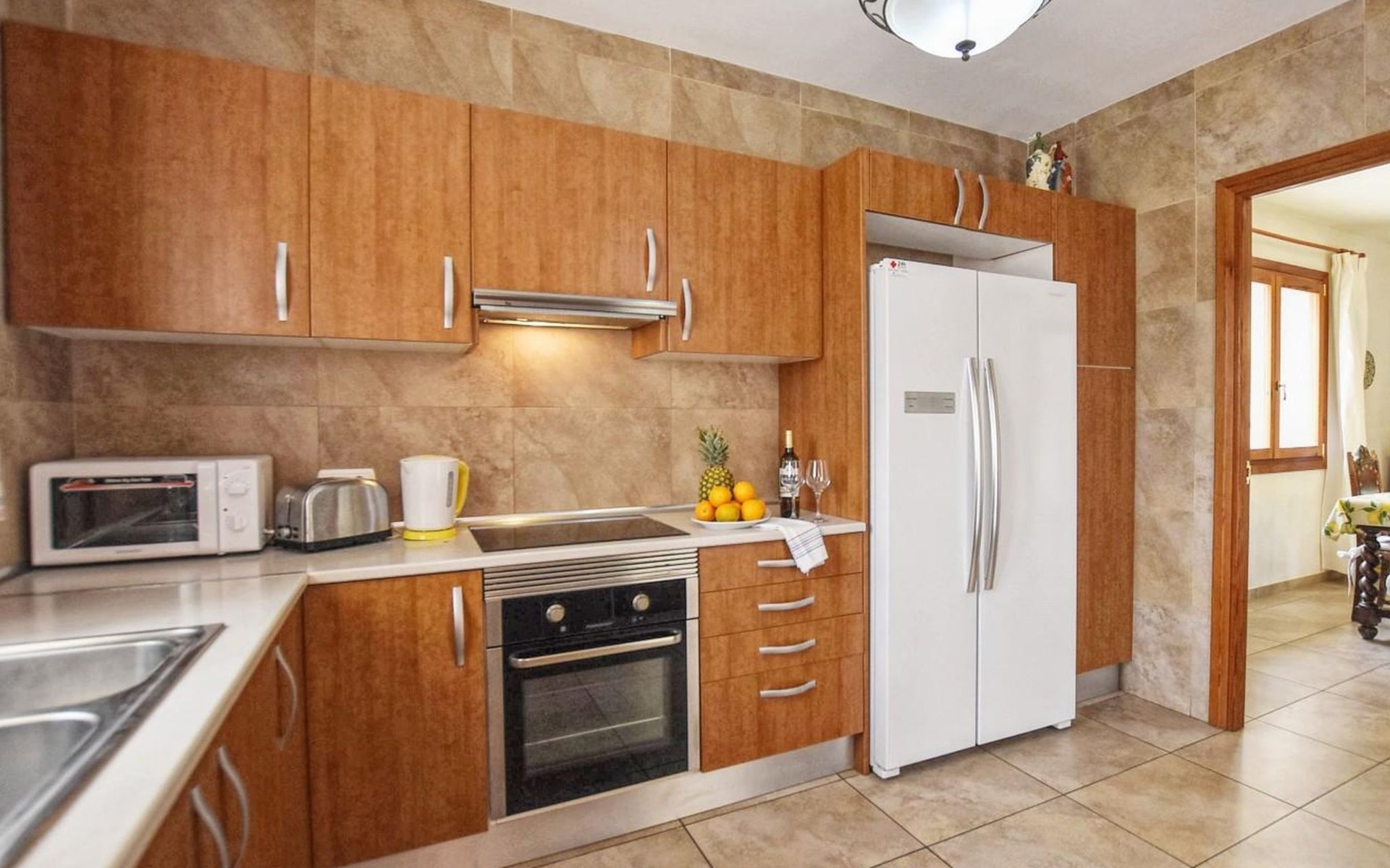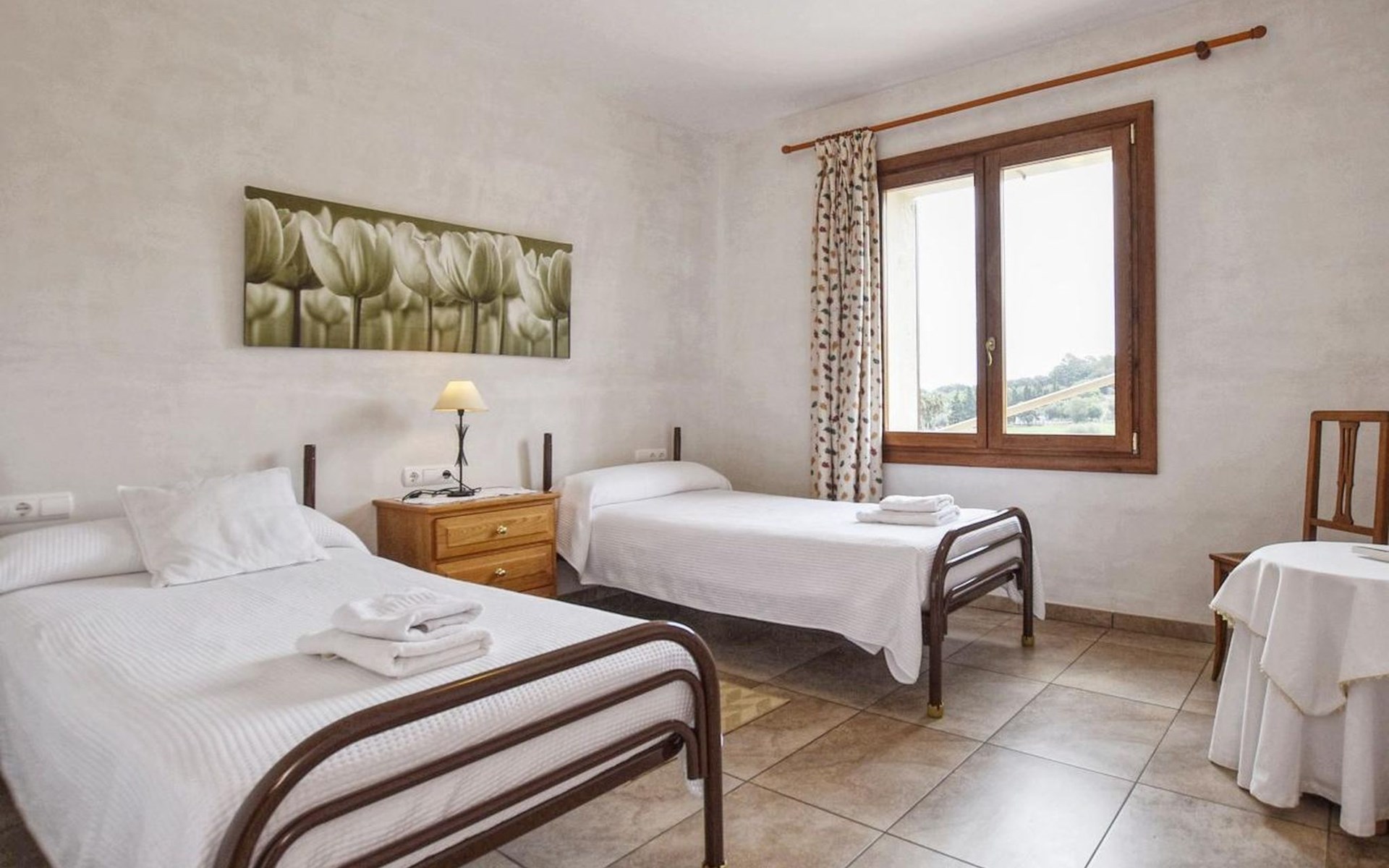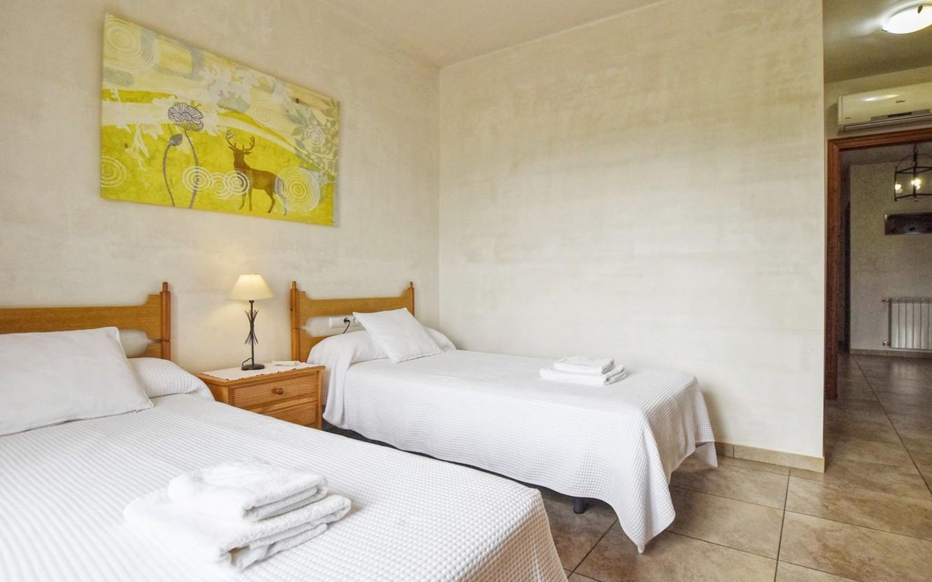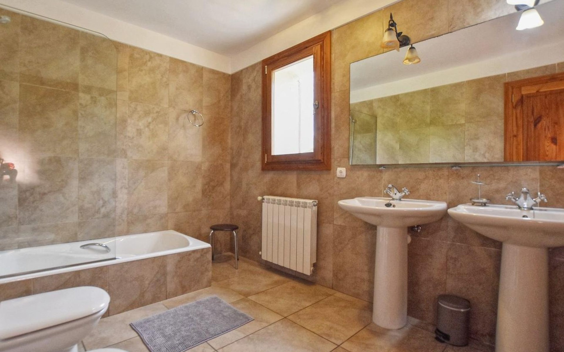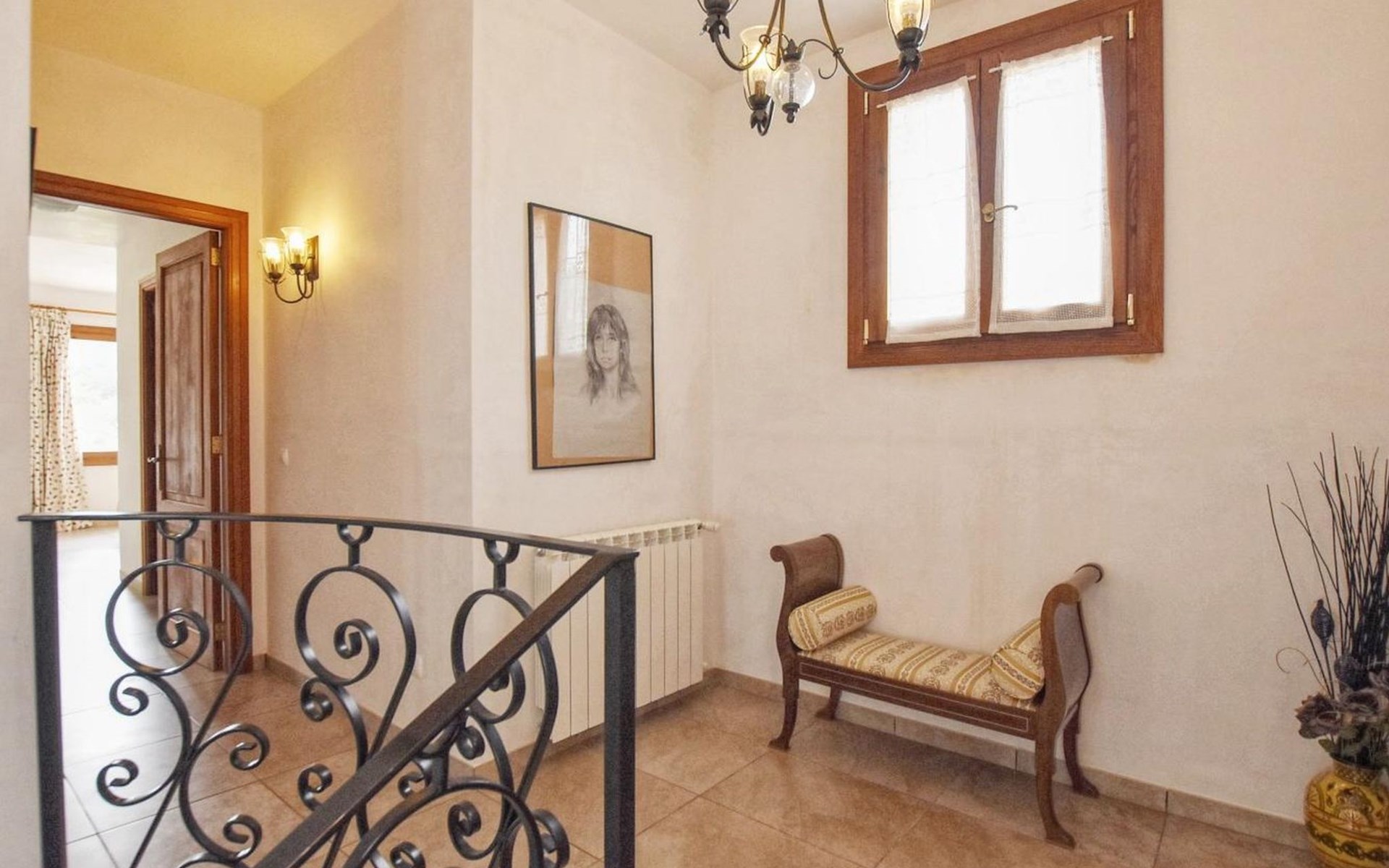 Campanet: Grosses, rustikales, komfortables Haus "Pla de Ses Rotes", Baujahr 2008, umgeben von Bäumen und Feldern. Im Ort Campanet, ruhige Lage, 18 km vom Meer, im Grünen. Zur Alleinbenutzung: Liegewiese 2'000 m2, wunderschöner Garten zum Entspannen, Schwimmbad eckig (10 x 5 m, saisonale Verfügbarkeit: 01.Mar. - 30.Okt.). Aussendusche, Sitzplatz, Pergola, Gartenmöbel, Grill. Im Hause: Internetzugang, Wireless LAN, Klimaanlage, Waschmaschine. Parkplatz auf dem Grundstück. Einkaufsgeschäft 1.3 km, Lebensmittelgeschäft 1.3 km, Supermarkt 1.3 km, Restaurant 1.3 km, Bushaltestelle 450 m, Sandstrand 18 km. Bitte beachten: Fahrzeug empfohlen. Geeignet für Familien, geeignet für Senioren Babyausstattung auf Anfrage (inkl.). Objekt geeignet für 11 Erwachsene. Der Besitzer akzeptiert keine Jugendgruppen. Be- und Entladen am Ferienhaus möglich. Flugplatz 45 km vom Haus.