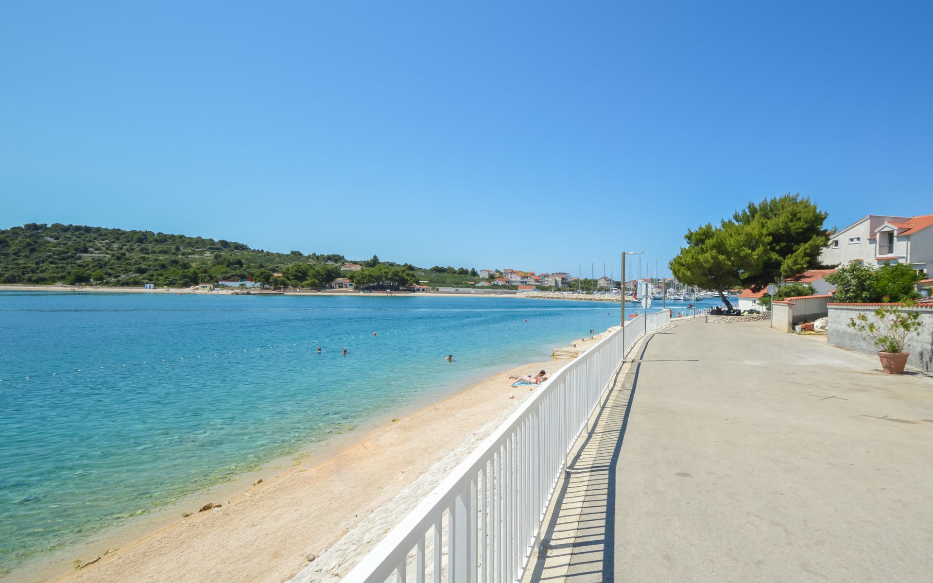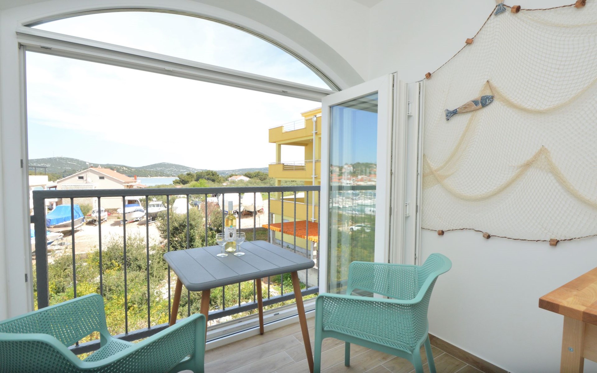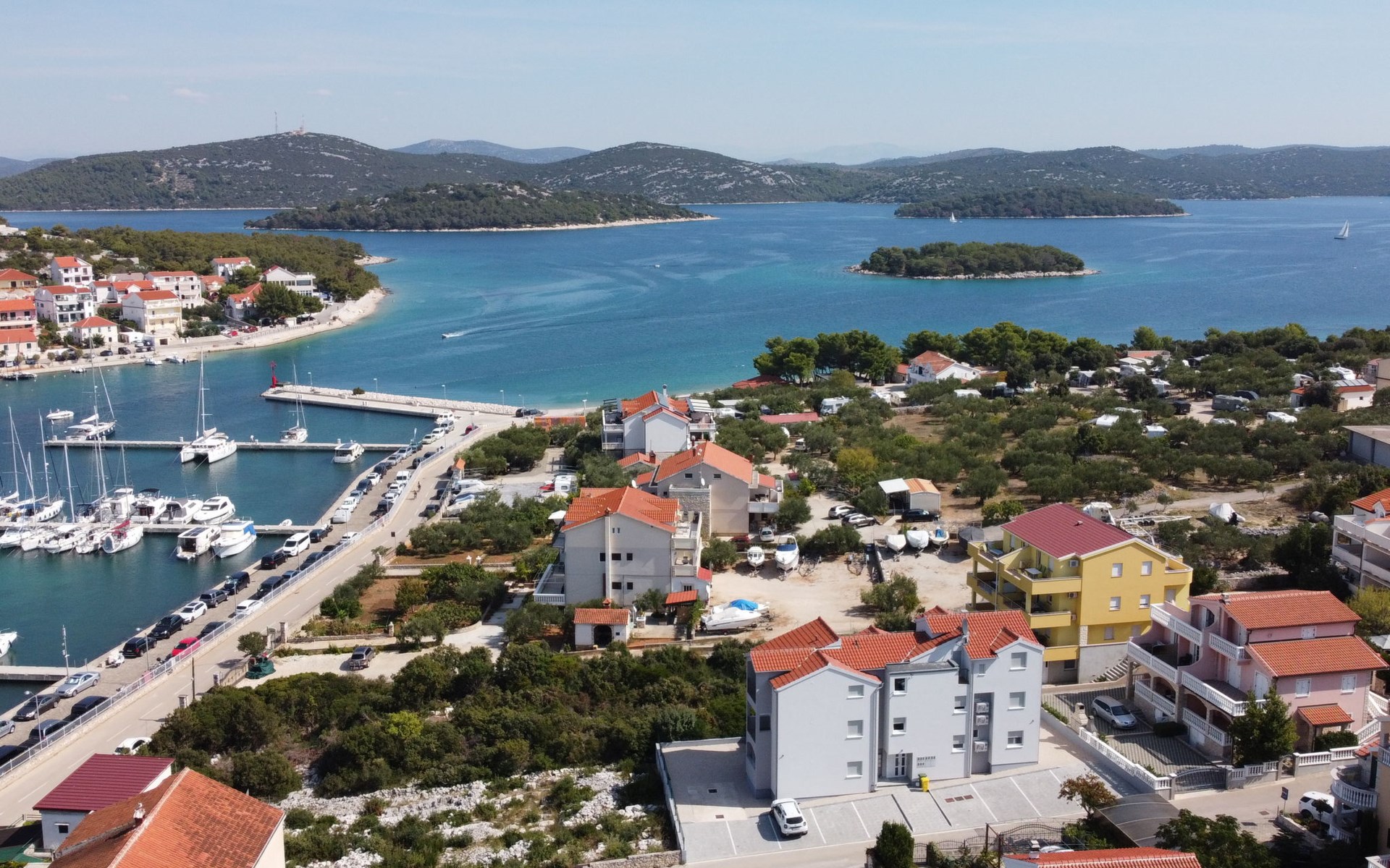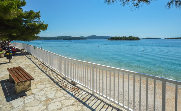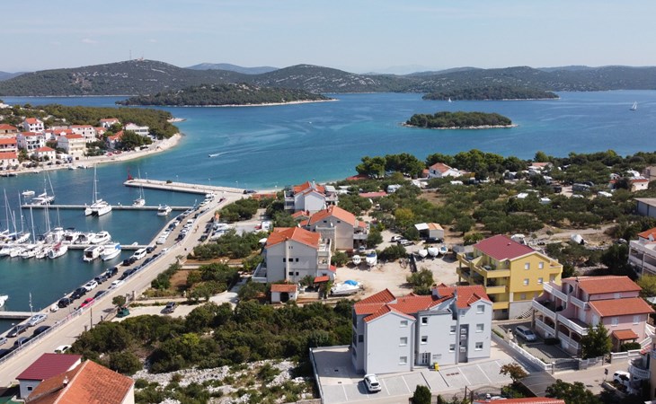Mehrfamilienhaus "Anna", Baujahr 2021. 250 m vom Zentrum von Jezera, 2.5 km vom Zentrum von Tisno, ruhige, sonnige Lage, 80 m vom Meer, 280 m vom Strand. Im Hause: Internetzugang. Parkplatz beim Haus. Einkaufsgeschäft 800 m, Restaurant 300 m, Bushaltestelle 9.4 km, Kieselstrand 280 m, Tauchzentrum 400 m. Jacht-Hafen 80 m, Reitstall 2 km.