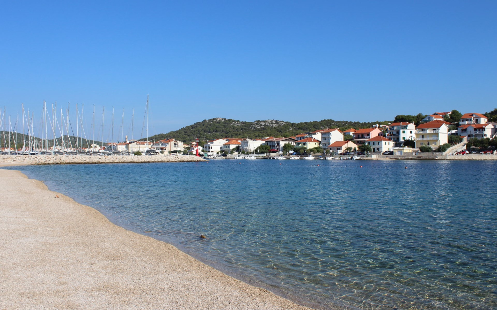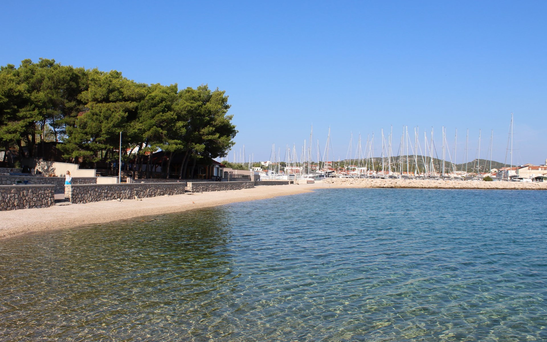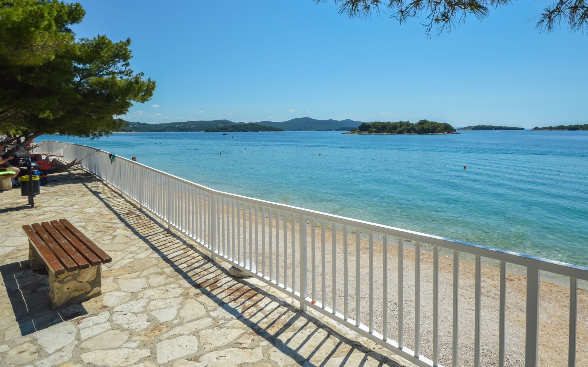 Mehrfamilienhaus "Anna", Baujahr 2021. 250 m vom Zentrum von Jezera, 2.5 km vom Zentrum von Tisno, ruhige, sonnige Lage, 80 m vom Meer, 280 m vom Strand. Im Hause: Internetzugang. Parkplatz beim Haus. Einkaufsgeschäft 800 m, Restaurant 300 m, Bushaltestelle 9.4 km, Kieselstrand 280 m, Tauchzentrum 400 m. Jacht-Hafen 80 m, Reitstall 2 km.