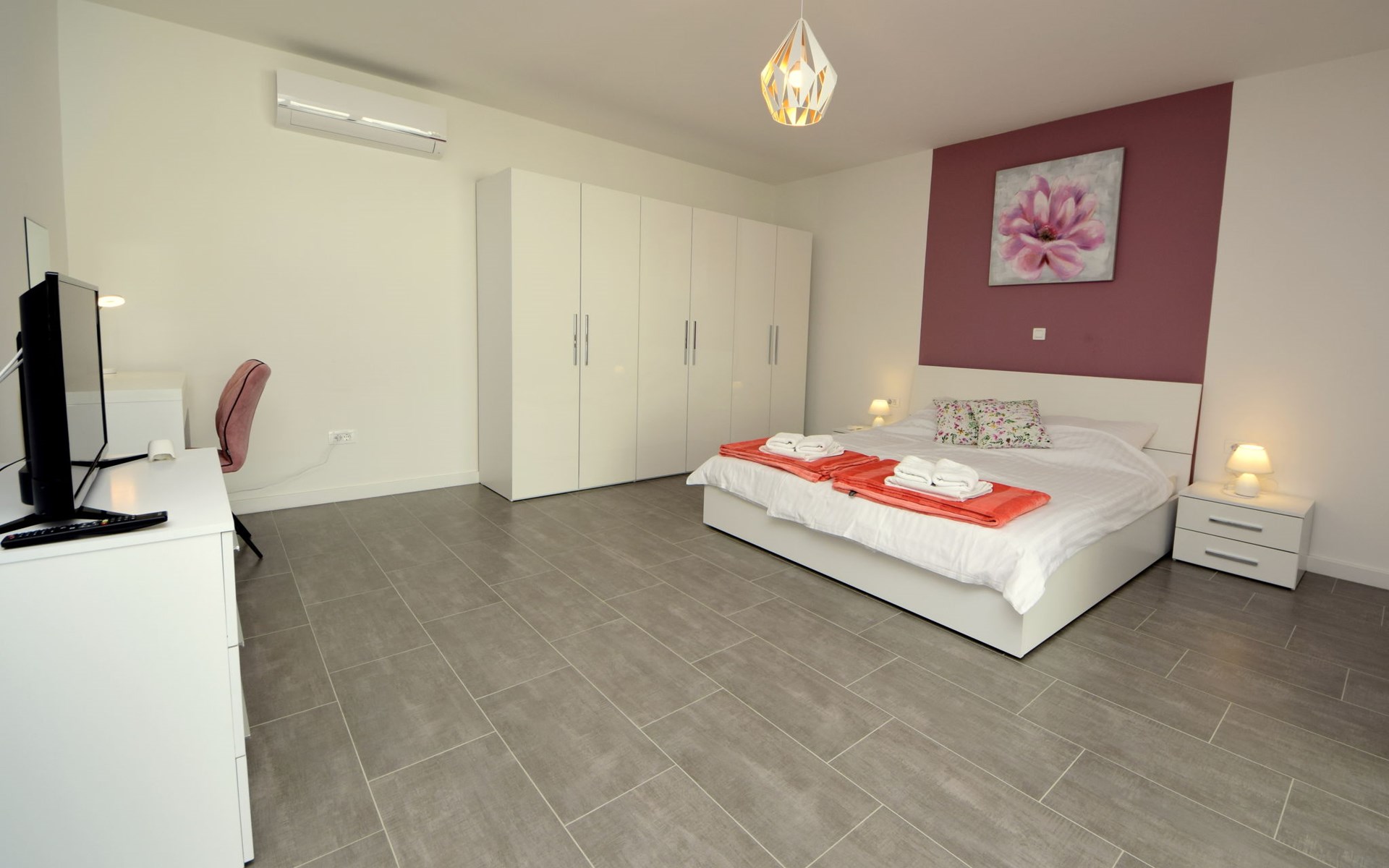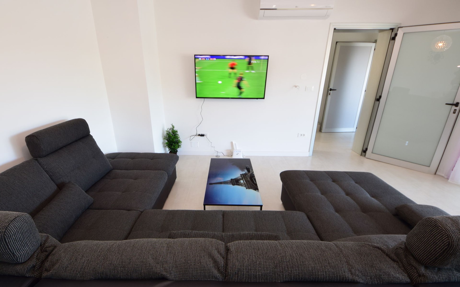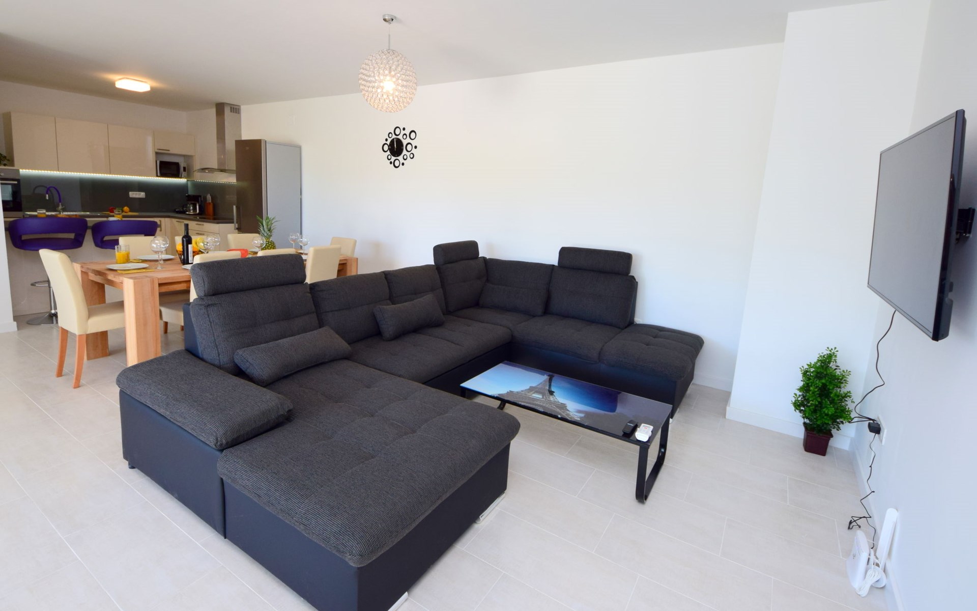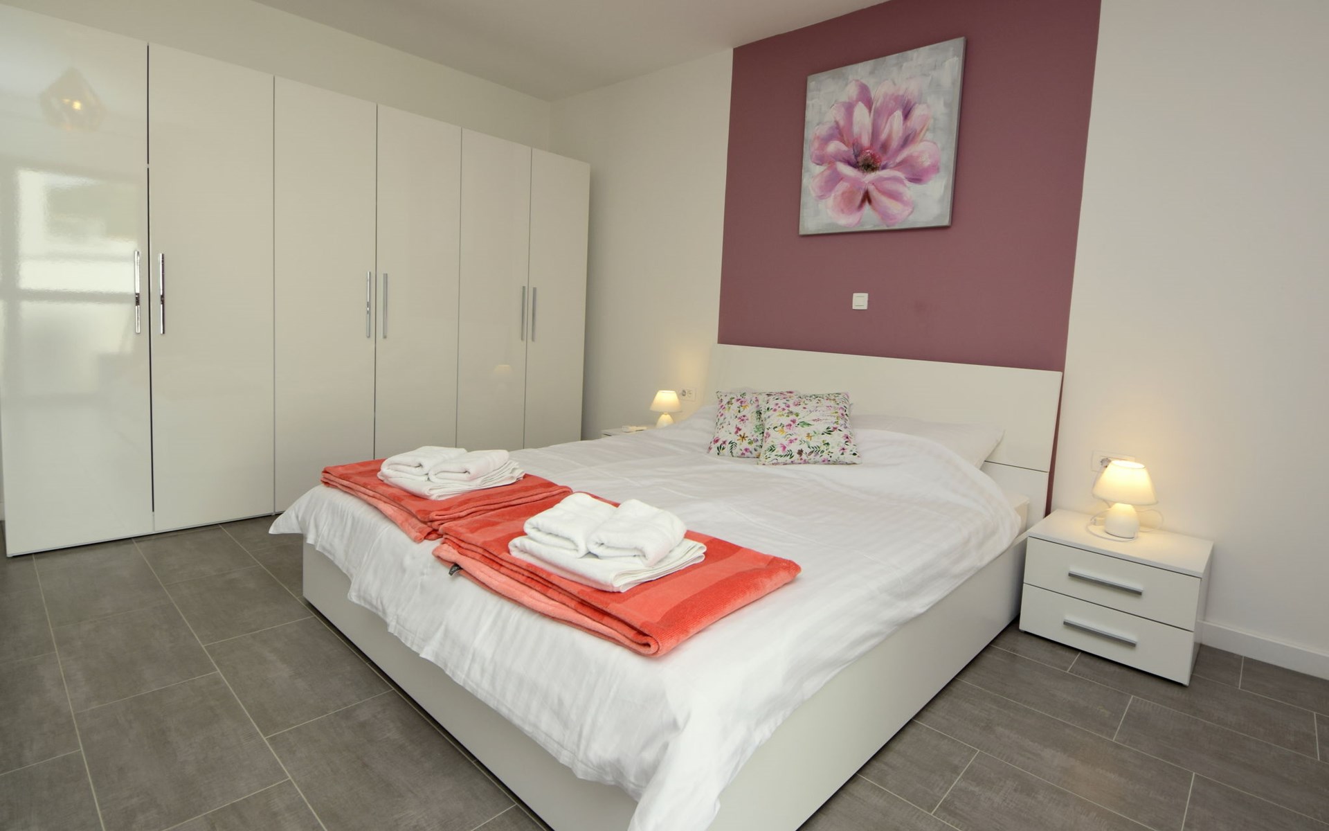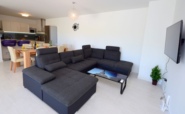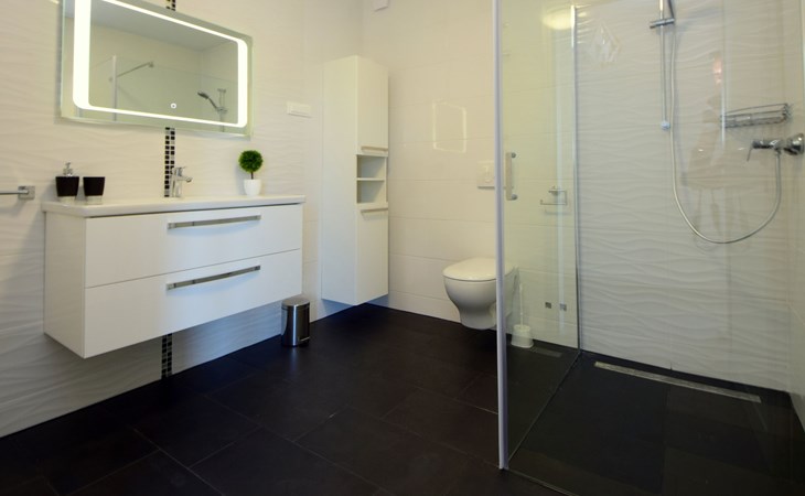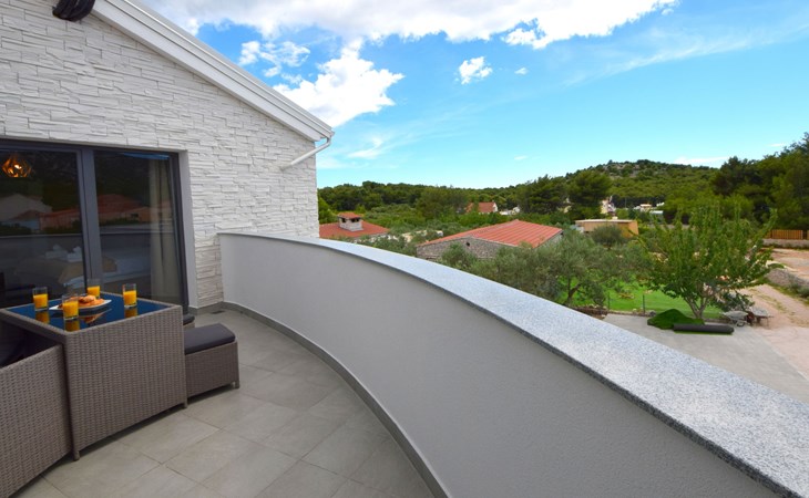 Tribunj 5 km von Vodice: Doppelhaus "West", auf 2 Stockwerken, Baujahr 2018. Im Weiler Sovlje, 1.5 km vom Zentrum von Tribunj, ruhige, sonnige Lage, 250 m vom Meer, 450 m vom Strand. Zur Mitbenutzung: Grundstück 400 m2. Gartenmöbel, Grill, Kinderspielplatz (Rutschbahn, Schaukel). Zur Alleinbenutzung: Schwimmbad beheizt (20 m2, 150 cm tief, saisonale Verfügbarkeit: 01.Mai. - 31.Okt.) mit Innentreppe. Ungleichmässige Schwimmbadform, WC im Poolbereich, Aussendusche. Im Hause: Internetzugang, Waschmaschine, Wäschetrockner. Koch möglich (extra). Parkplatz (für 3 Autos) beim Haus auf dem Grundstück. Einkaufsgeschäft 1 km, Restaurant 200 m, Bushaltestelle 5.2 km, Kieselstrand, betonierter Strand 450 m.