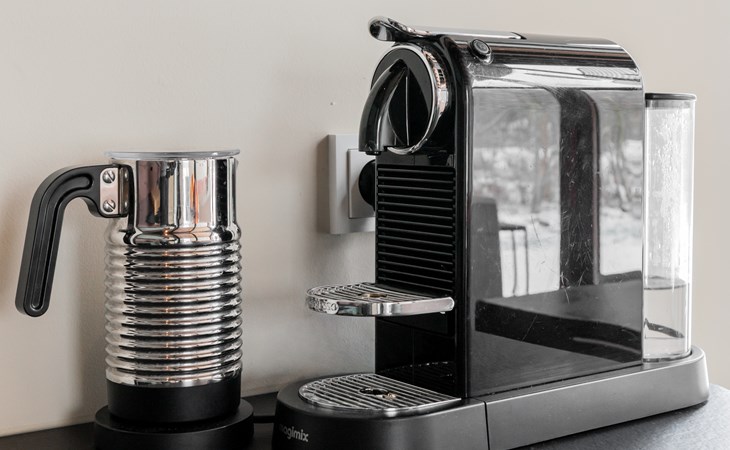 Die offene Küche ist modern und vollständig ausgestattet, unter anderem mit Induktionskochfeld, Quooker, Geschirrspüler, Backofen, Mikrowelle sowie einem geräumigen Kühlschrank mit Gefrierfach. Für Kaffeeliebhaber steht eine Nespresso-Maschine mit Milchaufschäumer bereit – perfekt für einen entspannten Start in den Tag.