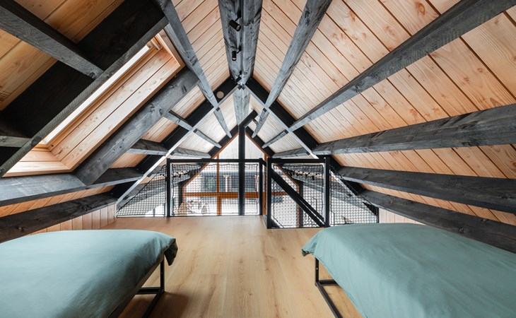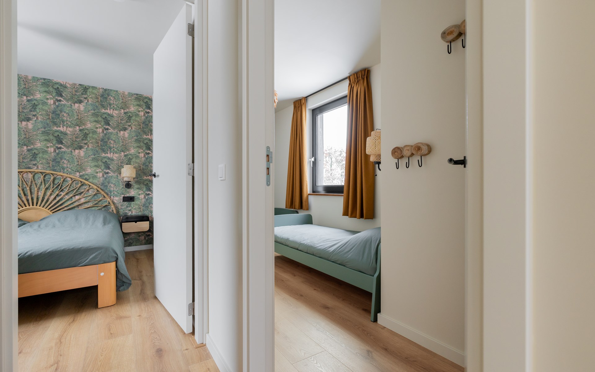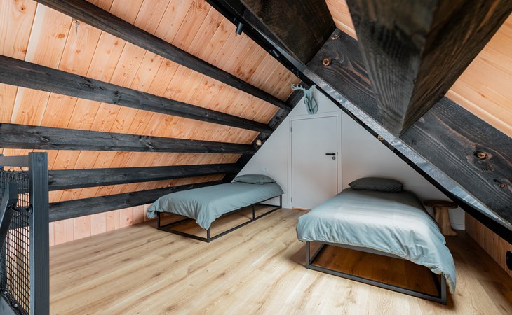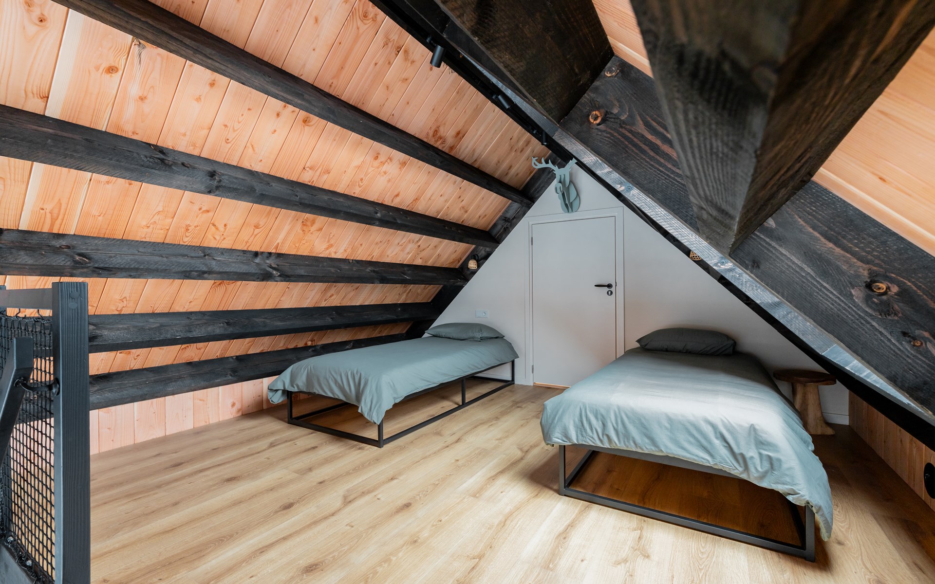 Das Haus verfügt über drei komfortable Schlafbereiche: zwei separate Schlafzimmer und eine Galerie mit zwei Einzelbetten (zu einem Doppelbett kombinierbar).