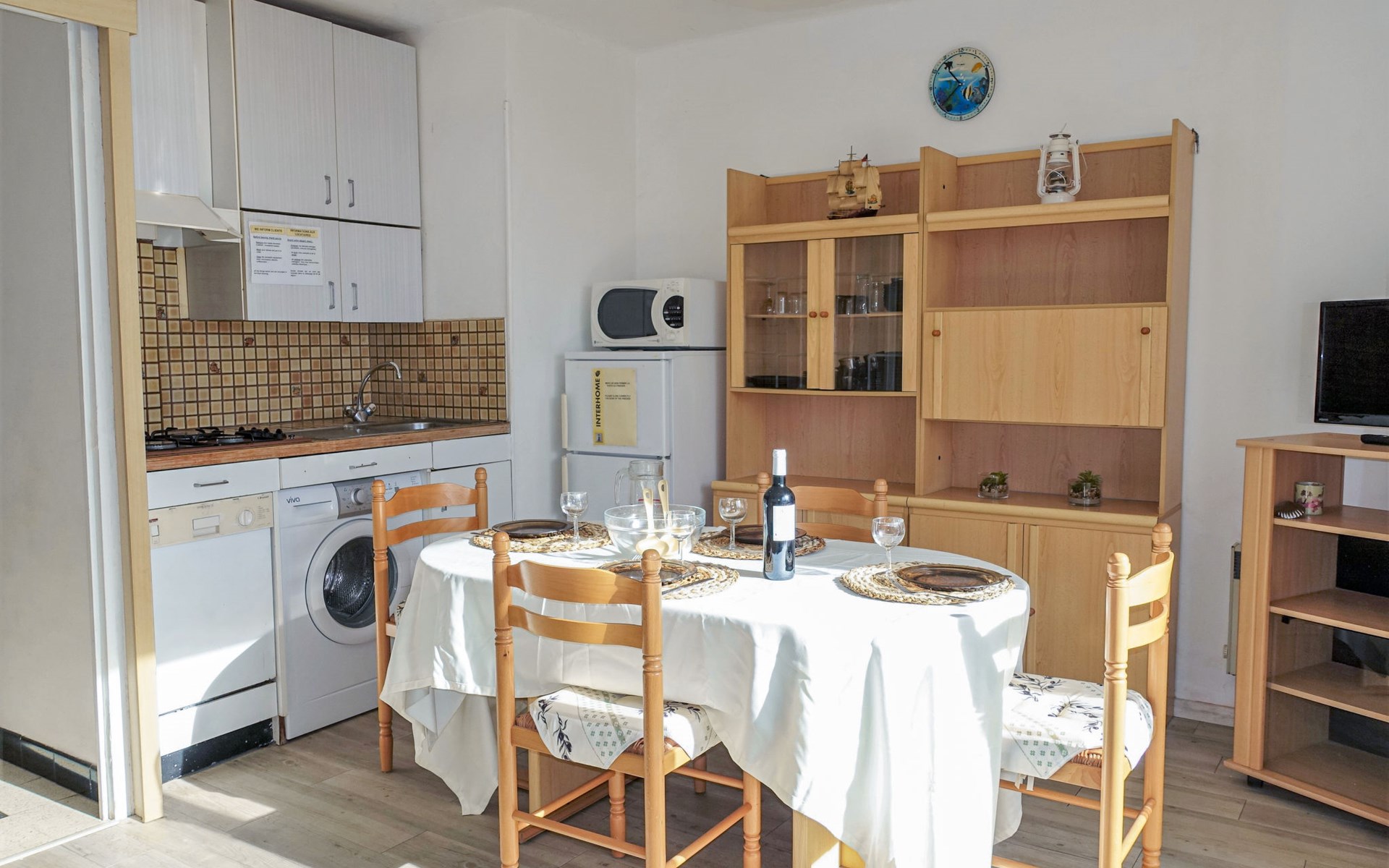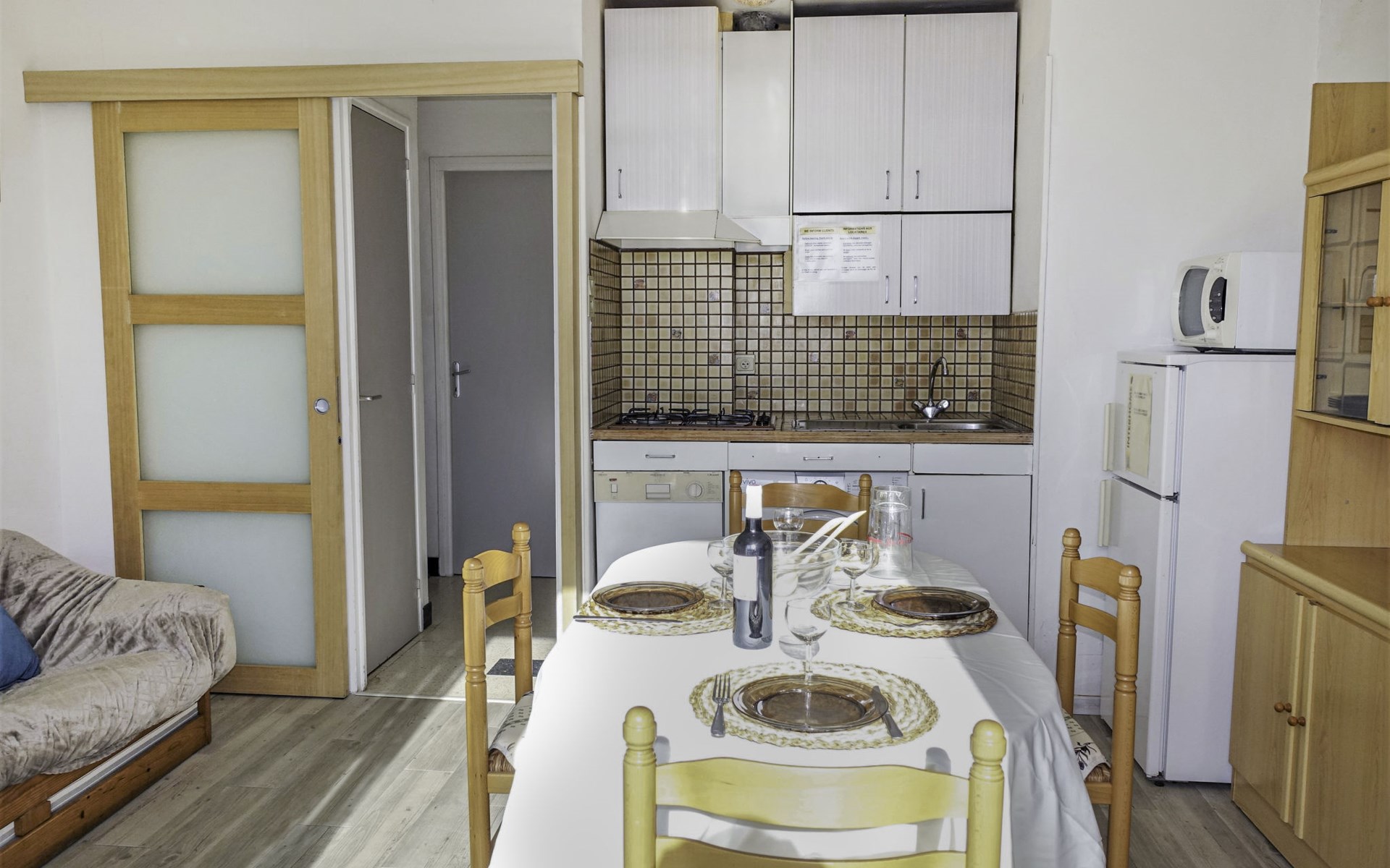 Doppelhaus "Corsaires 63", auf 2 Stockwerken. 500 m vom Zentrum von Saint Pierre La Mer, am Ortsrand Narbonne-Plage, 100 m vom Meer. Öffentliche Parkplätze auf der Strasse. Einkaufsgeschäft 100 m, Einkaufszentrum, Restaurant 200 m, Bar 100 m, Bushaltestelle, Tauchzentrum 200 m. Sporthafen 200 m, Reitstall 4.4 km. Nahe gelegene Sehenswürdigkeiten: Réserve Africaine de Sigean 36 km, Cité de Carcassonne 78 km, Espace balnéoludique de Gruissan 11 km. Die Schlüsselübergabe findet bei der Agentur Interhome in Narbonne plage statt, 3 km.