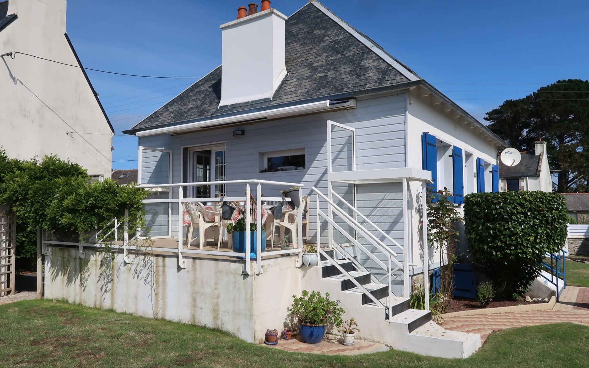 Lampaul-Plouarzel 6 km von Plouazel: Schönes, gemütliches Einfamilienhaus "La Glycine", auf 3 Stockwerken. Im Ort, 2.3 km vom Zentrum von Lampaul-Plouarzel, 15 km vom Zentrum von St. Rénan, ruhige Lage, 50 m vom Meer, 400 m vom Strand. Zur Alleinbenutzung: Grundstück 400 m2 (eingezäunt), gepflegter Garten Pflanzen und Blumen. Tischtennis, Parkplatz (für 2 Autos) auf dem Grundstück. Einkaufsgeschäft 15 km, Lebensmittelgeschäft 2.6 km, Supermarkt 7 km, Restaurant 3.2 km, Bäckerei 2.5 km, Bushaltestelle 2.7 km, Sandstrand "Plage de Pors Ar Marc'h" 400 m. Sporthafen 230 m, Golfplatz (18 Loch) 5.6 km, Surfschule 20 km, Segelschule 20 km, Wanderwege ab Haus 50 m. Nahe gelegene Sehenswürdigkeiten: Aber Ildut 300 m, Le Conquet 18 km, Pointe de St. Mathieu 20 km, Plougonvelin, Fort Berthaume 18 km, Oceanopolis, Brest 35 km, Lannilis, Pays des Abers 27 km. Wandergebiete: GR34, sentier des douaniers 50 m. Bitte beachten: Fahrzeug empfohlen.
