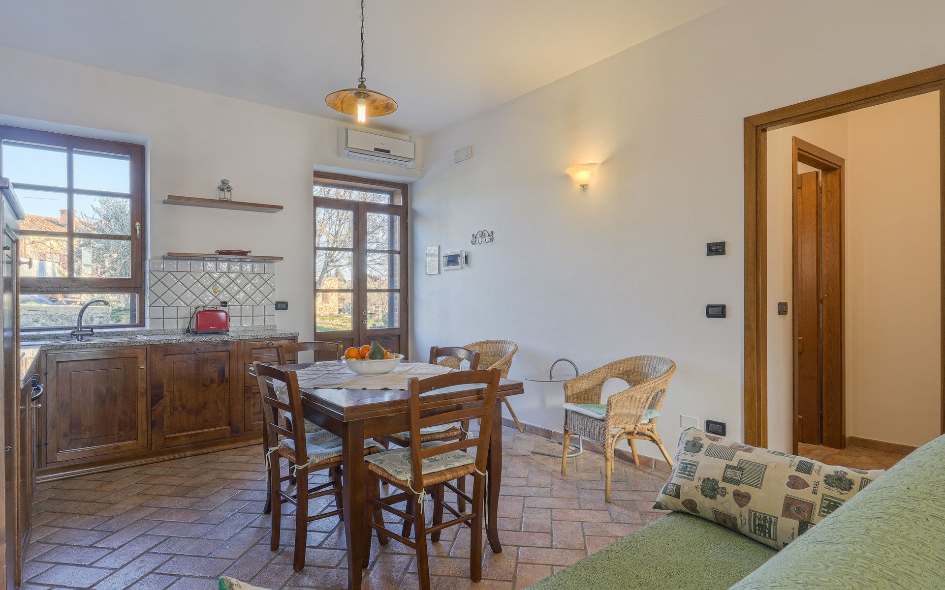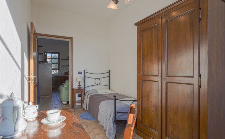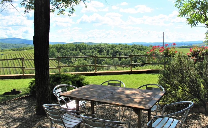 Landsitz "Cignanbianco", umgeben von Feldern und Weinbergen. 3 Häuser in der Residenz. 7 Wohnungen in der Residenz. 5 km vom Zentrum von Castellina in Chianti, 6 km vom Zentrum von Castellina Scalo, 27 km vom Zentrum von Siena, alleinstehende, sonnige Lage. Zur Mitbenutzung: Grundstück 30 ha mit Pflanzen und Bäumen, Naturgarten, Schwimmbad (12 x 6 m, saisonale Verfügbarkeit: 02.Mai. - 03.Okt.). Grill, Poolpflege durch den Besitzer/Gärtner. Im Hause: Waschmaschine (zur Mitbenutzung). 1 km lange Zufahrt (Naturweg). Parkplatz auf dem Grundstück. Einkaufsgeschäft 5 km, Lebensmittelgeschäft 5 km, Supermarkt 5 km, Restaurant 1.7 km, Fahrradverleih 5 km, Bushaltestelle "Castellina Scalo" 6 km, Bahnstation "Castellina Scalo" 6 km, Sandstrand "Cecina Mare" 83 km, Hallenbad 15 km. Nahe gelegene Sehenswürdigkeiten: Moneriggioni 10 km, San Gimignano 29 km, San Galgano 50 km, Volterra 52 km, Montalcino 65 km. Bitte beachten: Babyausstattung (inkl.). Jugendgruppen nur auf Anfrage. Ab Hof Verkauf von bäuerlichen Produkten. Der Besitzer wohnt auf dem gleichen Grundstück.
