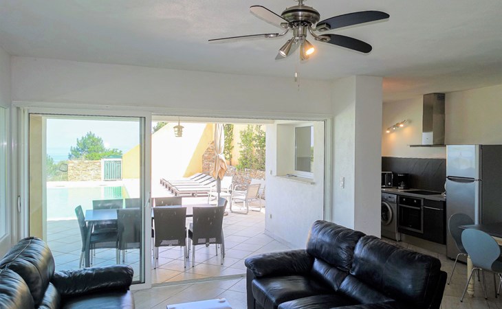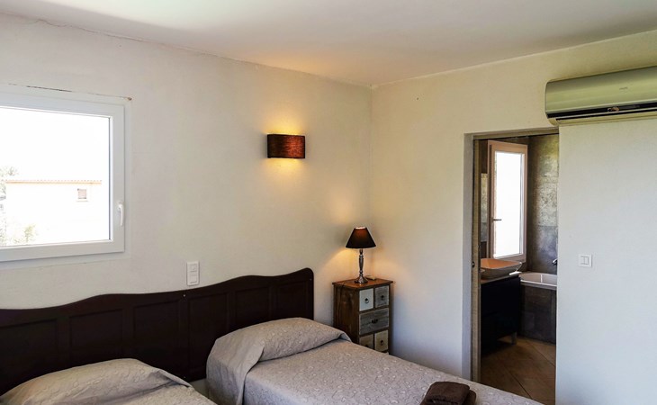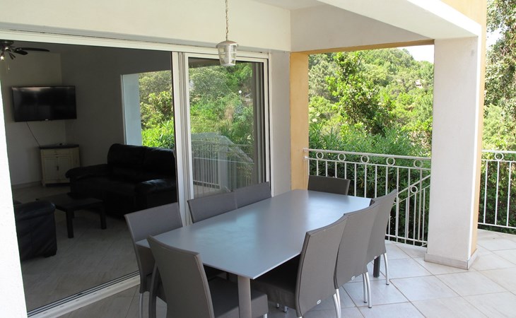Schöne Villa "Orizonte", umgeben von Bäumen. 8 km vom Zentrum von Solenzara, 33 km vom Zentrum von Porto-Vecchio, 105 km vom Zentrum von Bastia, sonnige Lage am Hang, 300 m vom Meer, 300 m vom Strand, direkter Zugang zum Strand, im Grünen. Zur Mitbenutzung: naturbelassenes Grundstück, terrassierter Garten. Zur Alleinbenutzung: Schwimmbad eckig (8 x 4 m, saisonale Verfügbarkeit: 08.Apr. - 28.Okt.). Dusche/WC im Poolbereich. Brötchenservice und Frühstück möglich (extra). Parkplatz beim Haus auf dem Grundstück. Einkaufsgeschäft 1.5 km, Supermarkt 8 km, Bushaltestelle 9 km, Sandstrand "Baie de Canella" 900 m, Felsstrand 300 m. Sporthafen 8 km. Nahe gelegene Sehenswürdigkeiten: Favone 2 km, Fautea 10 km, Bonifacio 58 km. Wandergebiete: GR20 8 km, Aiguilles de Bavella 39 km. Bitte beachten: Fahrzeug empfohlen.