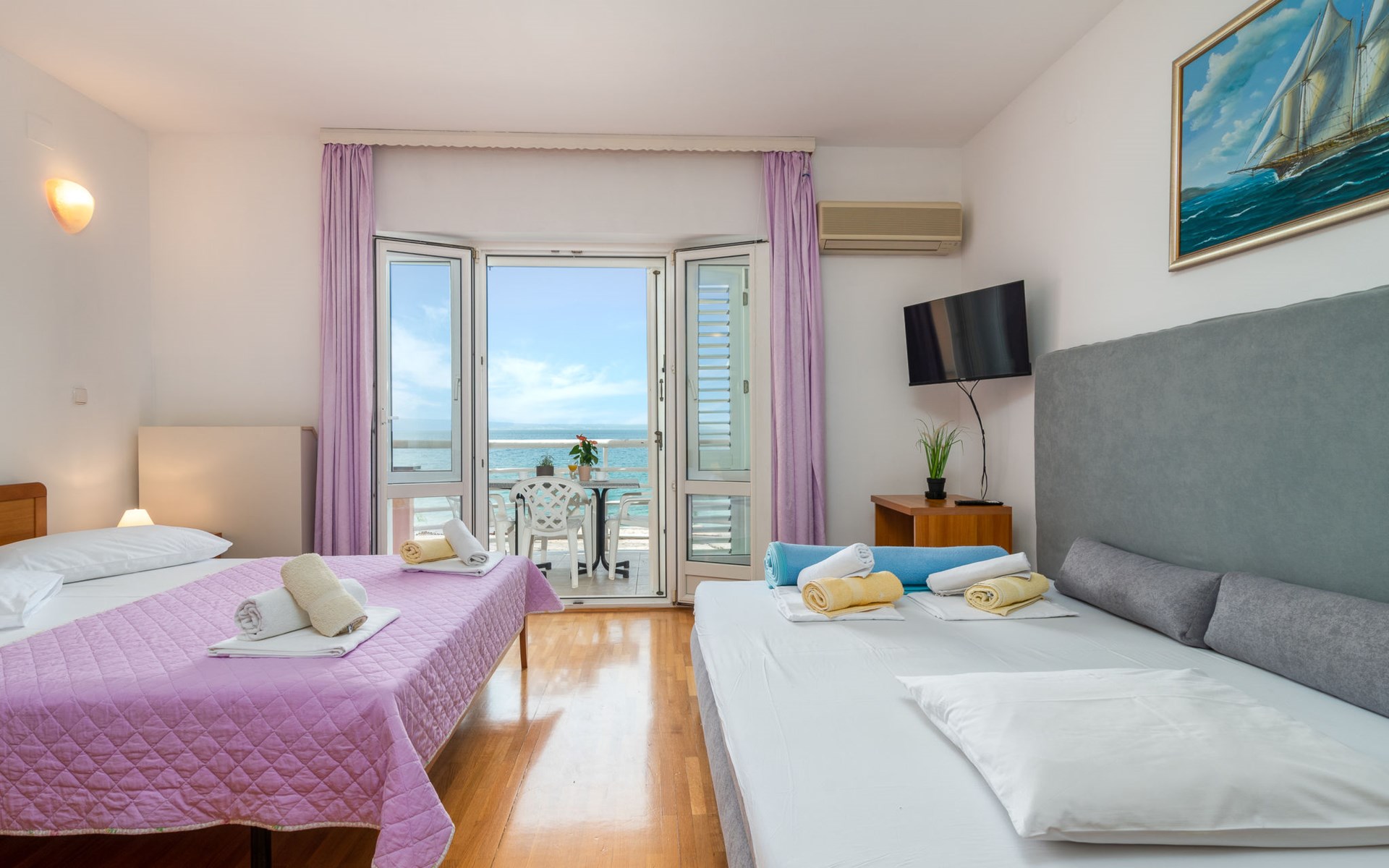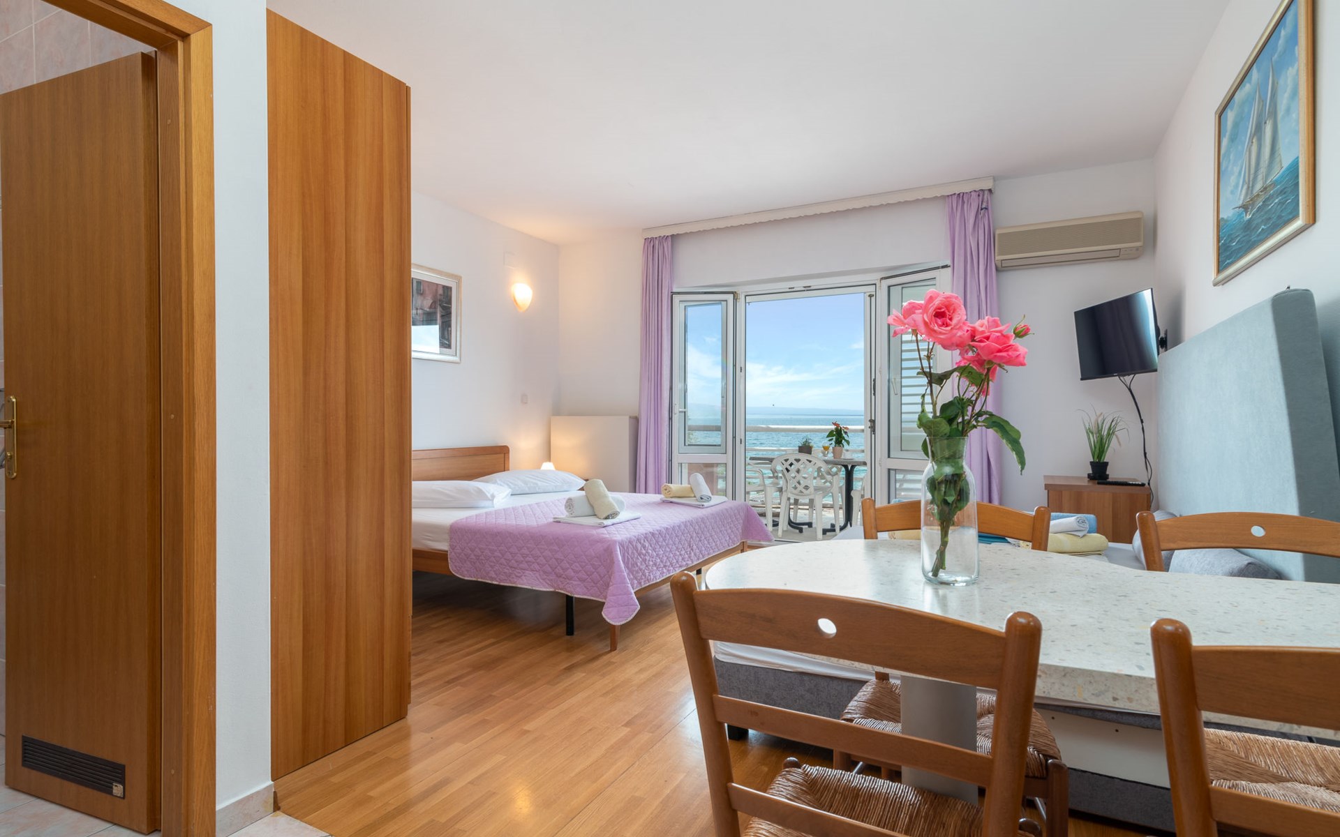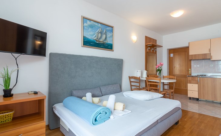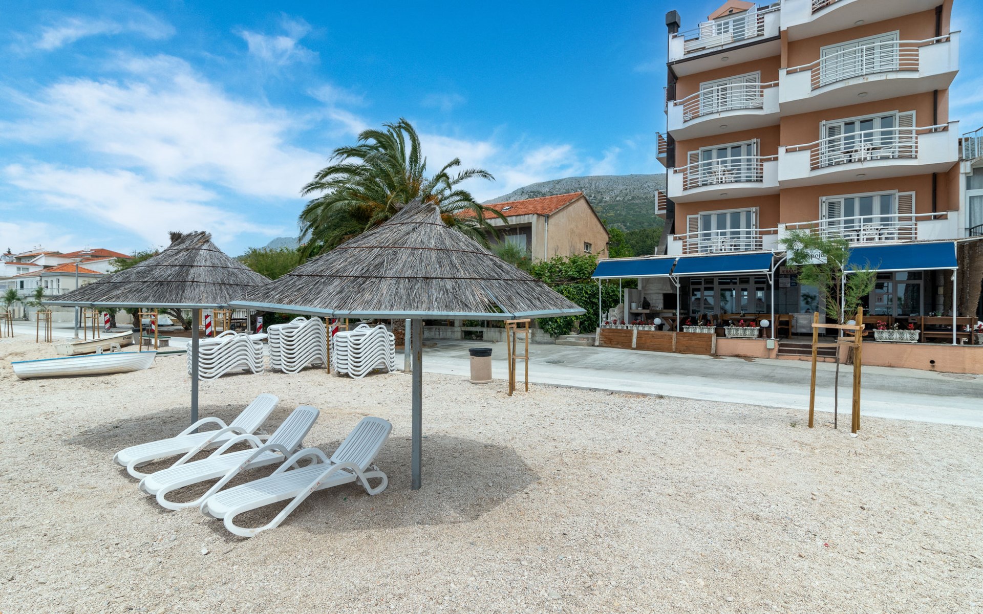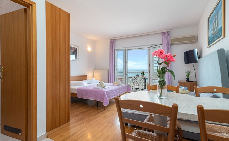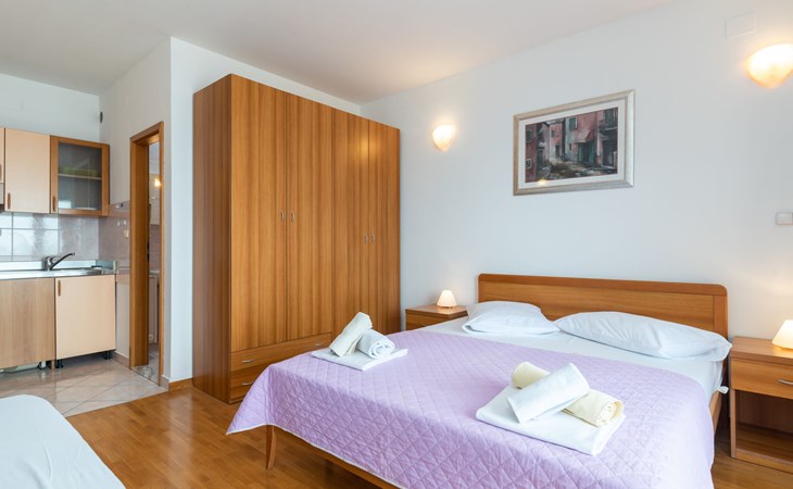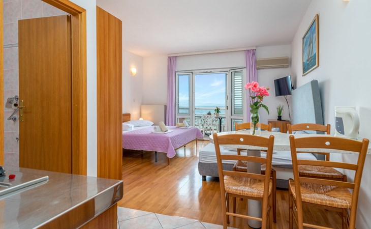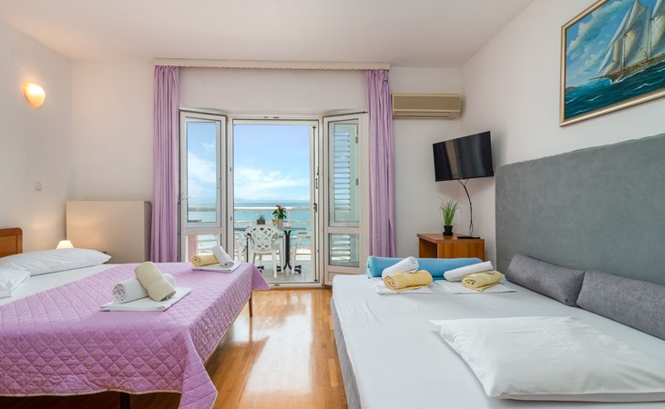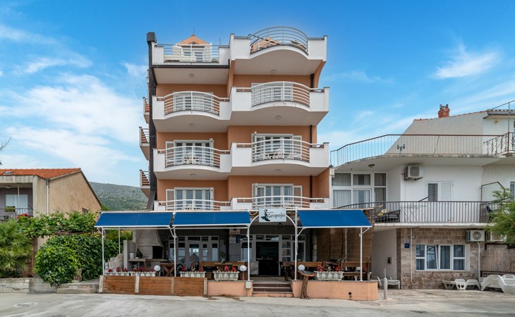 Mehrfamilienhaus. 500 m vom Zentrum von Podstrana, 10 km vom Zentrum von Split, sonnige Lage, verkehrsberuhigte Zone, 5 m vom Meer, 5 m vom Strand, direkter Zugang zum Strand. Zur Mitbenutzung: Grundstück 300 m2. Im Hause: Internetzugang, Waschmaschine (zur Mitbenutzung). Parkplatz in 400 m. Einkaufsgeschäft 100 m, Restaurant 5 m, Bushaltestelle 240 m, Kieselstrand 5 m. Jacht-Hafen 3 km, Tennis 3 km, Reitstall 4 km. Bitte beachten: Be- und Entladen am Ferienhaus möglich.