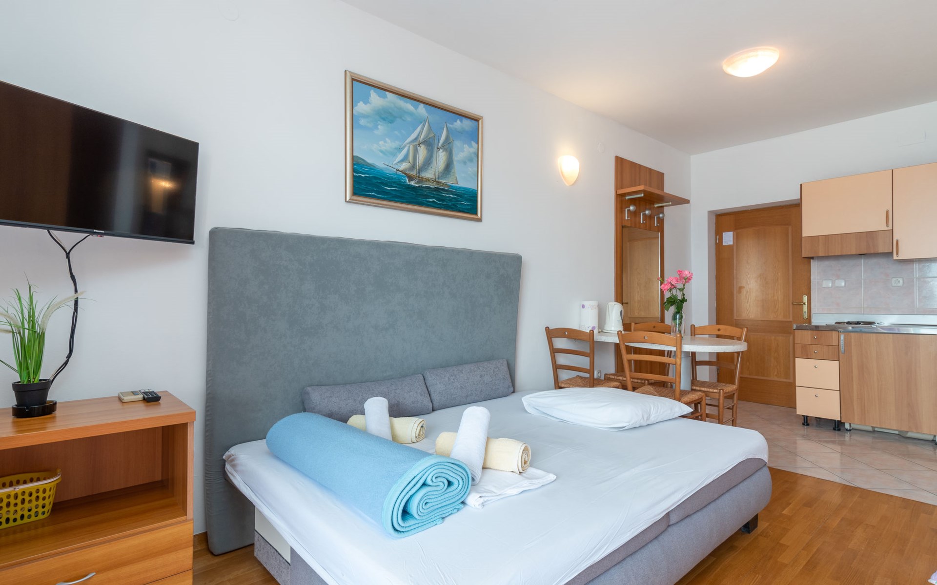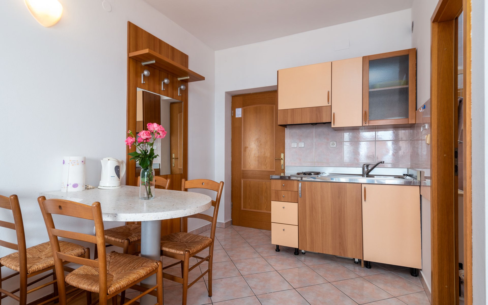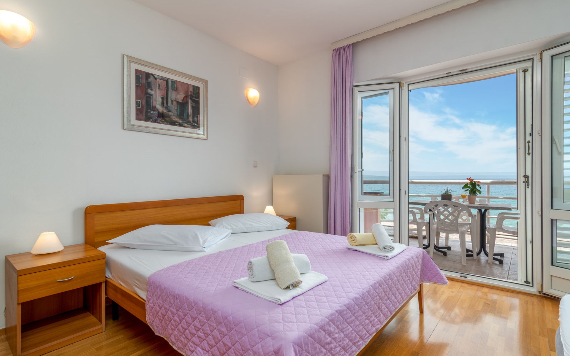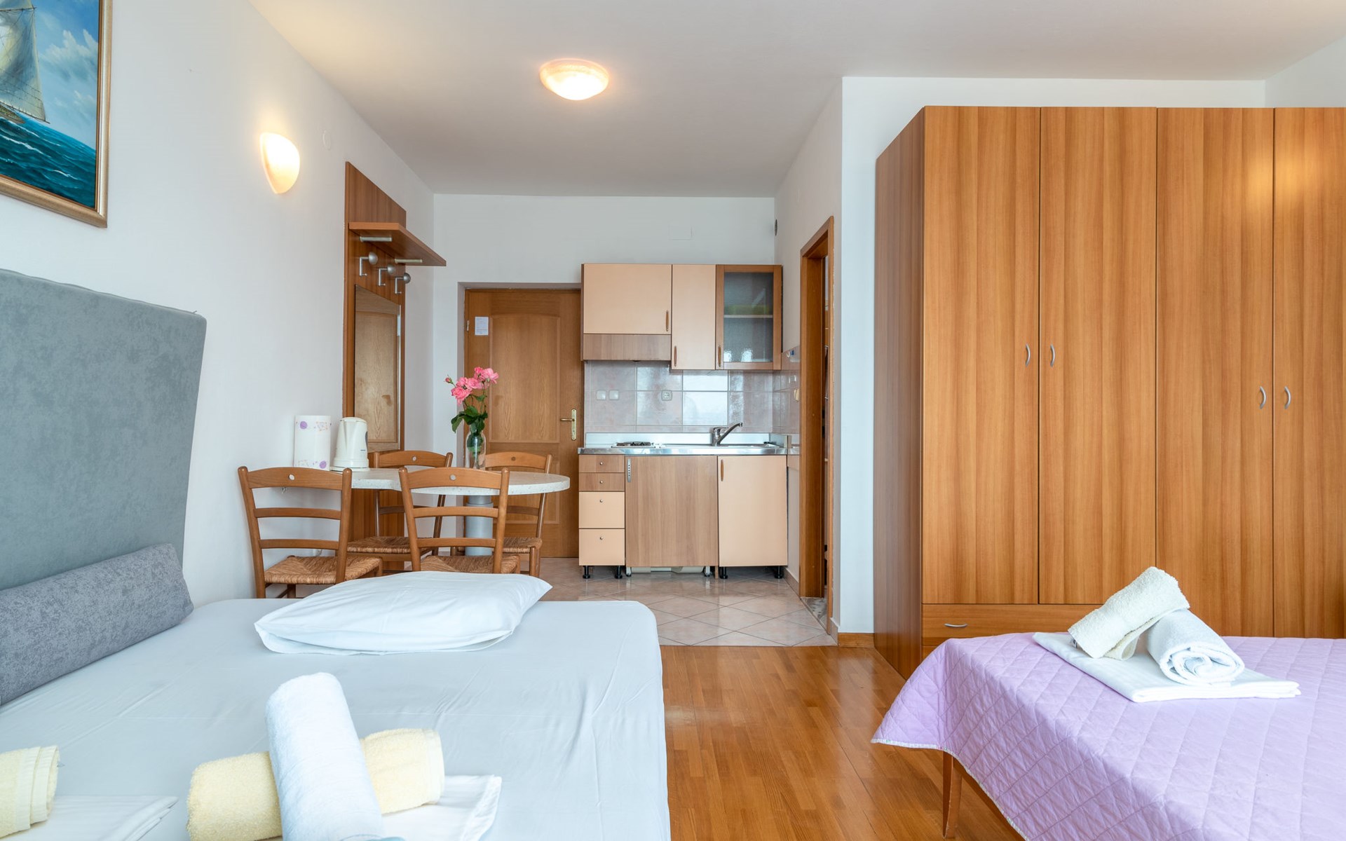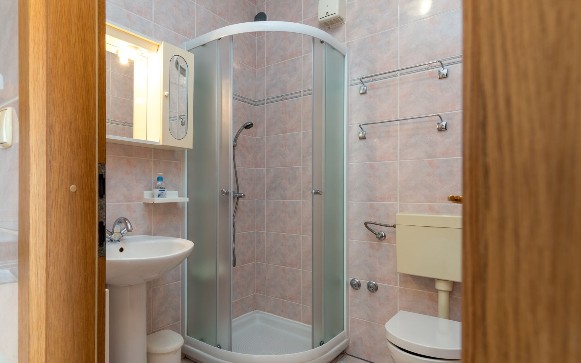 Mehrfamilienhaus. 500 m vom Zentrum von Podstrana, 10 km vom Zentrum von Split, sonnige Lage, verkehrsberuhigte Zone, 5 m vom Meer, 5 m vom Strand, direkter Zugang zum Strand. Zur Mitbenutzung: Grundstück 300 m2. Im Hause: Internetzugang, Waschmaschine (zur Mitbenutzung). Parkplatz in 400 m. Einkaufsgeschäft 100 m, Restaurant 5 m, Bushaltestelle 240 m, Kieselstrand 5 m. Jacht-Hafen 3 km, Tennis 3 km, Reitstall 4 km. Bitte beachten: Be- und Entladen am Ferienhaus möglich.