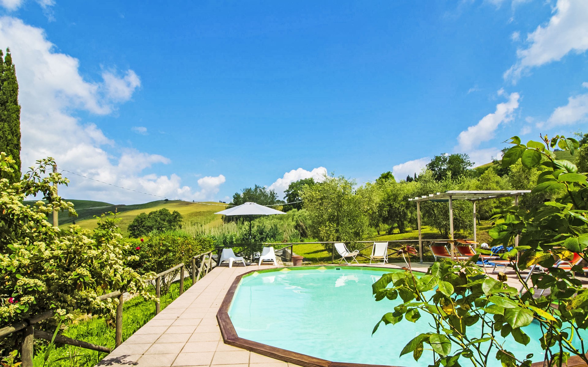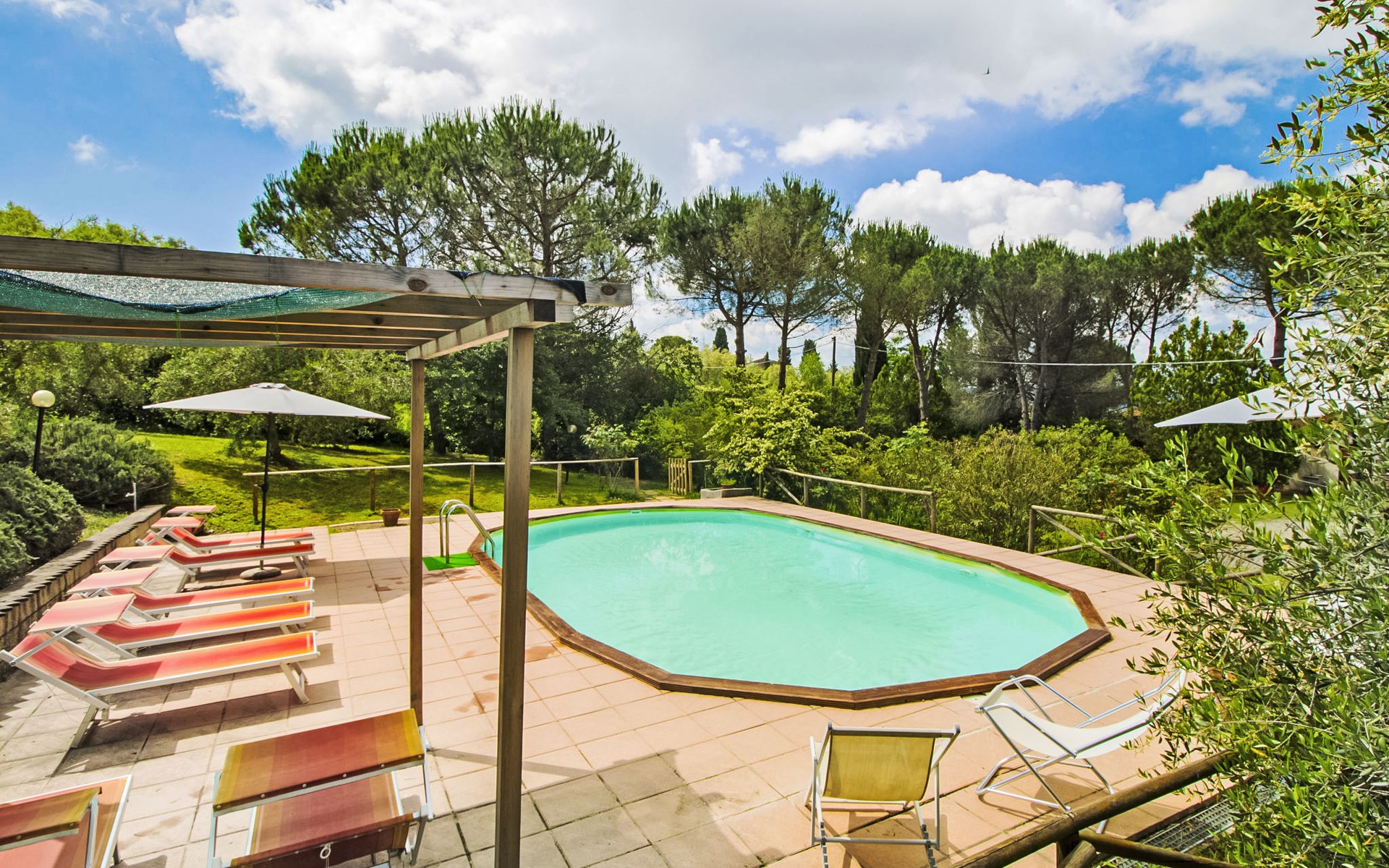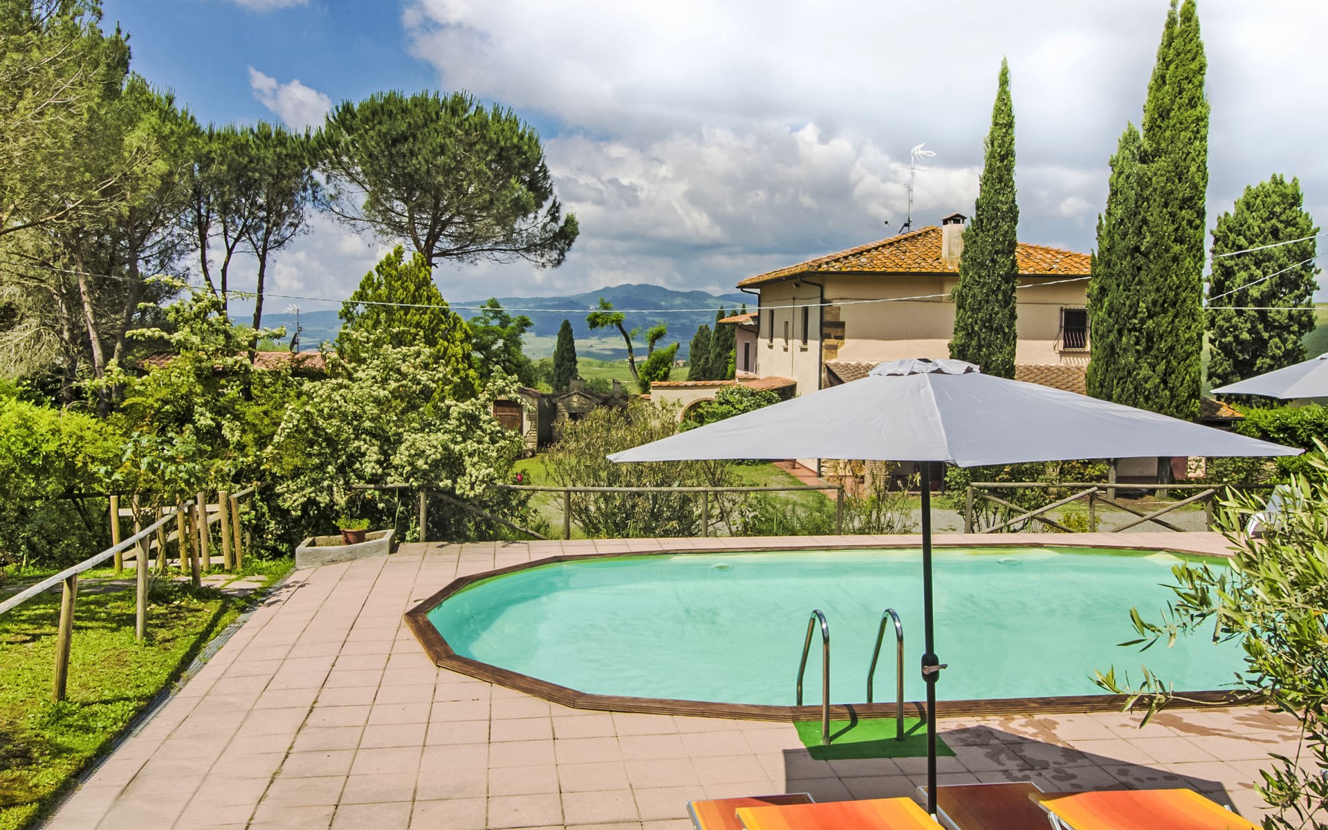 Dank der Nähe zu Volterra ist diese Unterkunft der ideale Ausgangspunkt für einen Urlaub in der Toskana. Freistehender Landsitz "Villa Etrusca". Unterhalb von Volterra, sonnige Lage, im Grünen. Zur Alleinbenutzung: Naturgarten, Schwimmbad (5 x 10 m, 130 cm tief, saisonale Verfügbarkeit: 07.Mai. - 17.Sep.). Aussendusche, Sitzplatz, Gartenmöbel, Grillhaus. Im Hause: Internetzugang. Supermarkt 5 km, Restaurant 2 km, Bushaltestelle 1.5 km, Sandstrand "Cecina" 50 km. Reitstall 5 km. Nahe gelegene Sehenswürdigkeiten: Pisa, San Gimignano, Siena. Das Haus ist von einem natürlichen Garten mit Bäumen umgeben, die einen schattigen Bereich bieten. Sie können draussen, auf der schönen grossen Loggia, mit der Aussicht auf das Schwimmbad, Ihr Essen geniessen.