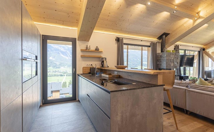 Haus im Ennstal: Modernes, komfortables Feriendorf "Hauser Kaibling by Alps Resorts". Oberhalb von Haus, sonnige Lage am Hang, 5 km vom See, direkt am Skigebiet. Zur Alleinbenutzung: Schwimmbad (saisonale Verfügbarkeit: 01.Jan. - 31.Dez.). Im Hause: Zentralheizung. Parkplatz beim Haus. E-Ladestation. Supermarkt 1 km, Restaurant 1 km. Skisportanlagen 300 m, Skiverleih, Kinderskischule. Bekannte Skigebiete sind gut erreichbar: Hauser Kaibling 300 m, Planai, Reiteralm. Bekannte Seen in der Umgebung sind gut erreichbar: Freizeitsee Aich 4 km. Wandergebiete: Schladminger Tauern. Bitte beachten: Bei guter Schneelage Zufahrt mit den Skiern bis zum Haus. Das Foto ist nur ein Hausbeispiel. Alle Häuser/Wohnungen sind individuell eingerichtet. Die Mietobjekte können sich in Wohnfläche, Raumaufteilung, Ausstattung und Einrichtung unterscheiden. ACHTUNG: Schladming-Dachstein-Sommercard inkludiert (Ende Mai bis Ende Oktober).
