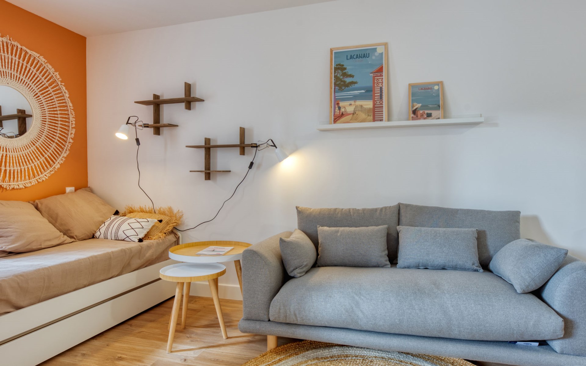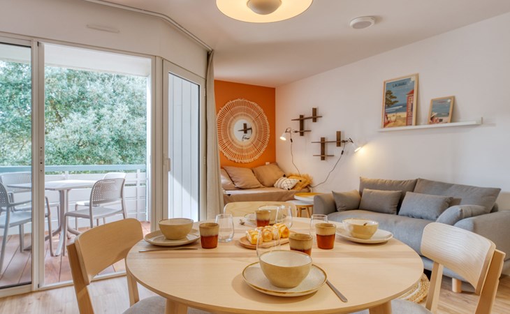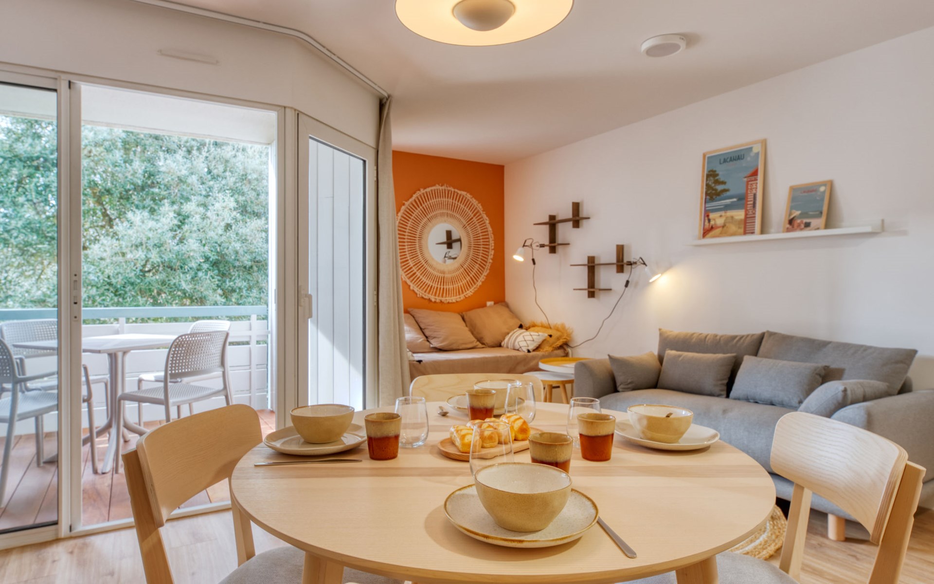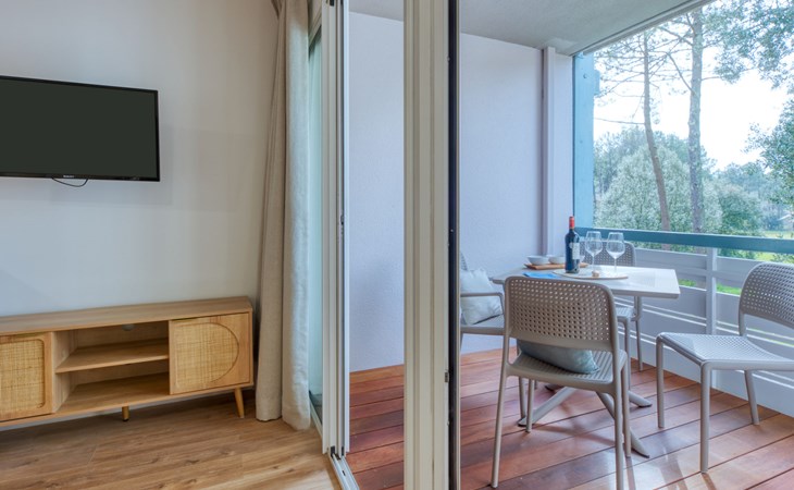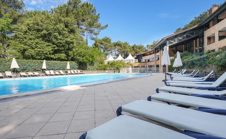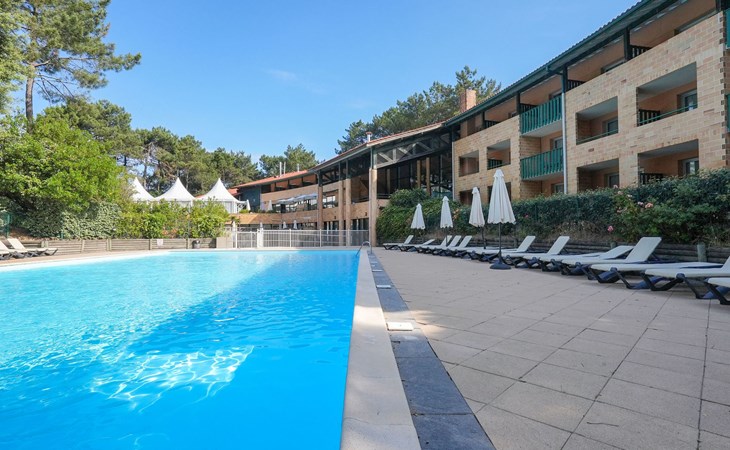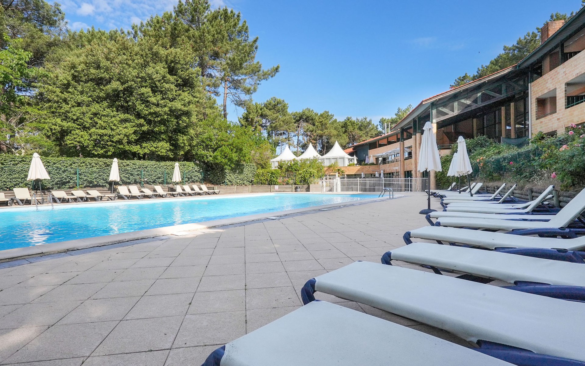 Im Rahmen von Wassereinschränkungsmassnahmen aufgrund von Trockenheit in gewissen Gebieten beachten Sie bitte, dass der Pool dieser Unterkunft geschlossen sein kann bis die gesetzlichen Beschränkungen für das Füllen und Auffüllen für alle privaten Pools und Wasserbecken aufgehoben werden. Hier finden Sie alle offiziellen Informationen zu den Massnahmen zur Einschränkung oder Aussetzung der Wassernutzung in Frankreich**. Apart-Hotel "Village Cheval Spa Résidences". Am Ortsrand, 3 km vom Zentrum von Lacanau Océan, 3 km vom Meer, 2.5 km vom See, im Wald. Zur Mitbenutzung: naturbelassenes Grundstück, Schwimmbad beheizt, eingezäunt (10 x 18 m, 90 - 170 cm tief, saisonale Verfügbarkeit: 15.Mai. - 30.Sep. Öffnungszeiten Schwimmbad: 10:00-20:00). Tischtennis, Boccia, Kinderspielplatz. In der Anlage: Restaurant, Bar, Sauna (extra). Massage (extra). Wellnessbereich (extra), Waschmaschine, Wäschetrockner (zur Mitbenutzung, extra). Parkplatz auf dem Grundstück. Einkaufsgeschäft 3 km, Supermarkt 3.5 km, Restaurant 20 m, Bushaltestelle "Marie Curie" 2.1 km, Sandstrand "Centrale" 3 km, Badesee "Le Moutchic" 2.5 km. Golfplatz (9 Loch) 300 m, Tennis 1 km, Reitstall 13 km. Nahe gelegene Sehenswürdigkeiten: Dune du Pilat 60 km, Bordeaux 60 km, Saint Emilion 60 km. Bekannte Seen in der Umgebung sind gut erreichbar: Le Moutchic 2.5 km, Maubuisson 15 km.