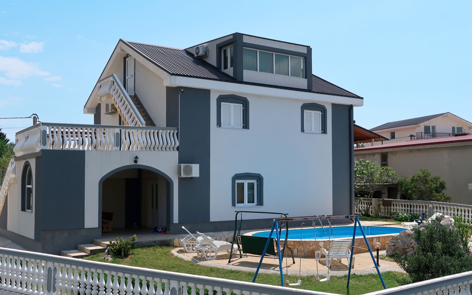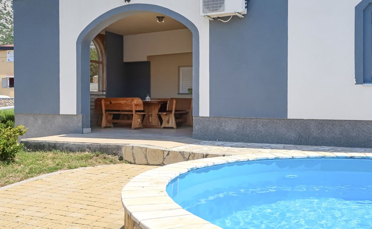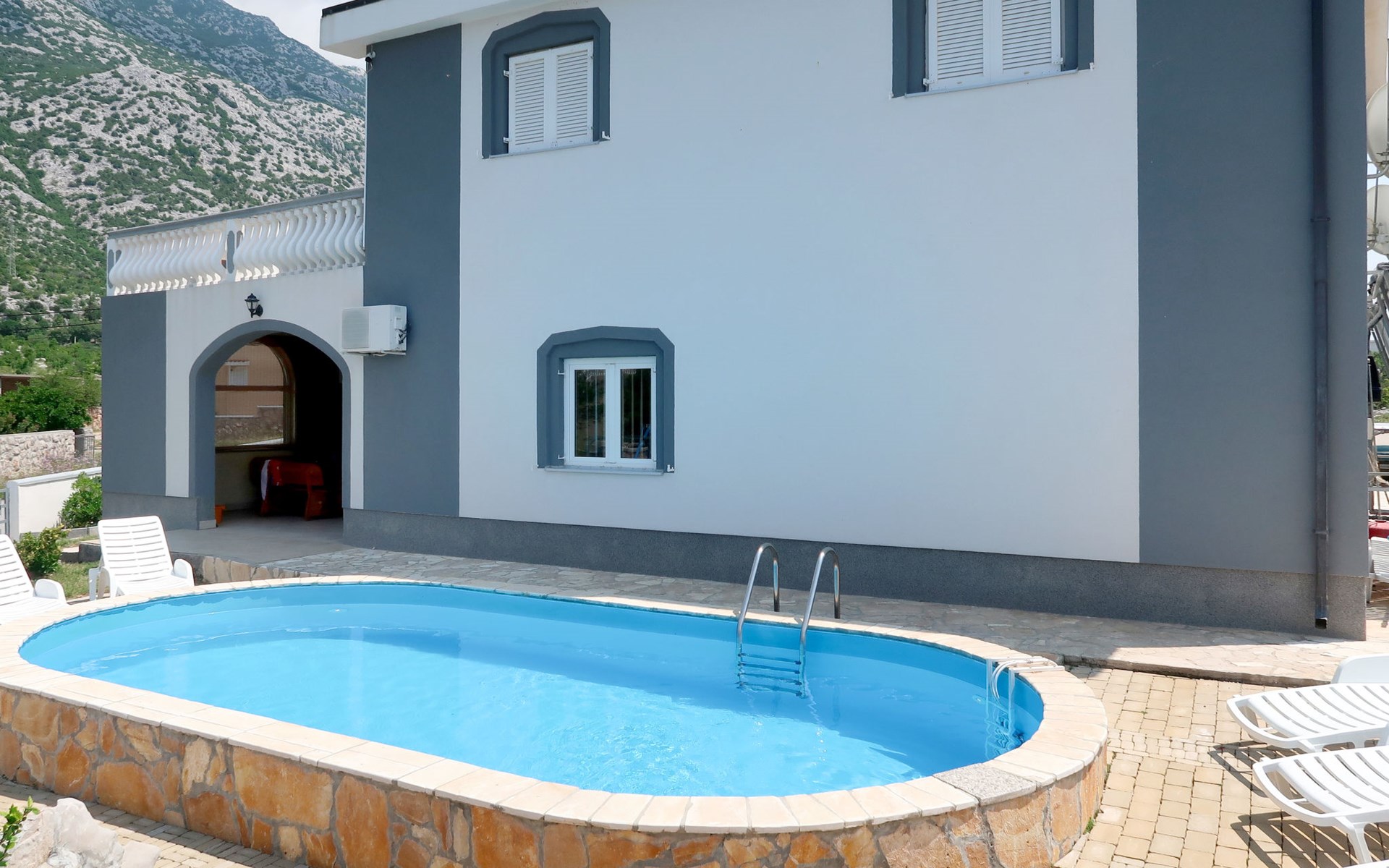 Cesarica 7 km von Karlobag: Einfamilienhaus "Golic", auf 2 Stockwerken. 2 km vom Zentrum von Ribarica, 300 m vom Meer, 300 m vom Strand. Zur Alleinbenutzung: Grundstück 700 m2 (eingezäunt) mit Rasen und Pflanzen, Schwimmbad (7 x 3 m, 24 m2, 150 cm tief, saisonale Verfügbarkeit: 01.Mai. - 15.Okt.). Aussendusche, Grill (Schaukel), Poolpflege durch den Besitzer/Gärtner. Im Hause: Internetzugang, Waschmaschine. Parkplatz (für 3 Autos) auf dem Grundstück. Einkaufsgeschäft 2 km, Bushaltestelle 3.8 km, Kieselstrand 800 m, Felsstrand 300 m. Bitte beachten: Der Besitzer akzeptiert keine Jugendgruppen. Private Bootsanlegestelle (extra) auf Anfrage. Das Haus besteht aus 3 Wohnungen vermietet als eine Einheit: 2 Wohnungen im Erdgeschoss und 1 Wohnung im ersten Stock.