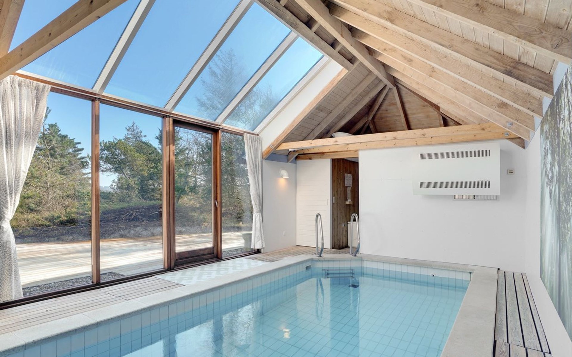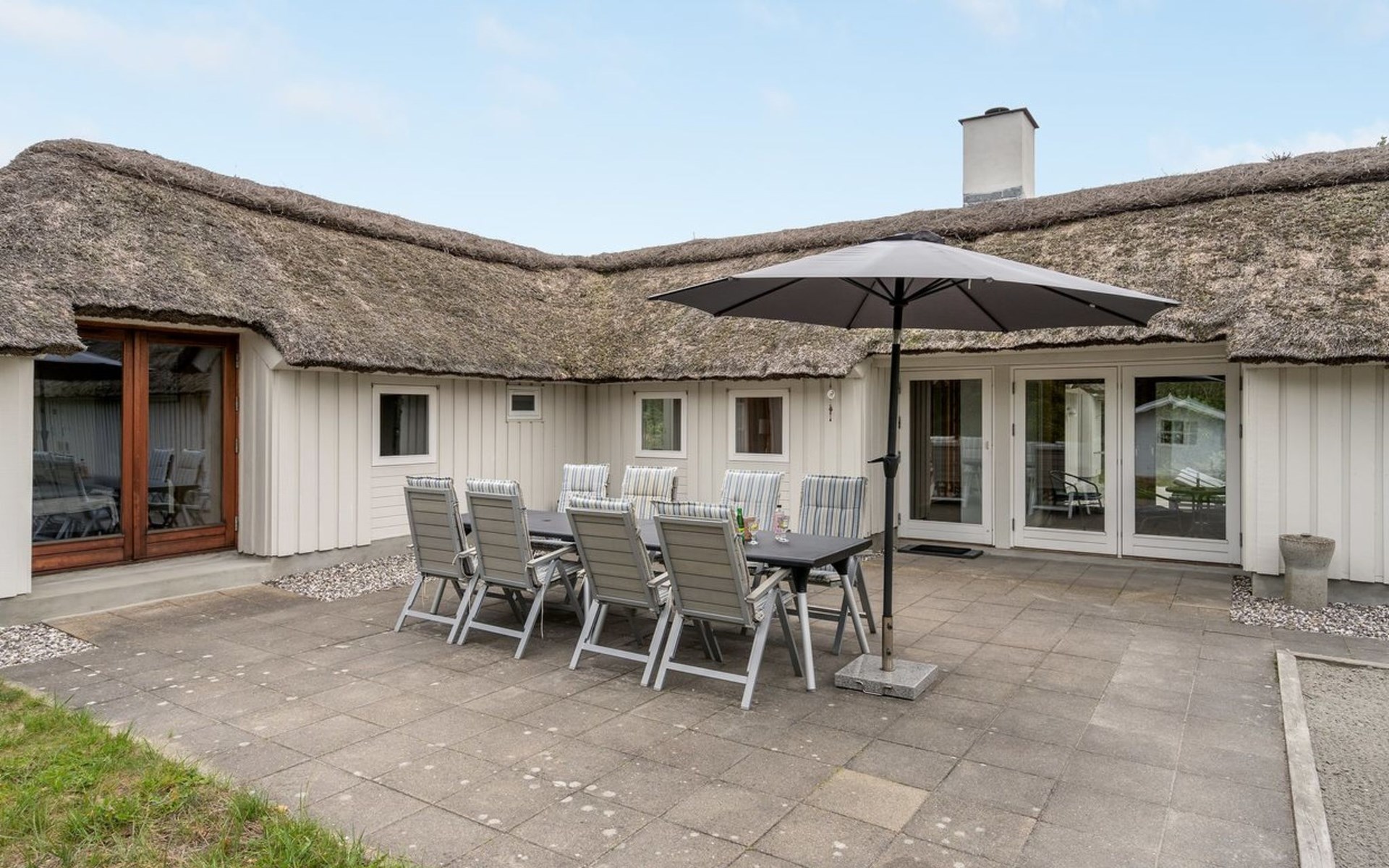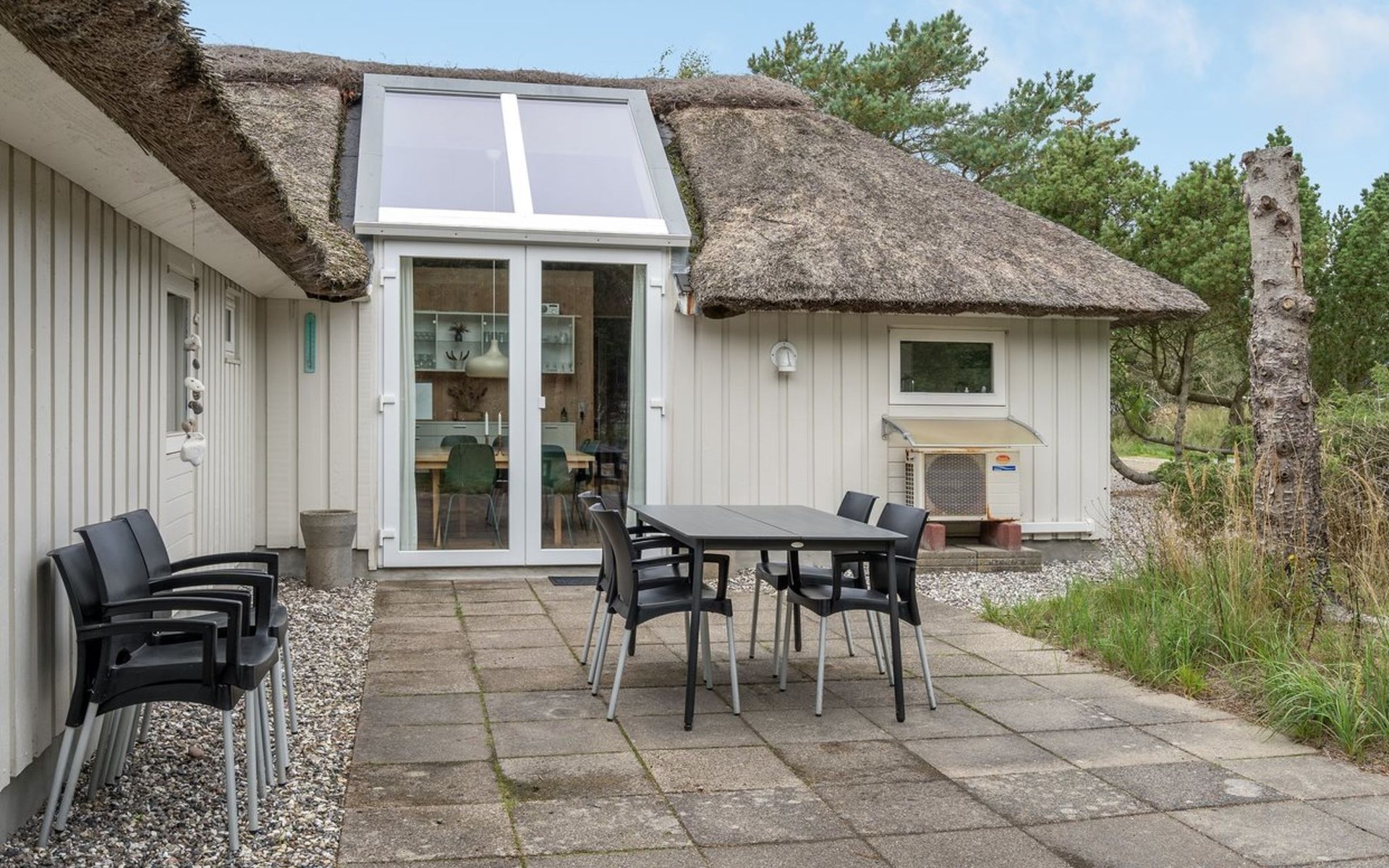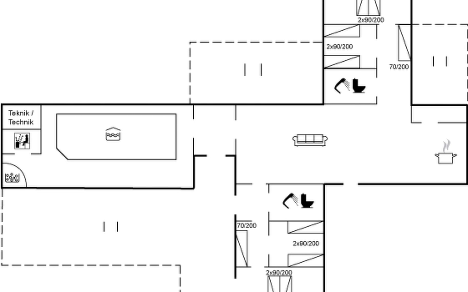 Einfamilienhaus, Baujahr 1988. 900 m vom Meer. Zur Alleinbenutzung: naturbelassenes Grundstück 2'000 m2, Hallenbad (3 x 6 m, 18 m2, 140 - 140 cm tief). Terrasse (100 m2), Grill, Kinderspielplatz (Schaukel). Im Hause: Sauna, Waschmaschine, Wäschetrockner. Parkplatz beim Haus. E-Ladestation. Lebensmittelgeschäft 2.5 km. Golfplatz 13 km. Der Besitzer akzeptiert keine Jugendgruppen.