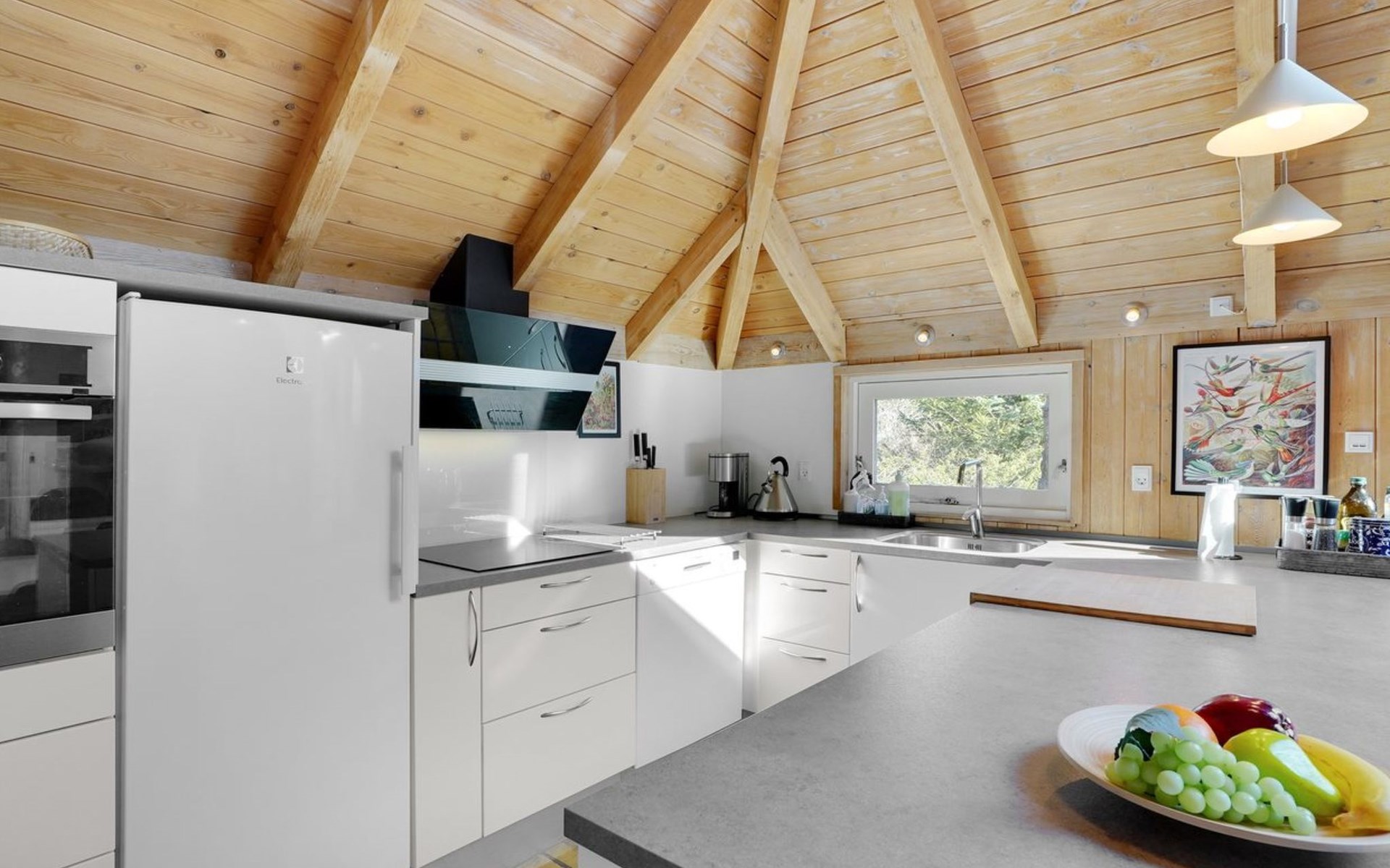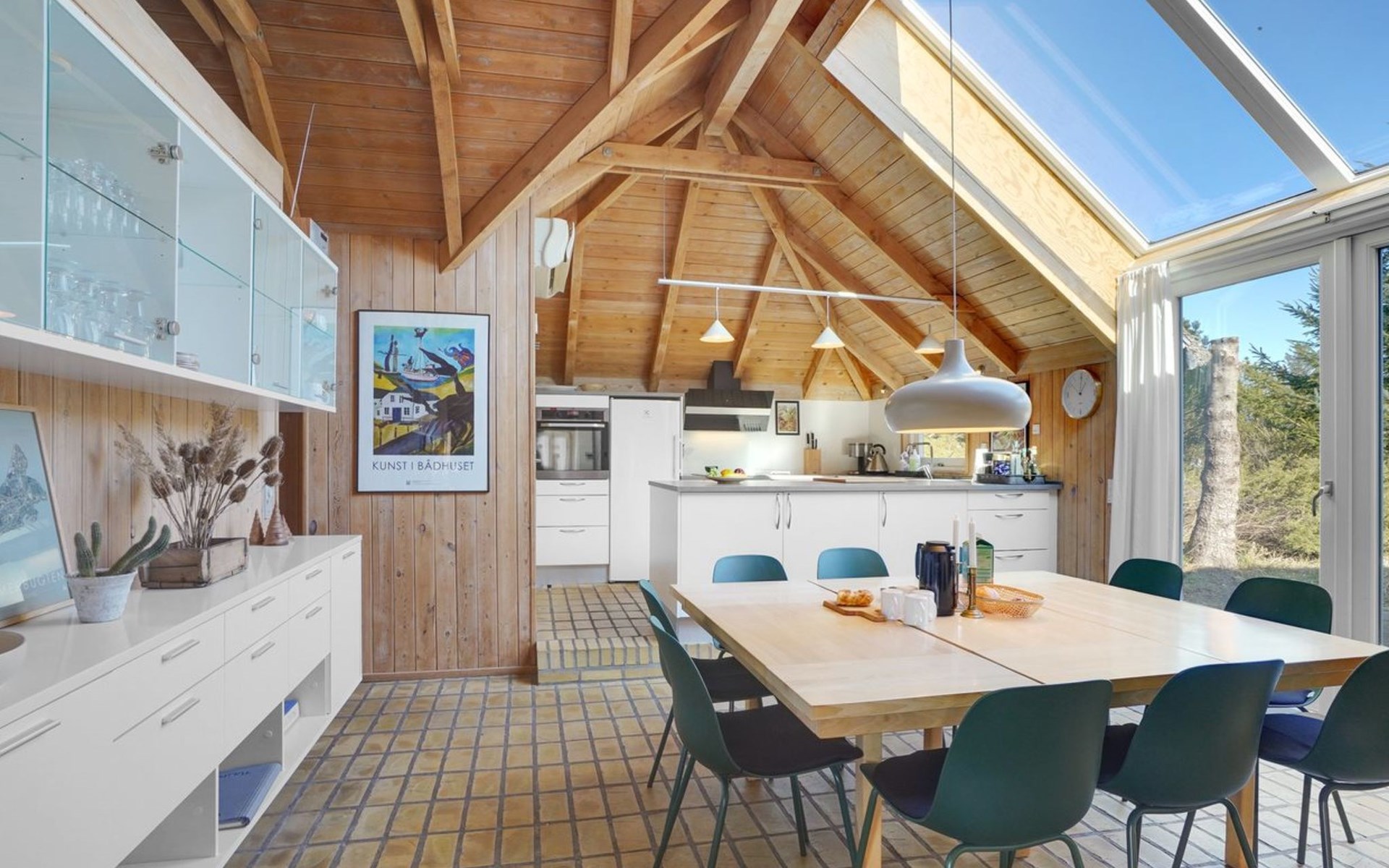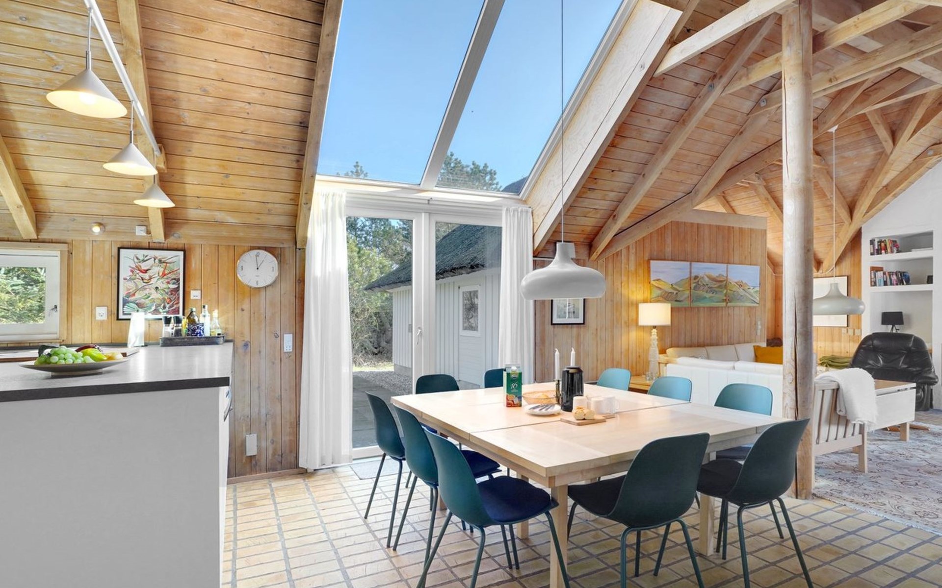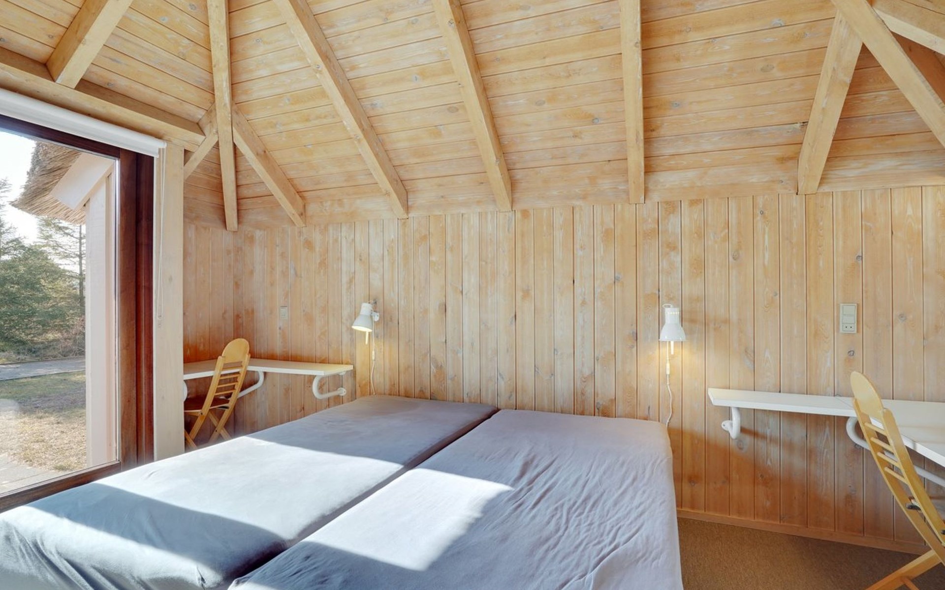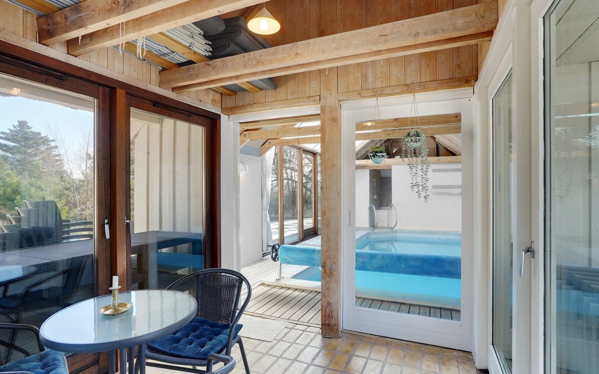 Einfamilienhaus, Baujahr 1988. 900 m vom Meer. Zur Alleinbenutzung: naturbelassenes Grundstück 2'000 m2, Hallenbad (3 x 6 m, 18 m2, 140 - 140 cm tief). Terrasse (100 m2), Grill, Kinderspielplatz (Schaukel). Im Hause: Sauna, Waschmaschine, Wäschetrockner. Parkplatz beim Haus. E-Ladestation. Lebensmittelgeschäft 2.5 km. Golfplatz 13 km. Der Besitzer akzeptiert keine Jugendgruppen.