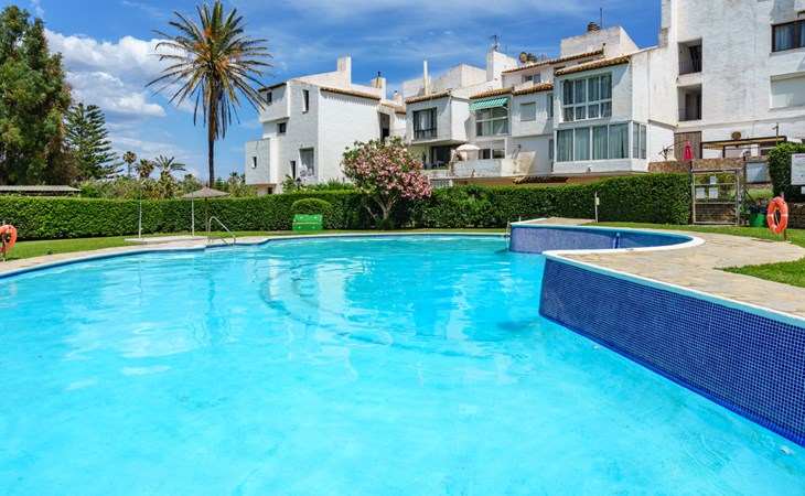 Urb. Bahía Dorada: Schöne, einfache, komfortable Feriensiedlung "Bahia Dorada", renoviert im Jahre 2009. 6 km vom Zentrum von Estepona, 4 km vom Zentrum von Sabinillas, ausserhalb des Ortes, sonnige Lage, 200 m vom Meer. Zur Mitbenutzung: Garten, Schwimmbad rund eingezäunt (4 m Durchmesser, saisonale Verfügbarkeit: 01.Jul. - 30.Sep.). Tennis, beleuchtet. Im Hause: Fahrstuhl, Waschmaschine. Parkplatz. Supermarkt 1 km, Einkaufszentrum 1 km, Bushaltestelle 80 m, Steinstrand 25 m. Golfplatz (18 Loch) 3 km. Bitte beachten: Fahrzeug empfohlen. Autobahn in der Nähe. Flugplatz. Die Nachbarschaft ist sehr lärmempfindlich. Ruhe und gutes Benehmen wird erwartet.