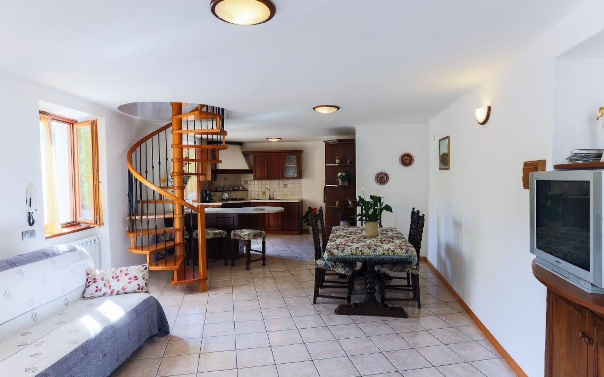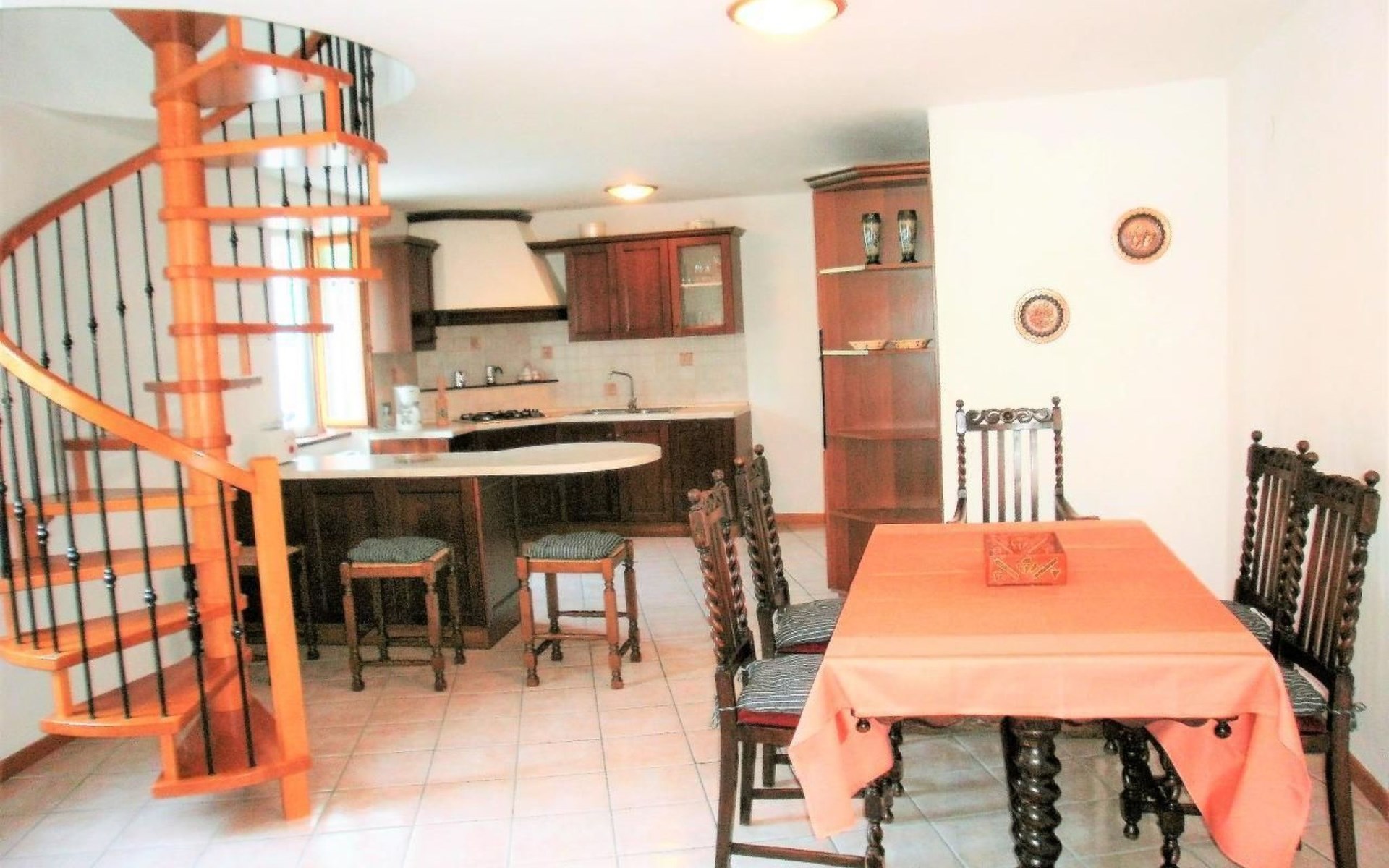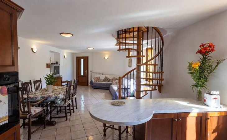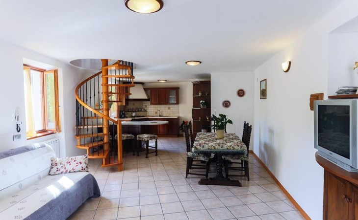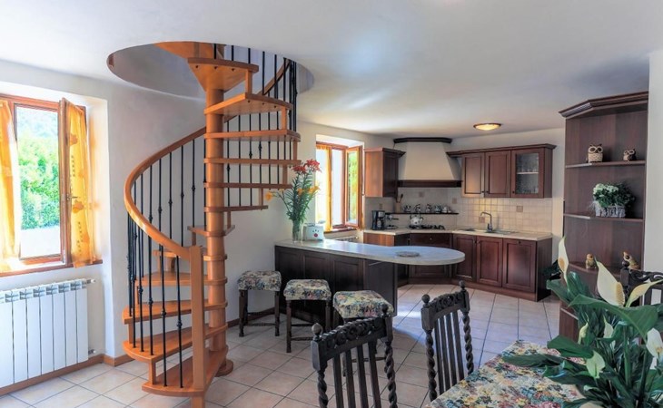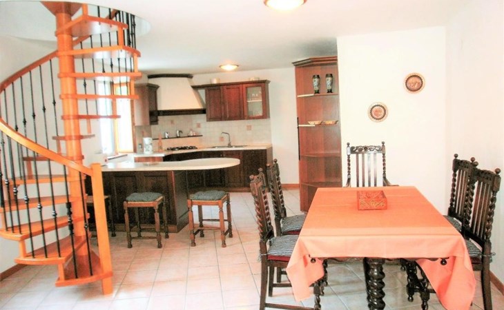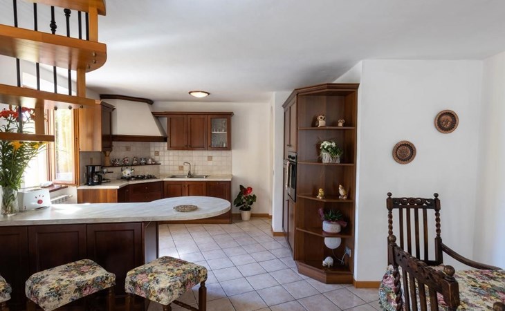Im Erdgeschoss finden Sie ein großes Wohnzimmer mit einer voll ausgestatteten Kochnische und einer Küche, in der Sie köstliche Mahlzeiten zubereiten können, als wären Sie zu Hause. Hier finden Sie auch ein kleines Service-Bad. Im ersten Stock, im Dachgeschoss, befinden sich die Schlafzimmer: zwei Doppelzimmer und ein Zweibettzimmer, daneben ein praktisches Bad mit Dusche. Die Zimmer bieten Zugang zu einem Außenbalkon, auf dem Sie Momente der Entspannung genießen können.
