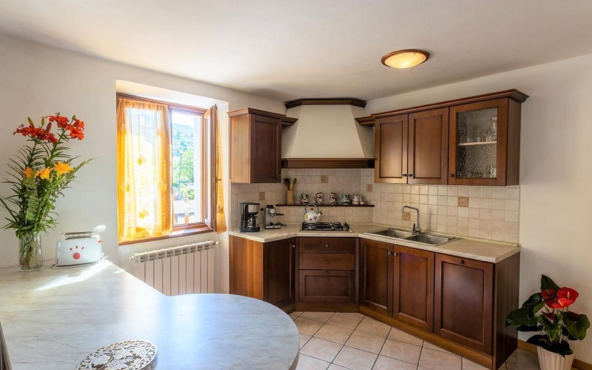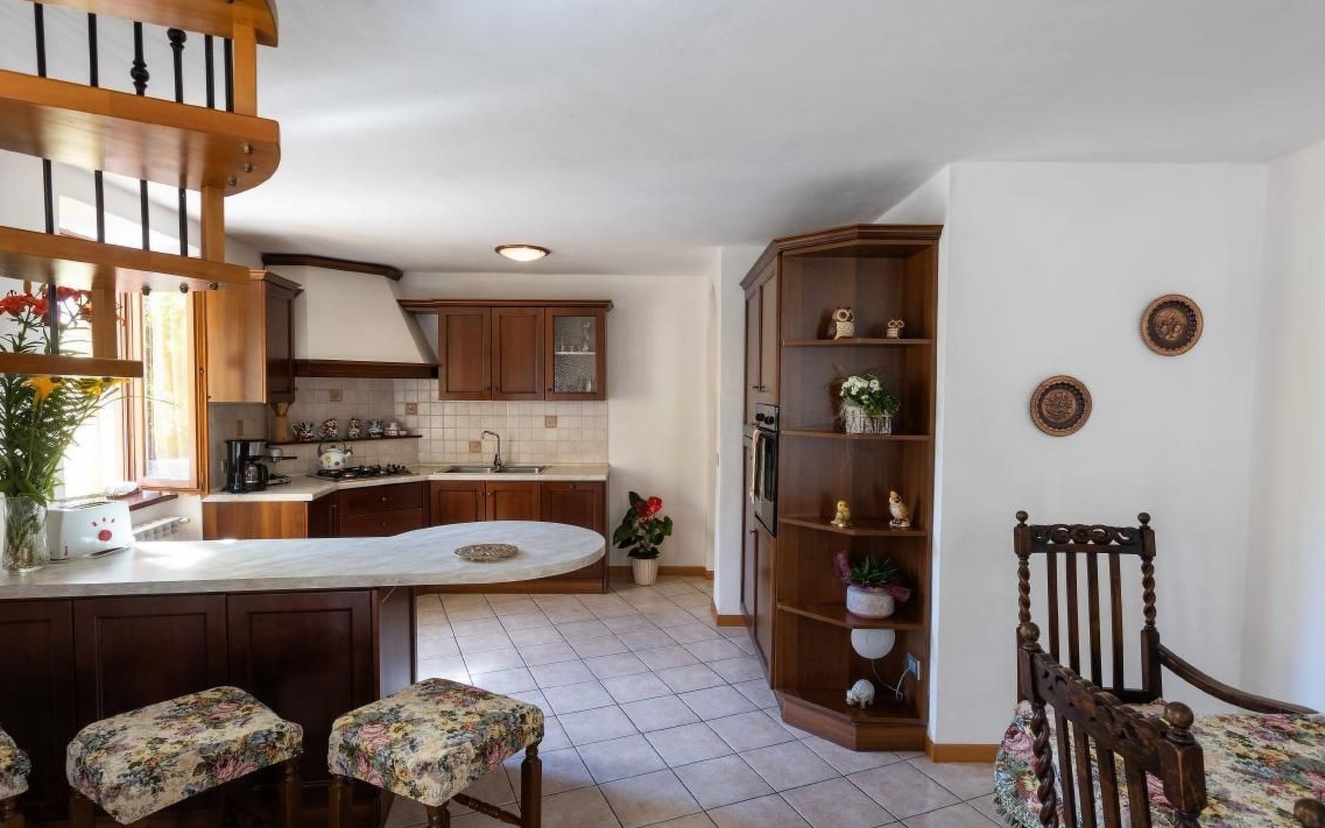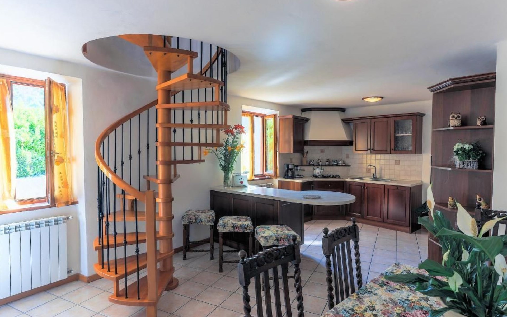 Im Erdgeschoss finden Sie ein großes Wohnzimmer mit einer voll ausgestatteten Kochnische und einer Küche, in der Sie köstliche Mahlzeiten zubereiten können, als wären Sie zu Hause. Hier finden Sie auch ein kleines Service-Bad. Im ersten Stock, im Dachgeschoss, befinden sich die Schlafzimmer: zwei Doppelzimmer und ein Zweibettzimmer, daneben ein praktisches Bad mit Dusche. Die Zimmer bieten Zugang zu einem Außenbalkon, auf dem Sie Momente der Entspannung genießen können.