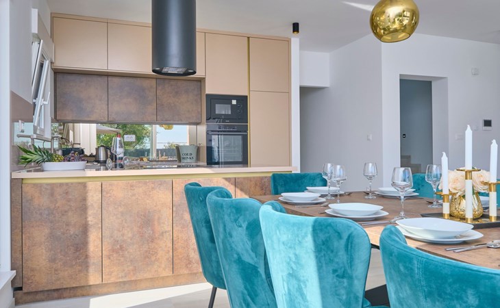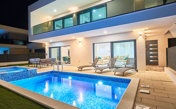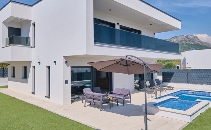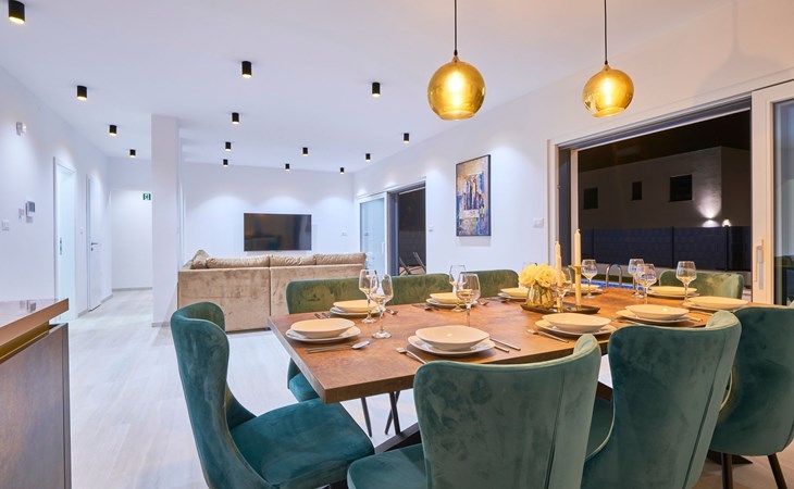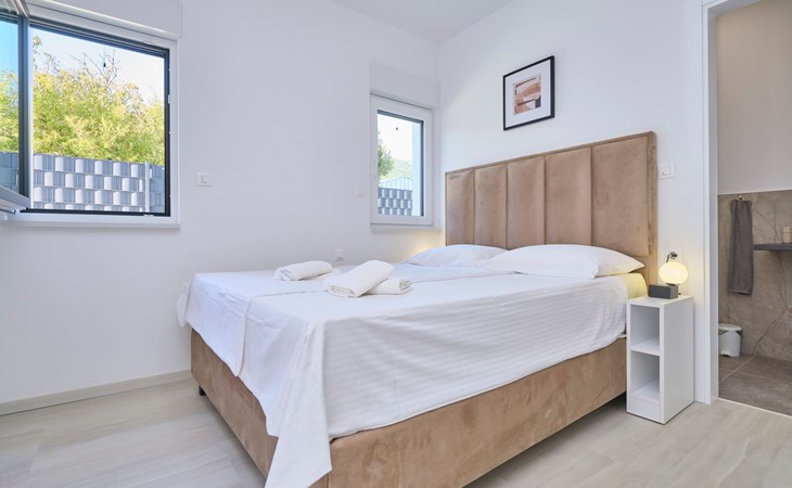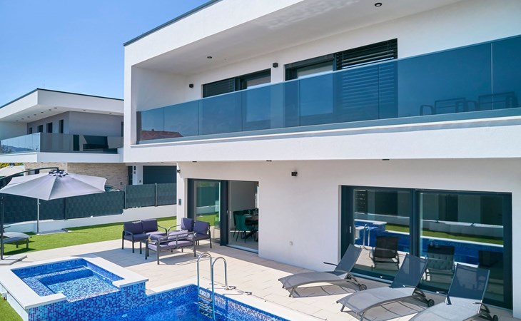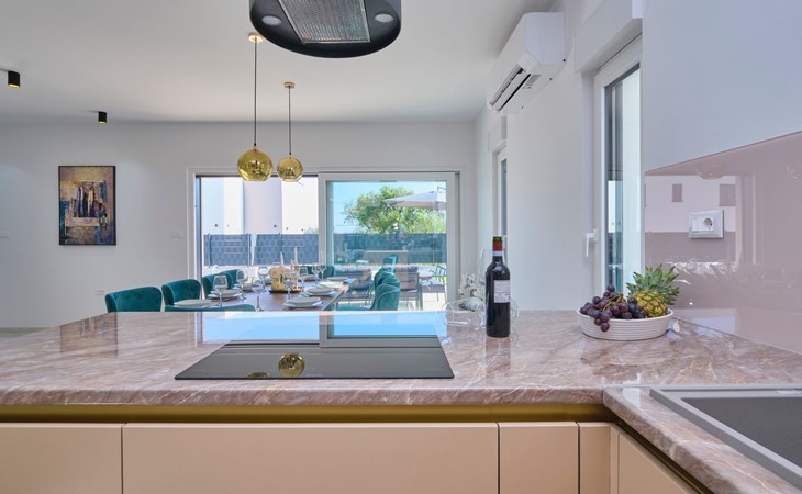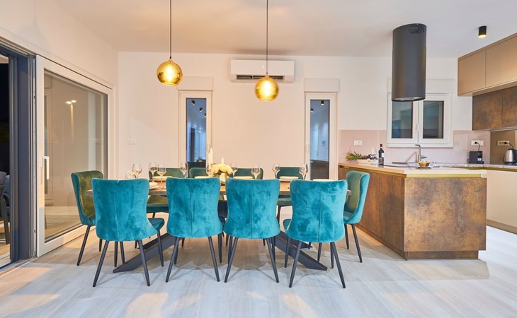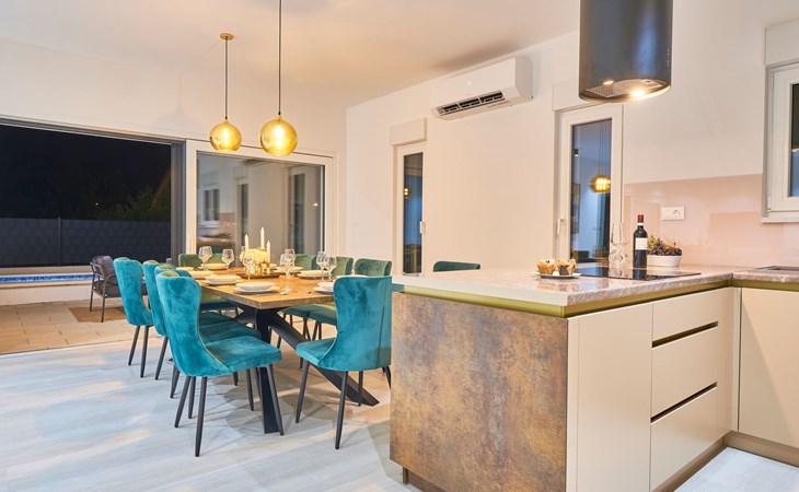Villa Adria Dream ist eine neu eingerichtete Villa mit 5 Schlafzimmern, die sowohl Komfort als auch Stil bietet. Die Villa erstreckt sich über zwei Etagen und verfügt über ein Erdgeschoss und ein Obergeschoss, wobei jedes Schlafzimmer mit einem eigenen Bad, einer Dusche und einer Klimaanlage ausgestattet ist. Eine voll ausgestattete Küche und ein geräumiges Wohnzimmer bieten die Möglichkeit, Mahlzeiten zuzubereiten und für die ganze Gruppe/Familie zu entspannen.