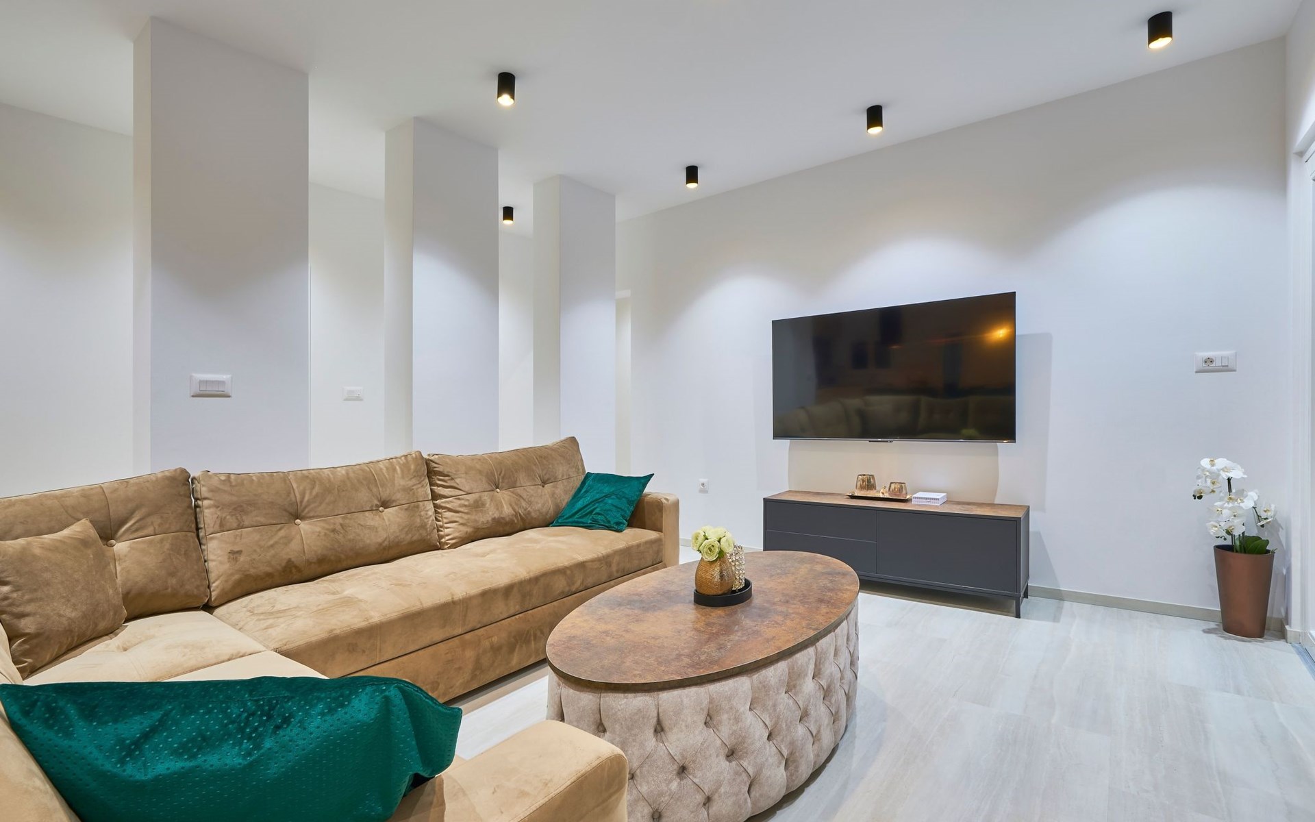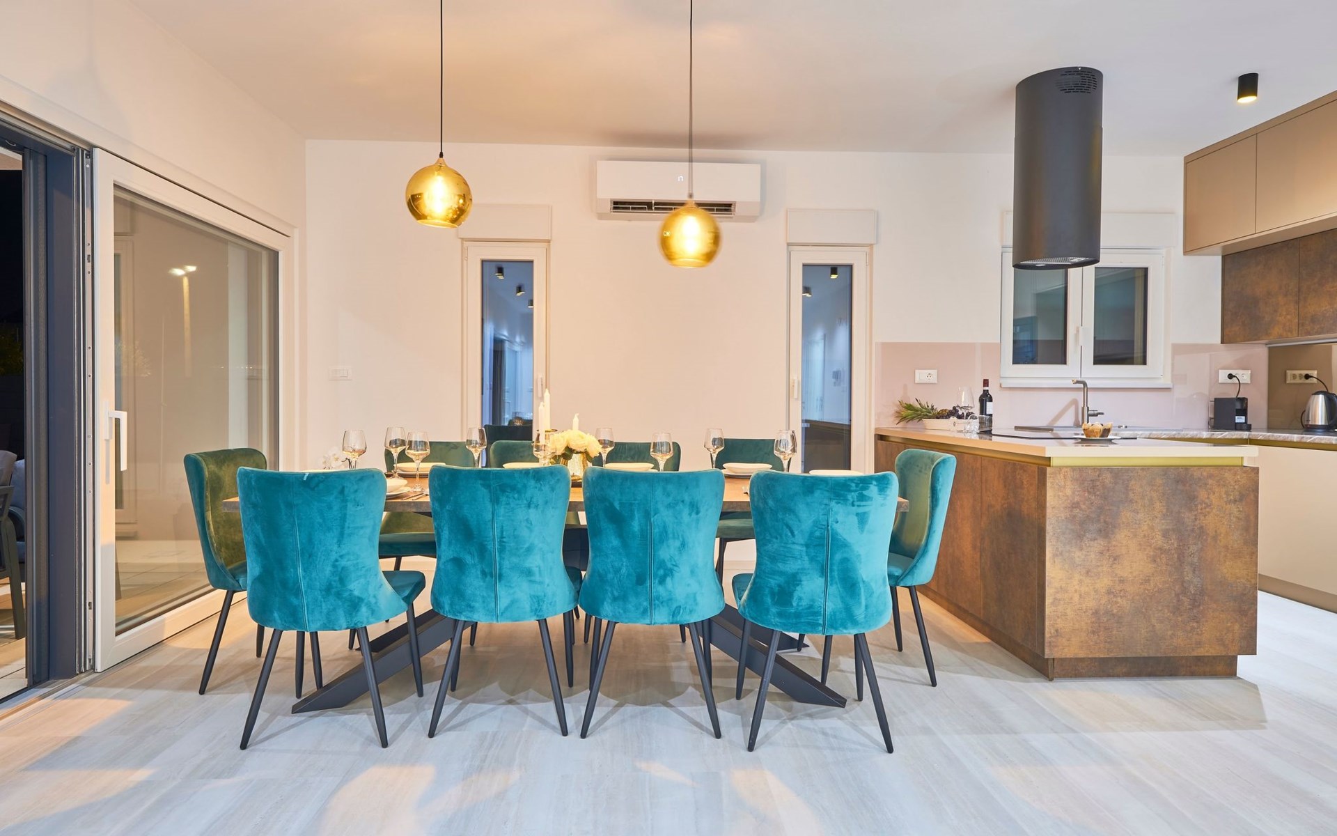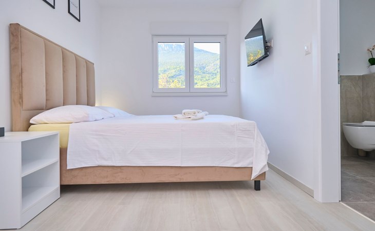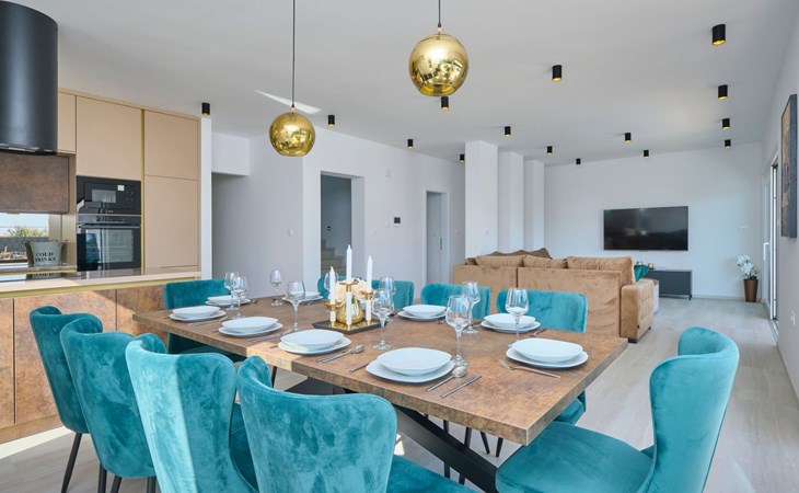 Villa Adria Dream ist eine neu eingerichtete Villa mit 5 Schlafzimmern, die sowohl Komfort als auch Stil bietet. Die Villa erstreckt sich über zwei Etagen und verfügt über ein Erdgeschoss und ein Obergeschoss, wobei jedes Schlafzimmer mit einem eigenen Bad, einer Dusche und einer Klimaanlage ausgestattet ist. Eine voll ausgestattete Küche und ein geräumiges Wohnzimmer bieten die Möglichkeit, Mahlzeiten zuzubereiten und für die ganze Gruppe/Familie zu entspannen.