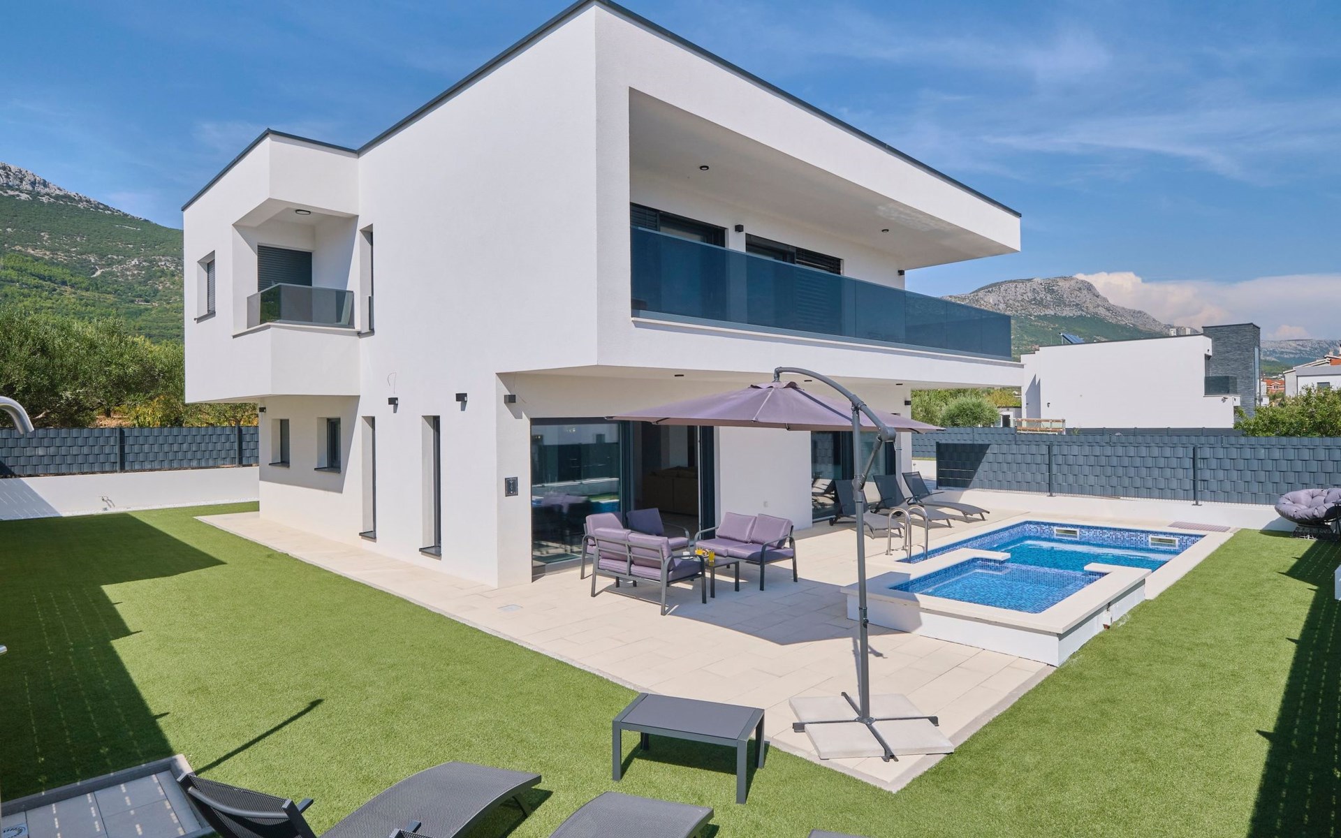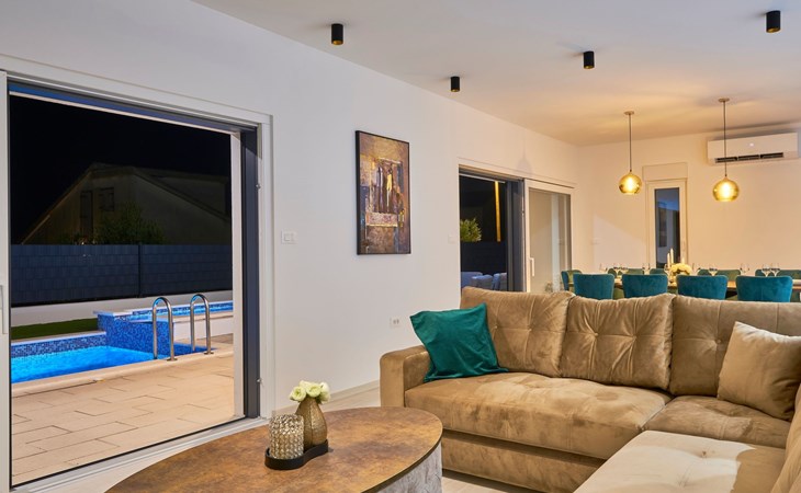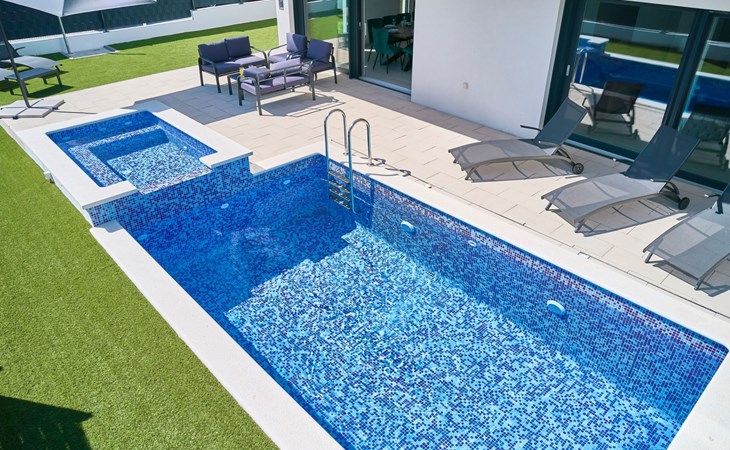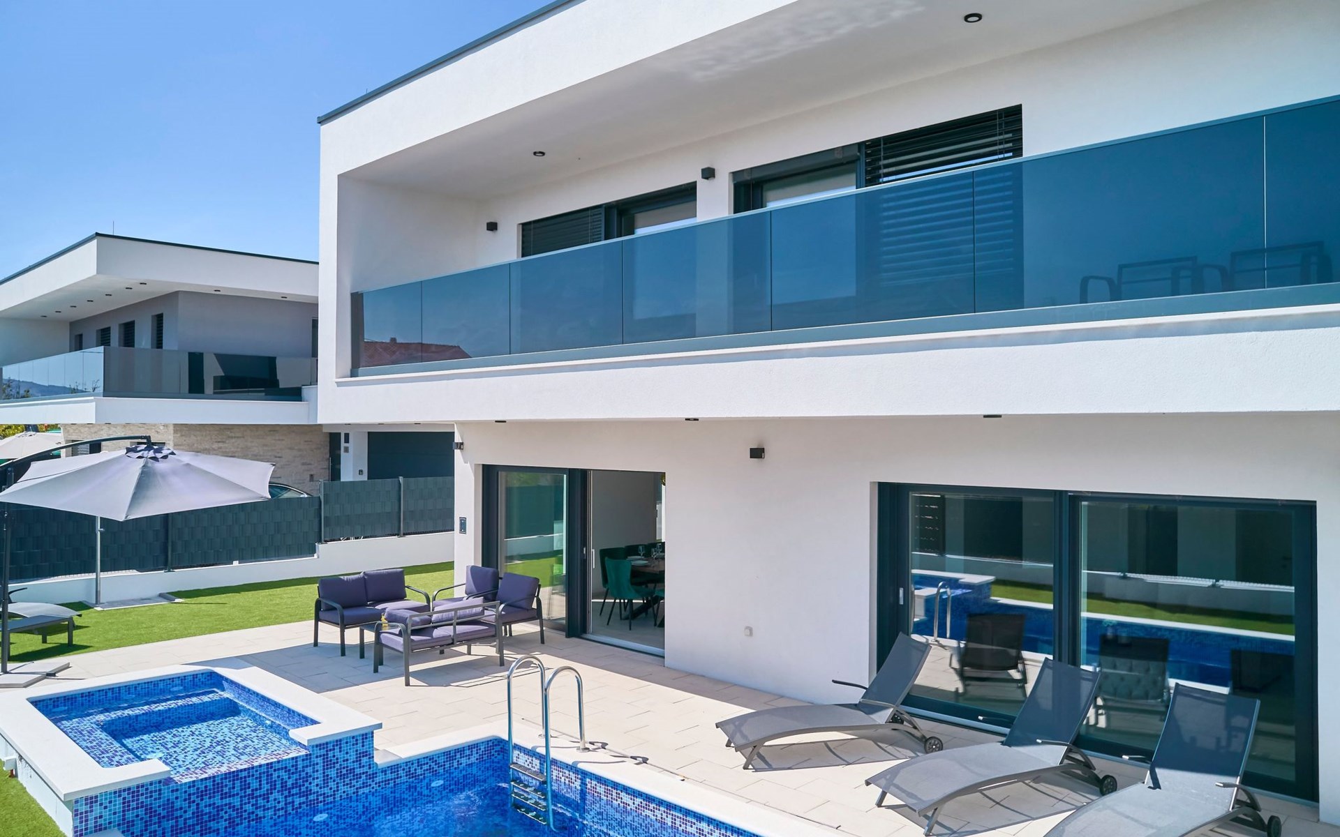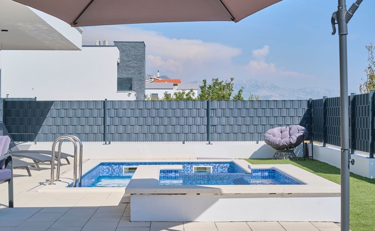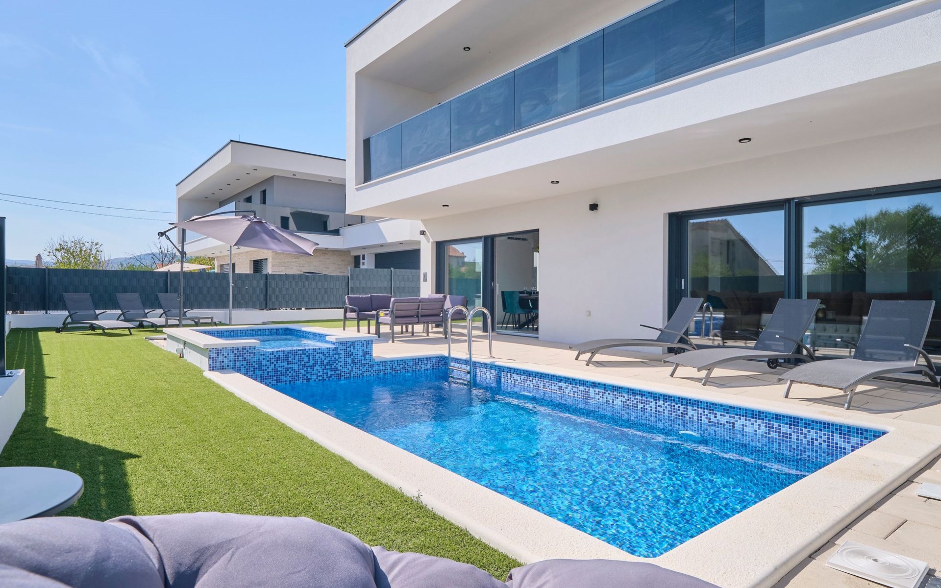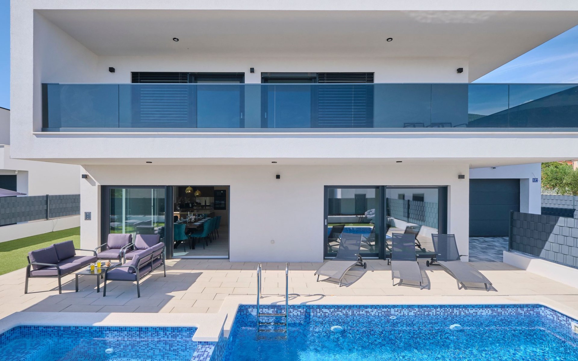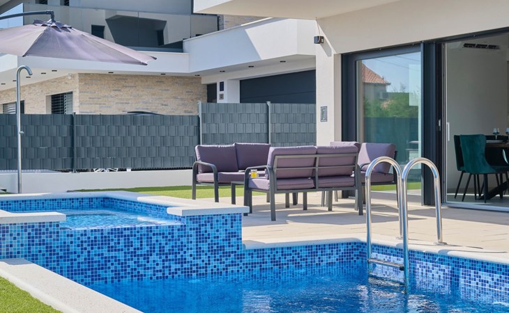 Das vollständig umzäunte Grundstück bietet Privatsphäre und Sicherheit und einen großen Außenbereich, der zum Entspannen einlädt. Genießen Sie Sitzgelegenheiten im Garten oder am privaten Pool. Die Villa Adria Dream ist der ideale Rückzugsort für Familien oder Gruppen, die einen luxuriösen Urlaub an der Küste verbringen möchten.