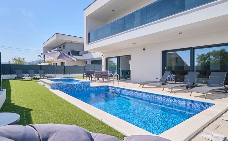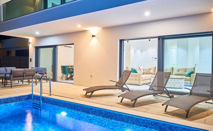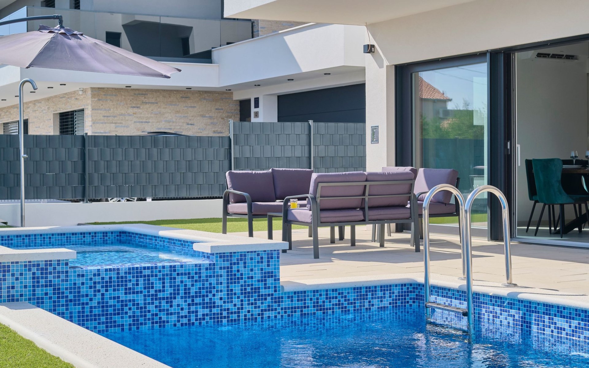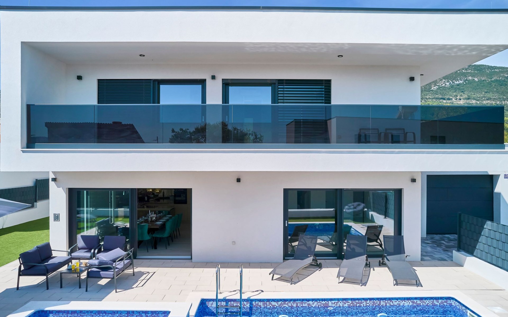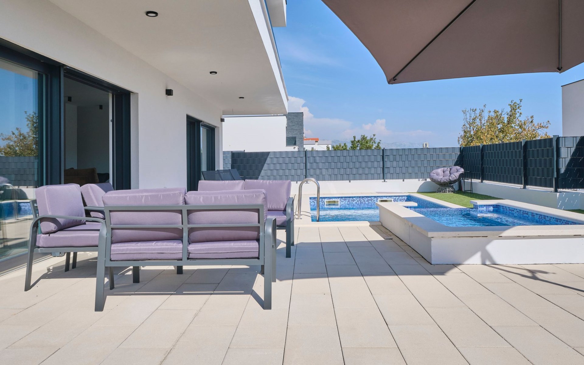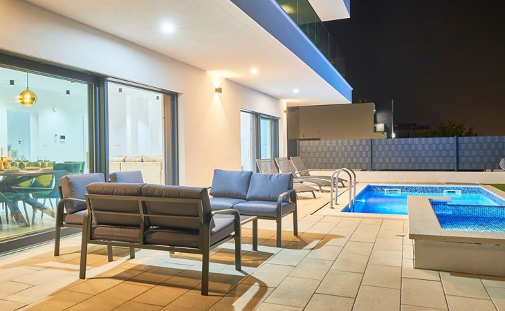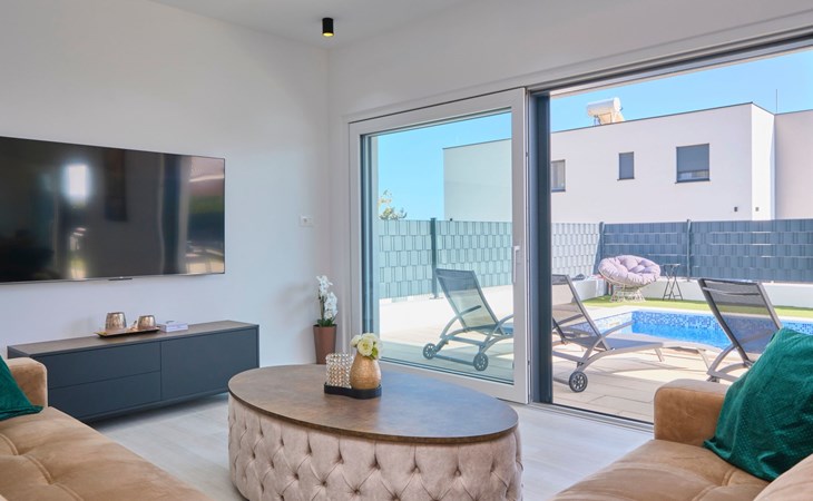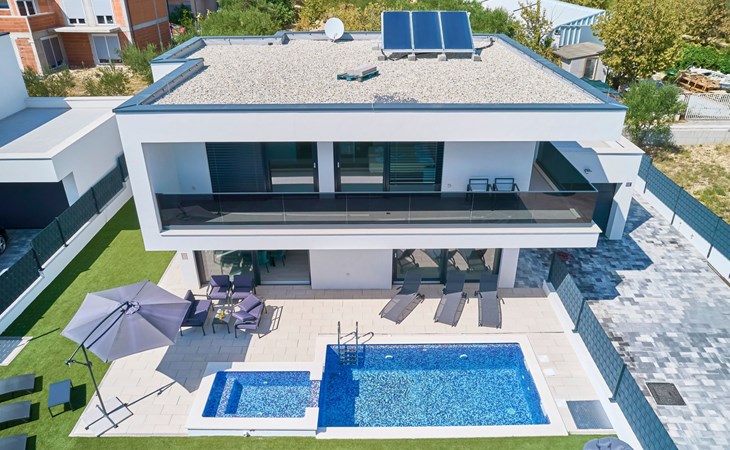 Das vollständig umzäunte Grundstück bietet Privatsphäre und Sicherheit und einen großen Außenbereich, der zum Entspannen einlädt. Genießen Sie Sitzgelegenheiten im Garten oder am privaten Pool. Die Villa Adria Dream ist der ideale Rückzugsort für Familien oder Gruppen, die einen luxuriösen Urlaub an der Küste verbringen möchten.