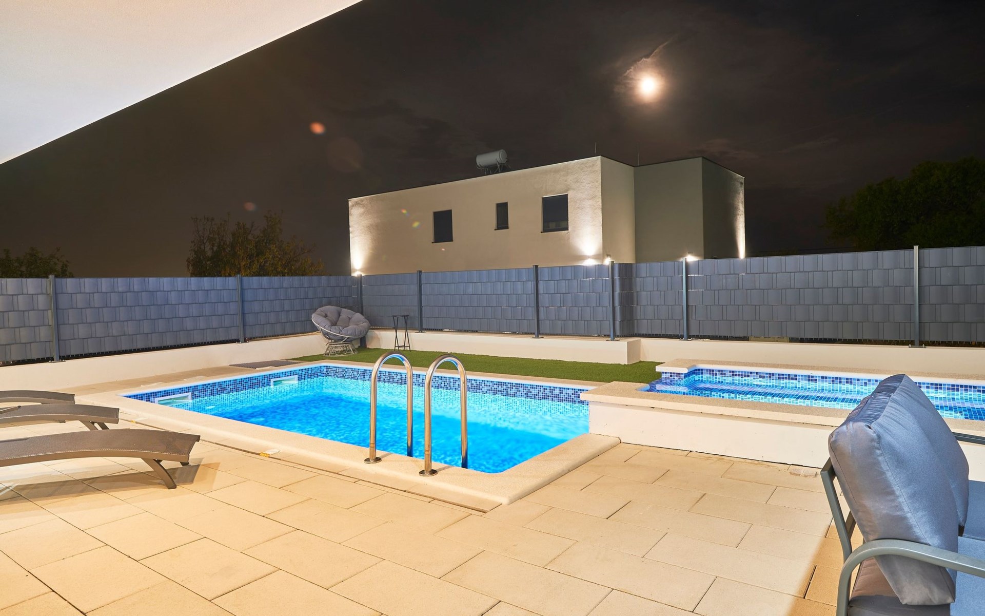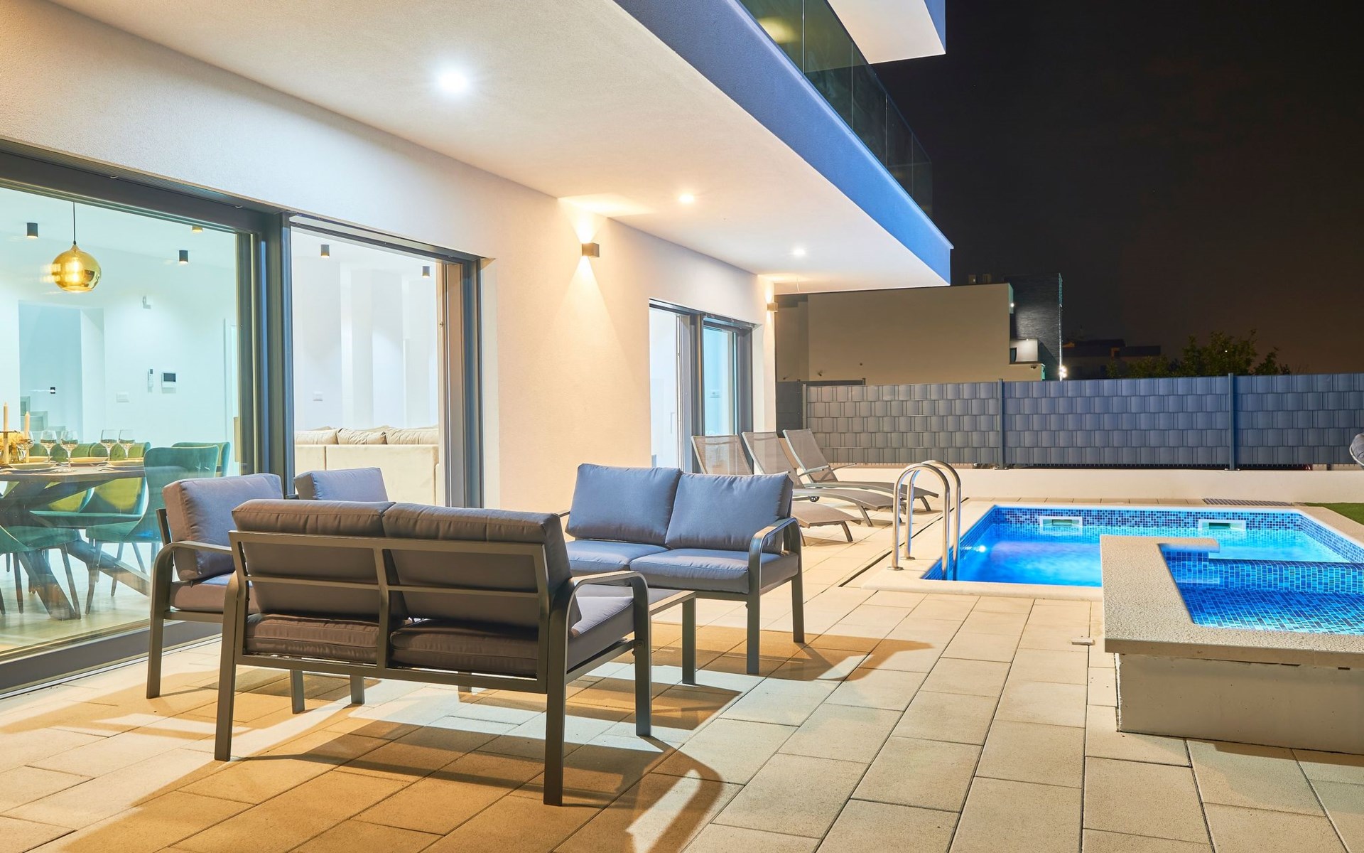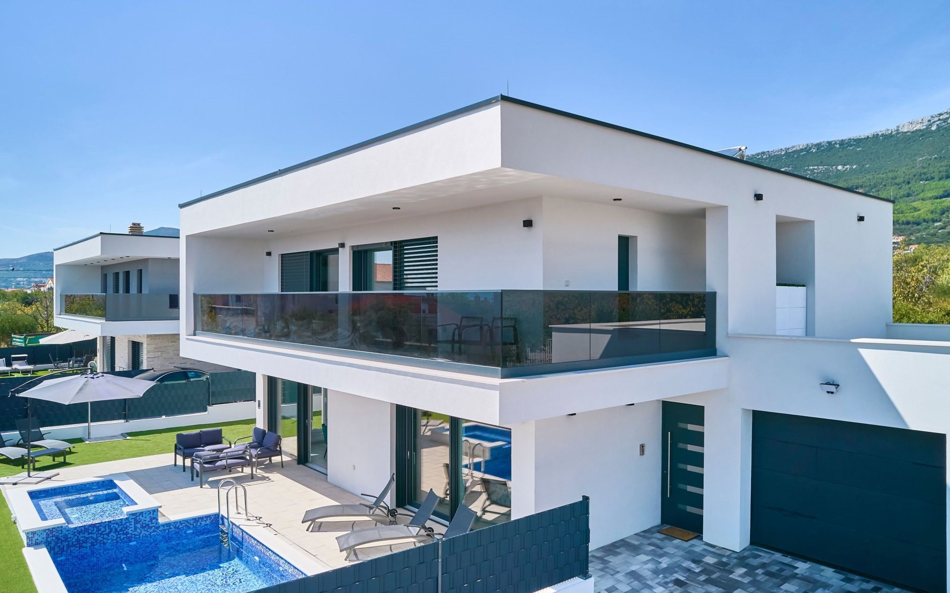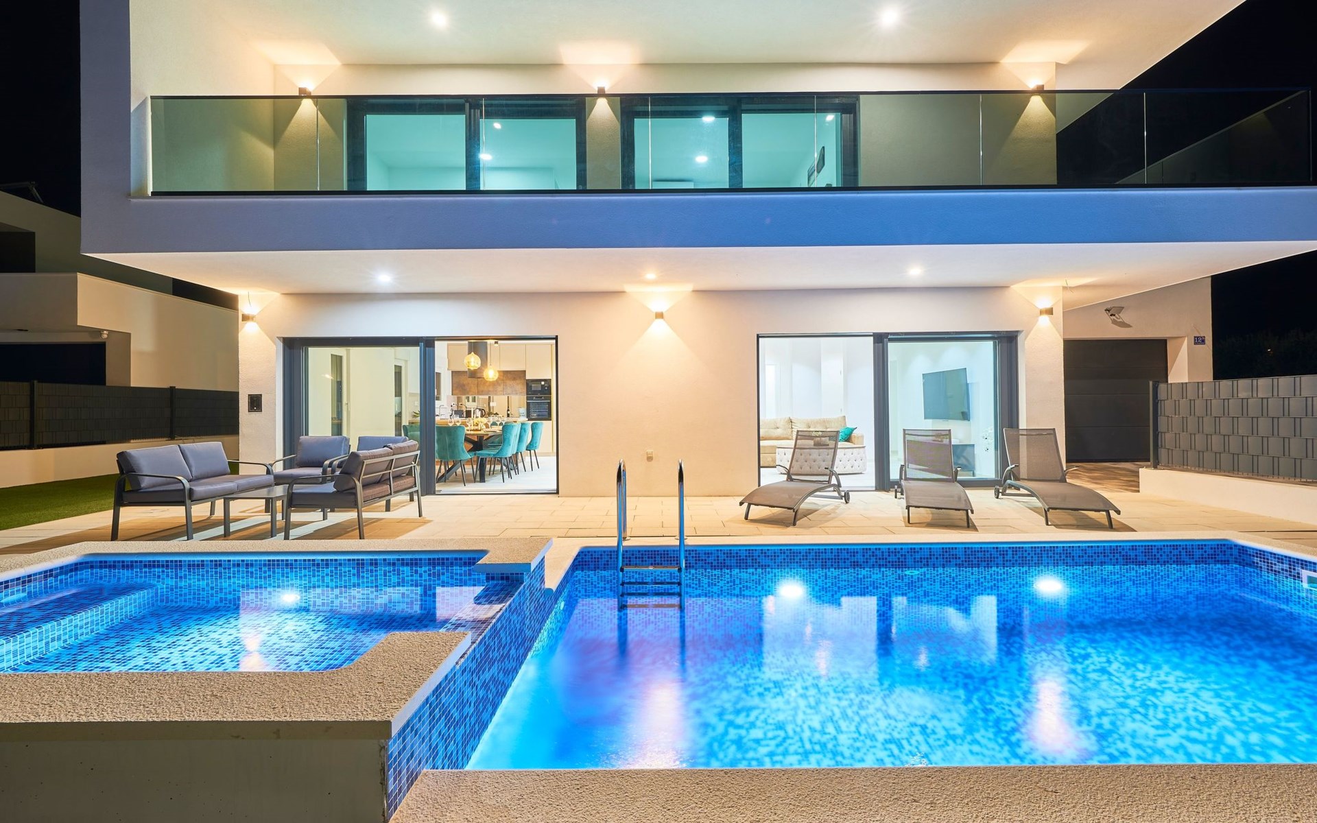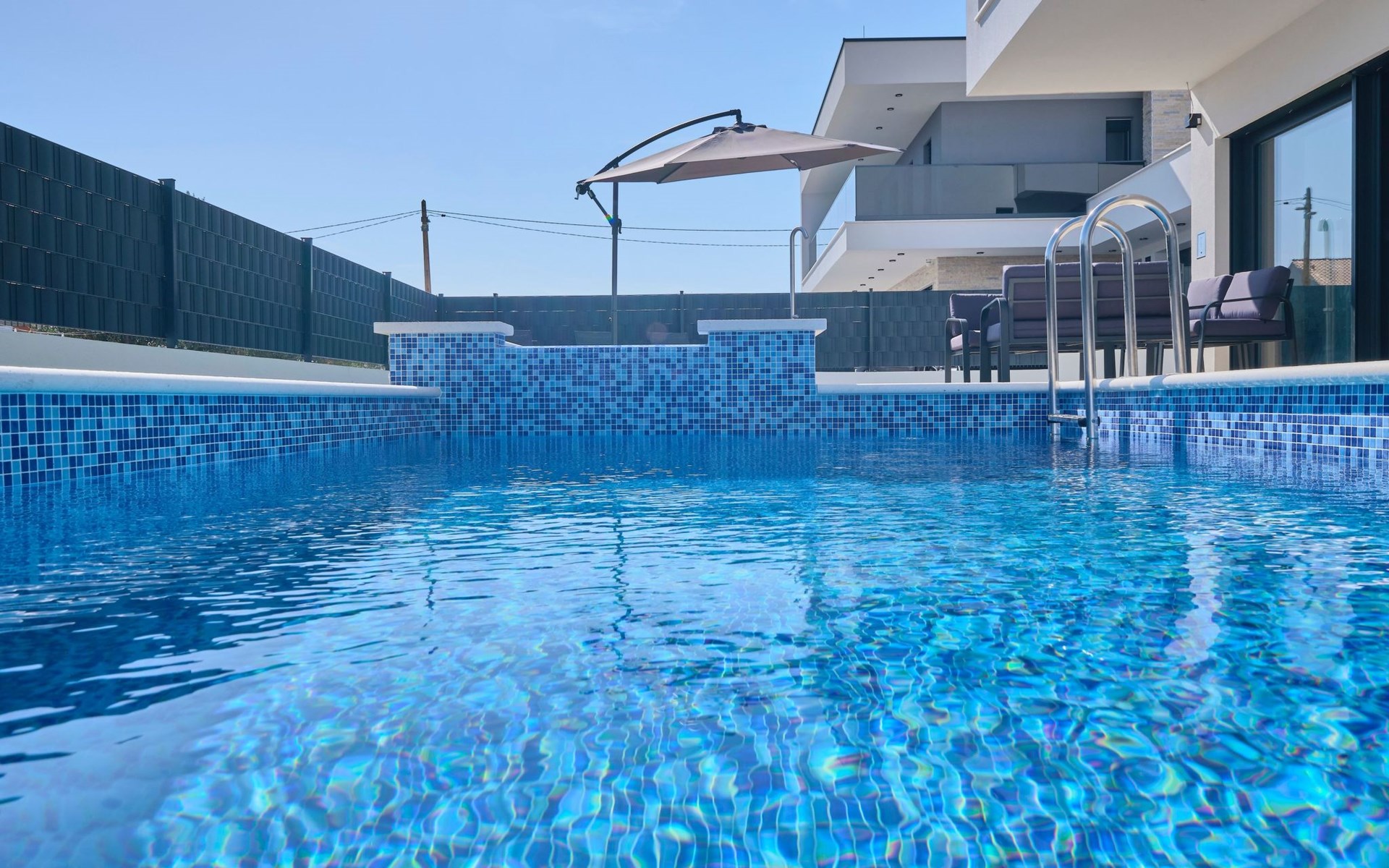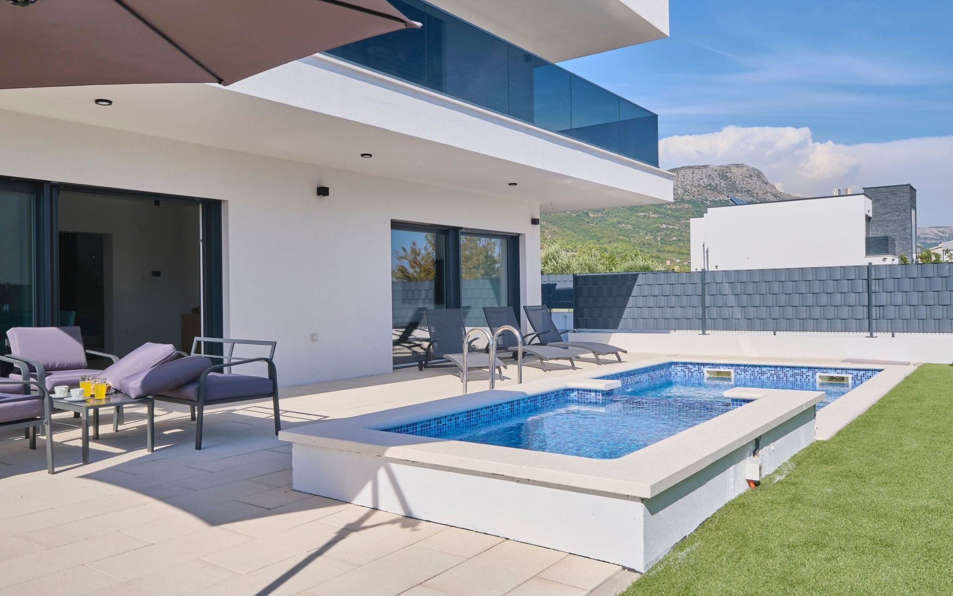 Das vollständig umzäunte Grundstück bietet Privatsphäre und Sicherheit und einen großen Außenbereich, der zum Entspannen einlädt. Genießen Sie Sitzgelegenheiten im Garten oder am privaten Pool. Die Villa Adria Dream ist der ideale Rückzugsort für Familien oder Gruppen, die einen luxuriösen Urlaub an der Küste verbringen möchten.