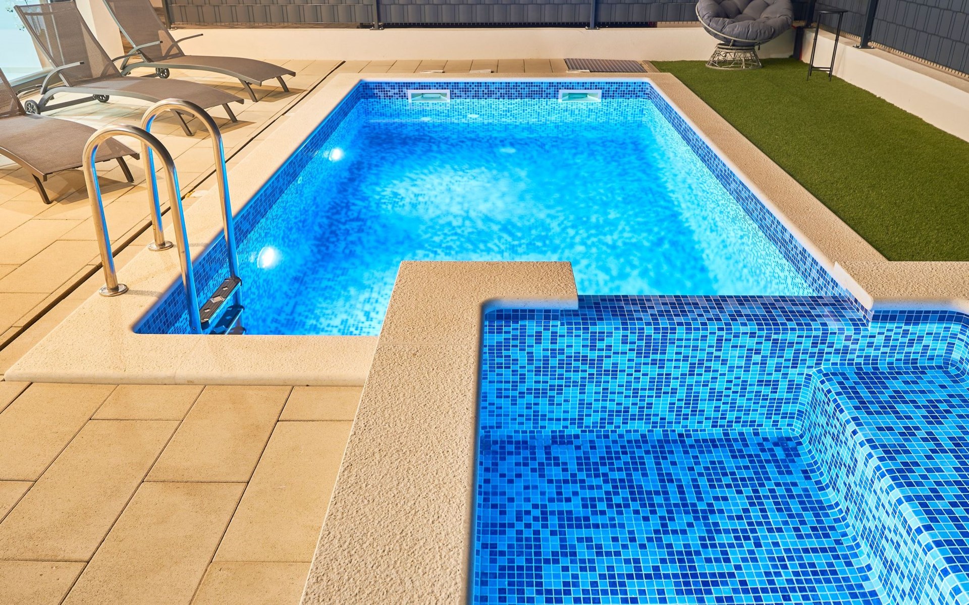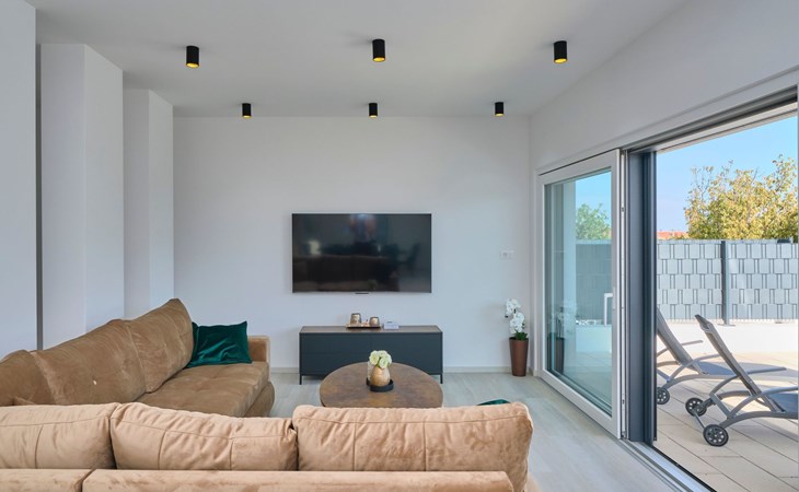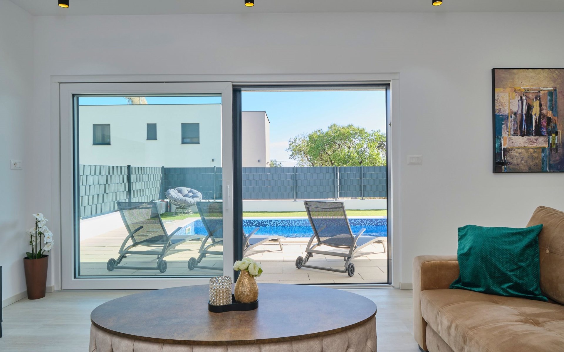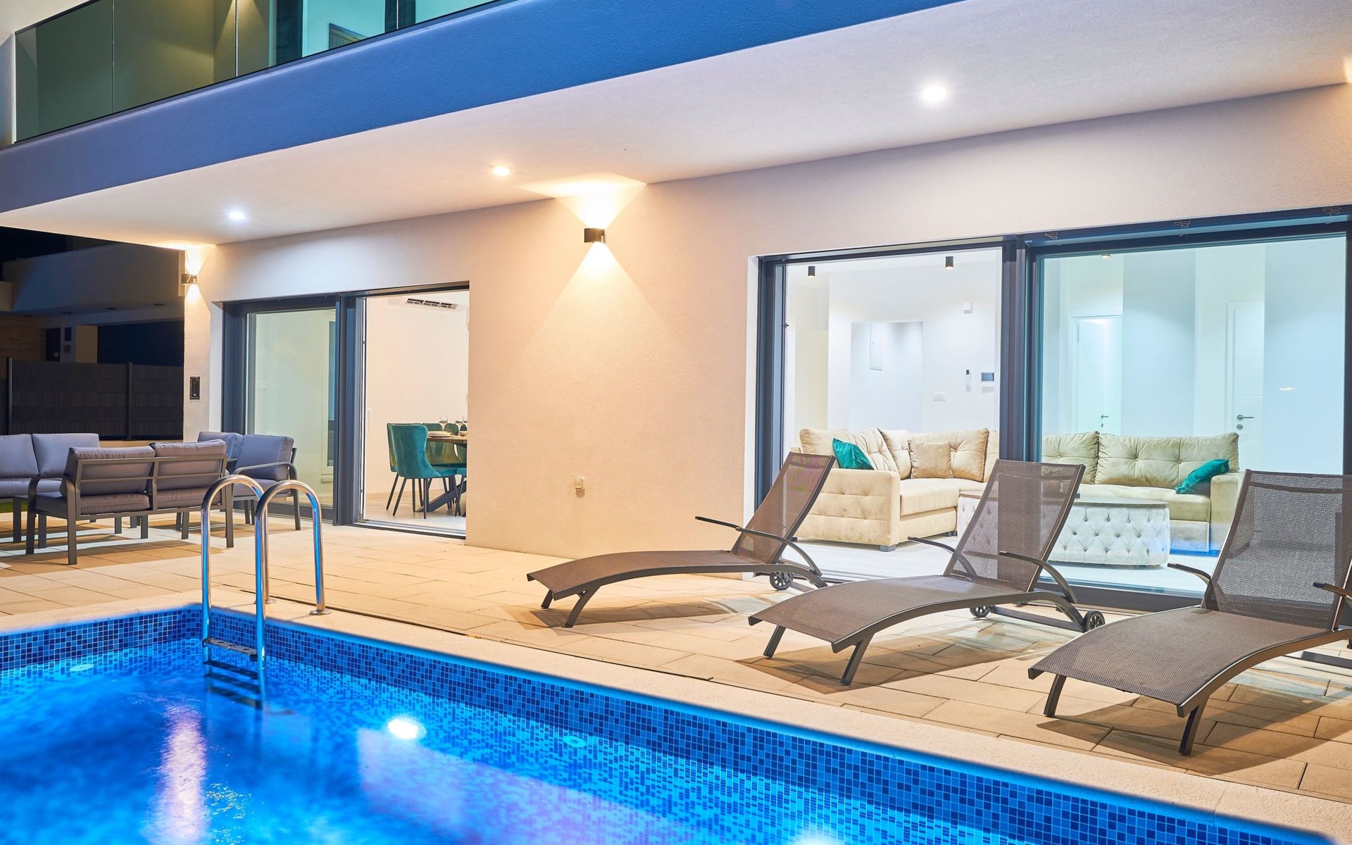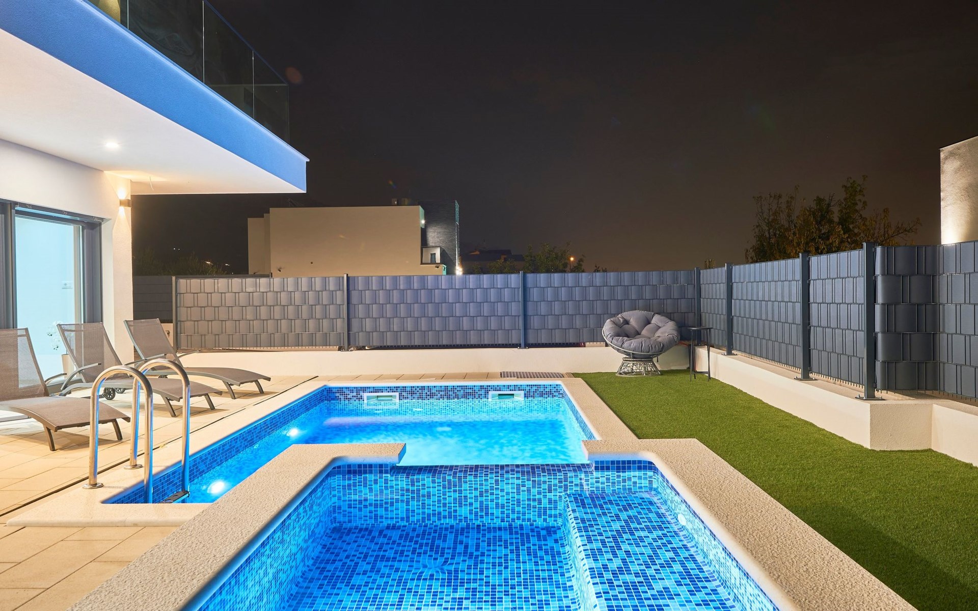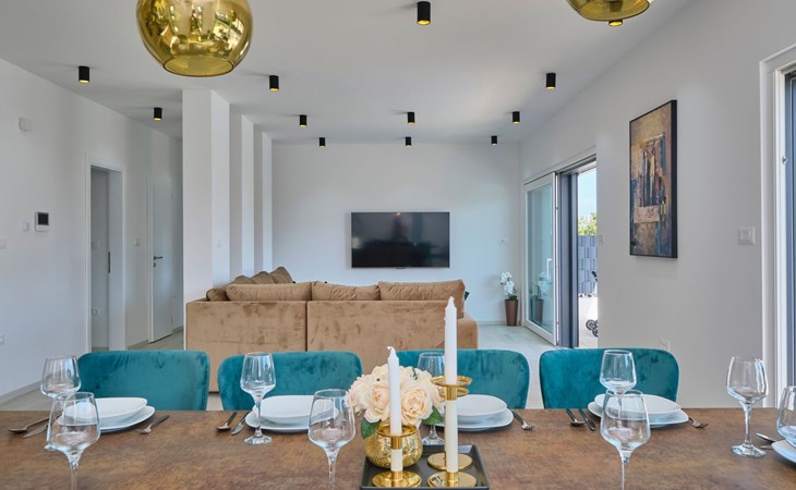Das vollständig umzäunte Grundstück bietet Privatsphäre und Sicherheit und einen großen Außenbereich, der zum Entspannen einlädt. Genießen Sie Sitzgelegenheiten im Garten oder am privaten Pool. Die Villa Adria Dream ist der ideale Rückzugsort für Familien oder Gruppen, die einen luxuriösen Urlaub an der Küste verbringen möchten.