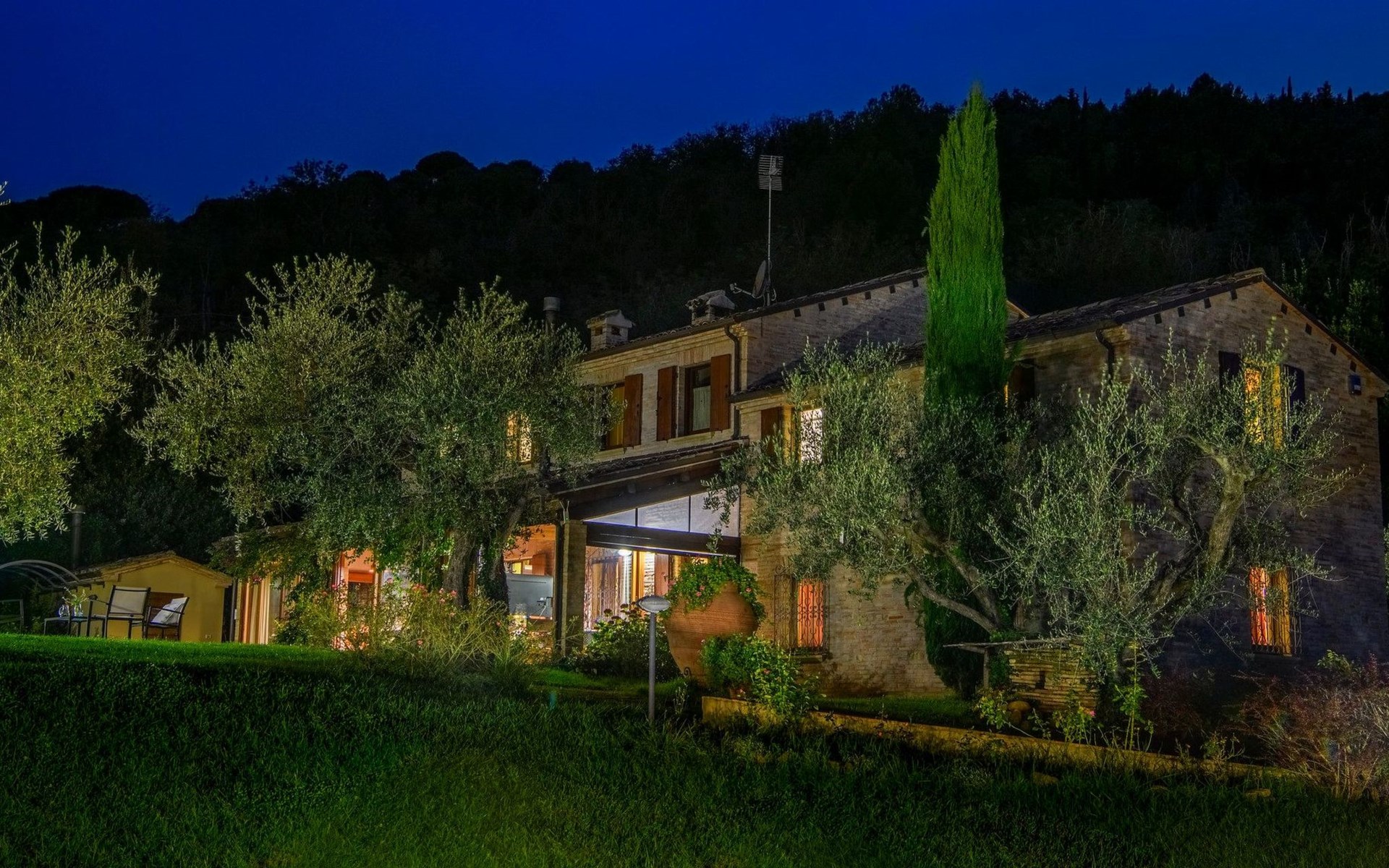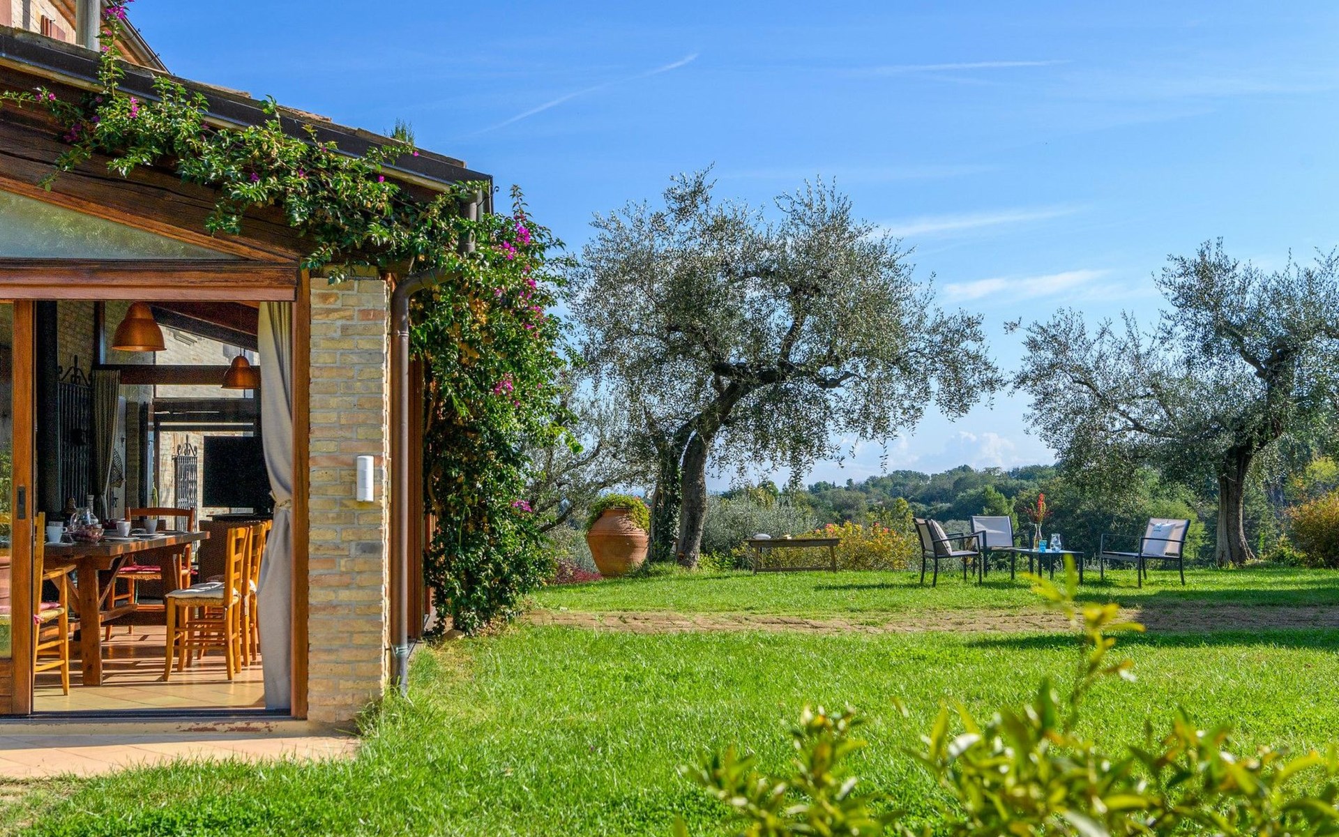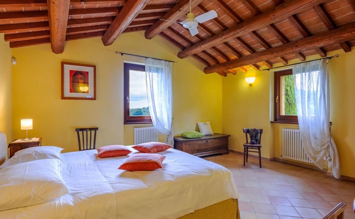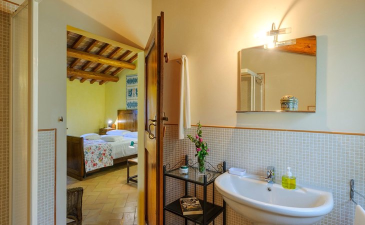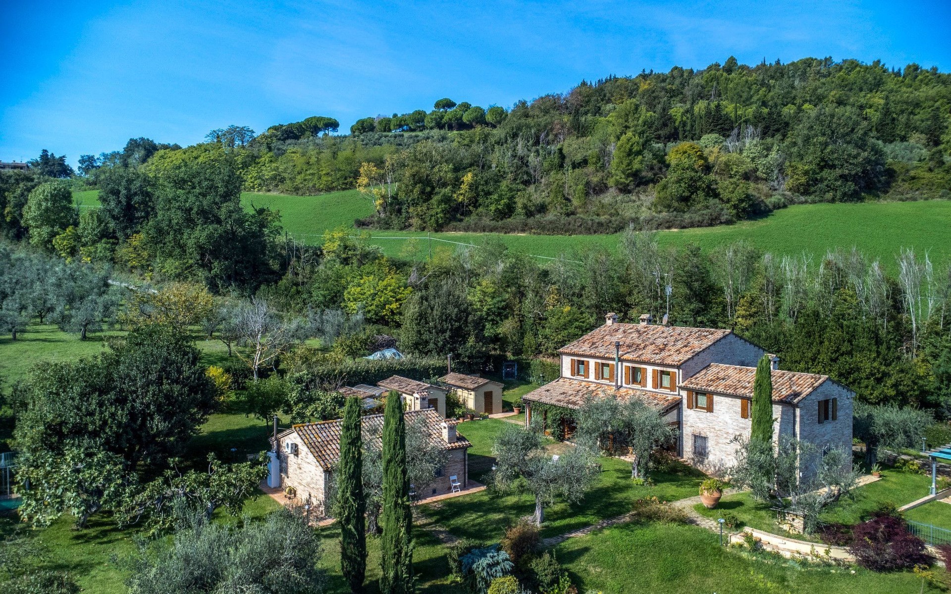 Das Schwimmbad, das von verschiedenen Stellen des Gartens aus zugänglich ist, bietet einen Panoramablick auf die umliegenden Hügel.